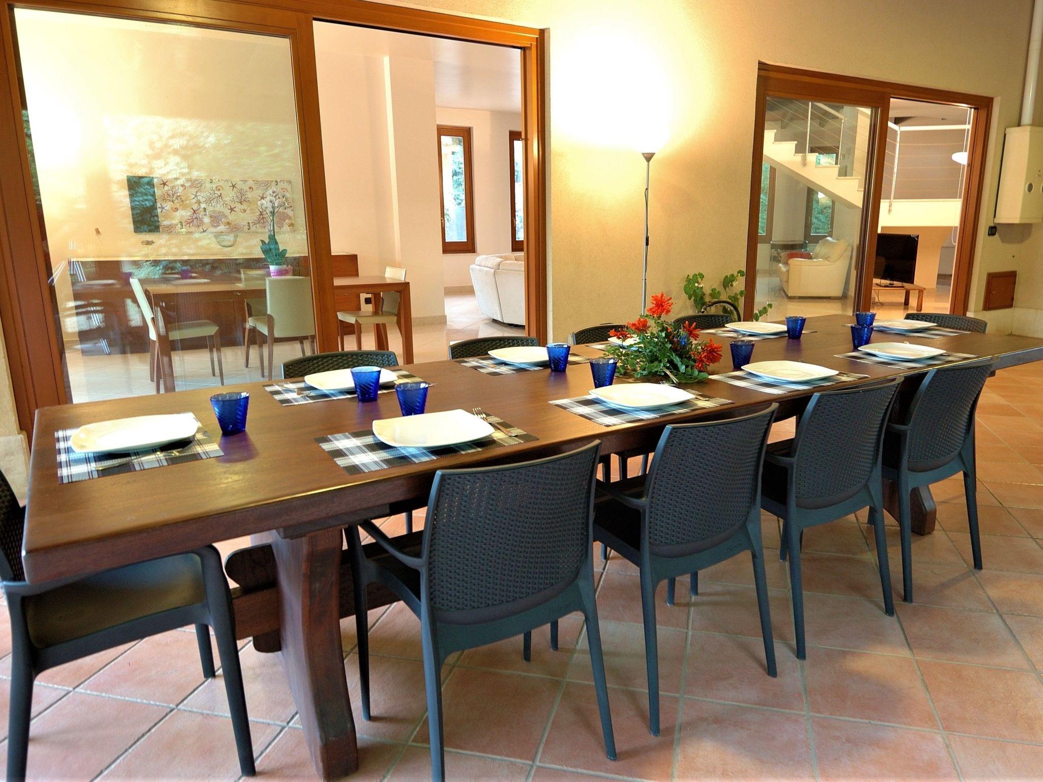 The villa, recently built, has a simple, modern style. It extends over two levels with direct access from the large and bright living-room with different spaces: dining area, relaxation area and corner office. It is characterized by large windows overlooking the garden, the pool and the open veranda, where you can lunch or stay enjoying the surrounding view.