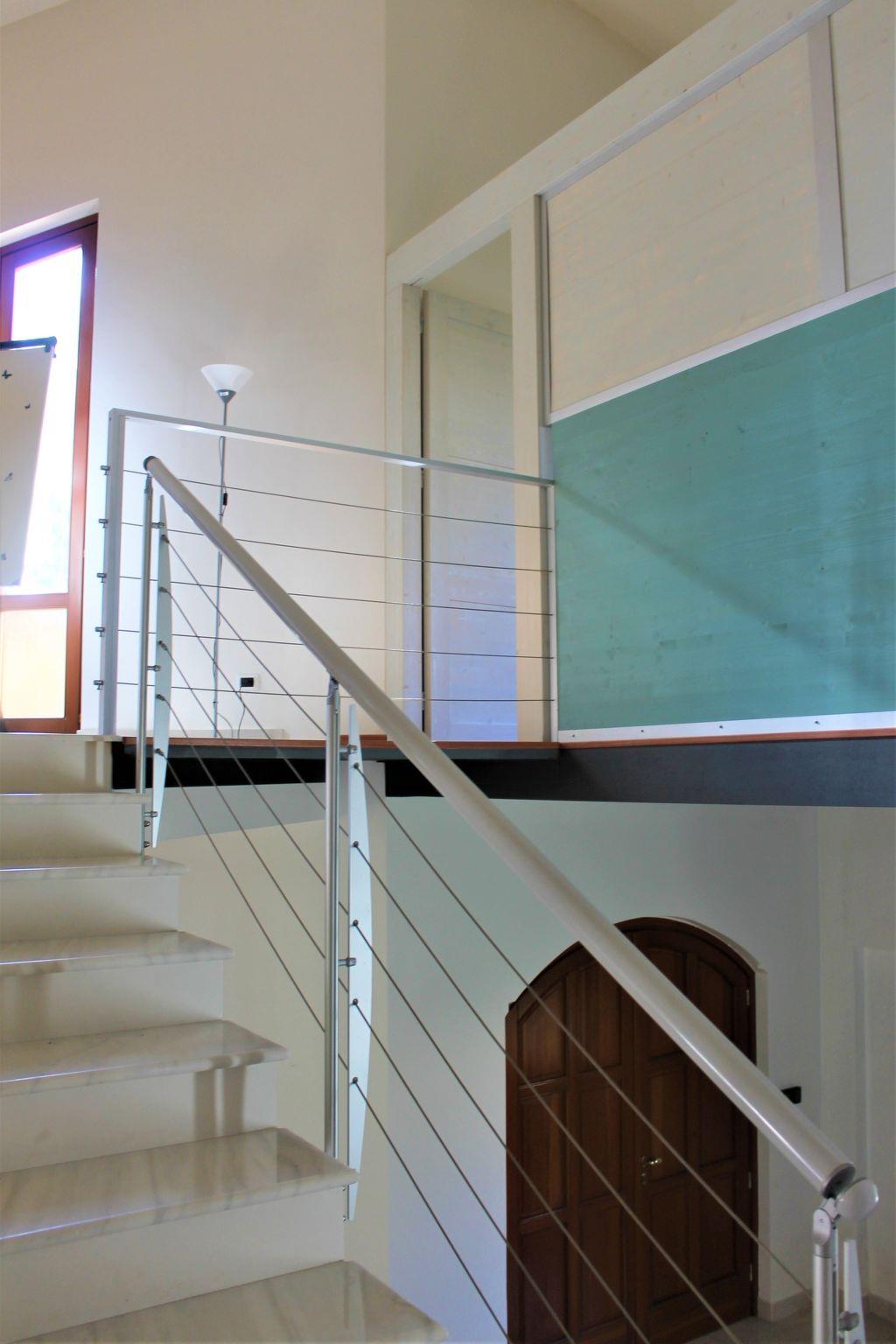 The kitchen, well-finished and functional, overlooks the dining area and covered veranda. On the ground floor there is the bathroom and the laundry.