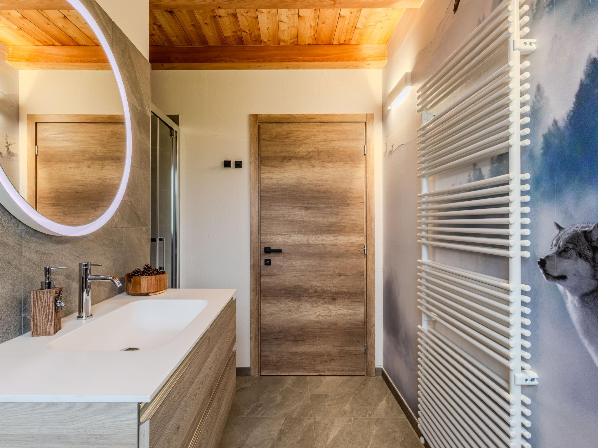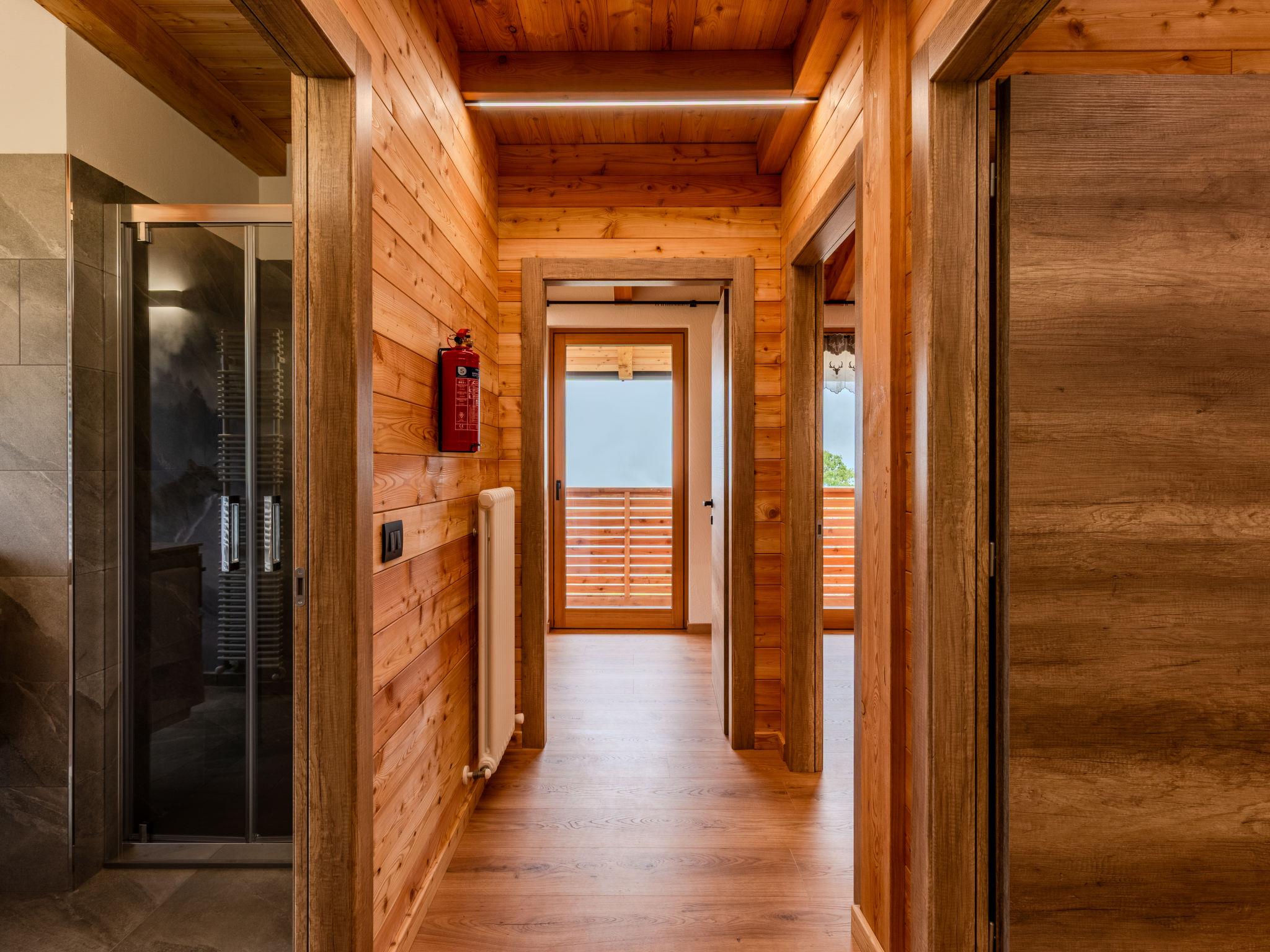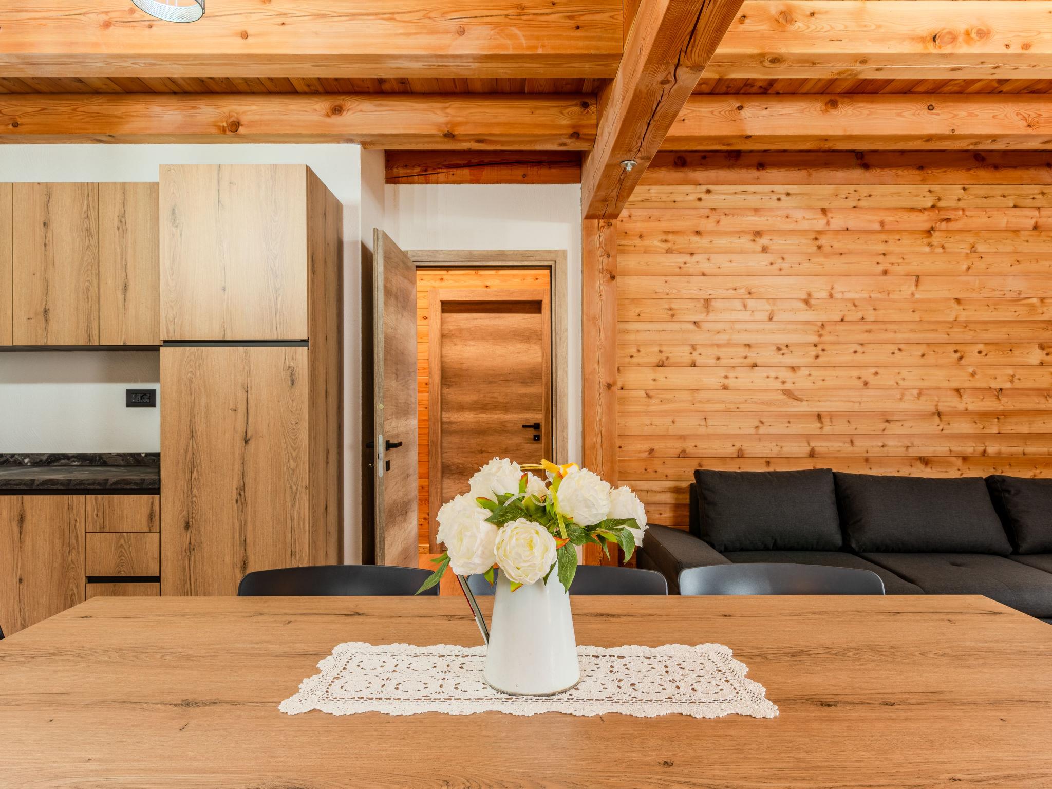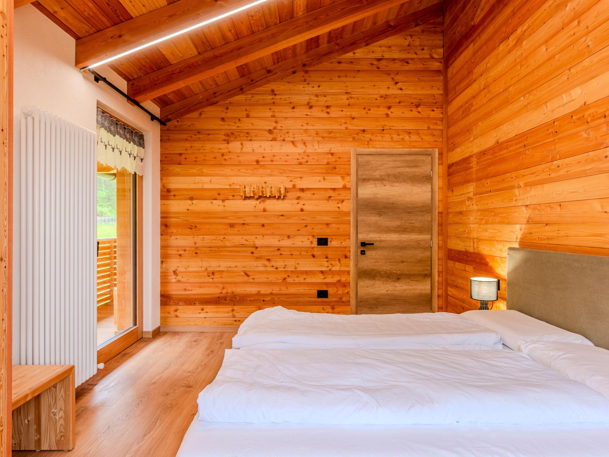 Livo: Villa "Casa del Larice", 2 storeys, detached, built in 2025, surrounded by meadows and fields. 2 apartments in the property. In the district of Preghena, in a sunny position on top of a hill, 20 m from the edge of the forest, 13 km from the lake, 20 km from the skiing area, in the countryside, south facing position. For shared use: natural state property (fenced), lawn for sunbathing 4'000 m2 (fenced). Patio (60 m2), barbecue house. In the house: WiFi, storage room for bicycles, storage room for skis. Linen change weekly (suppl. charge extra). Towel change weekly (suppl. charge extra). Room cleaning weekly on request (extra). Parking at the house on the premises. 2 minute walk to the centre, bus stop 100 m, lake di Santa Giustina 13 km. Walking paths from the house 50 m, gondola lift 15 km, skisport facilities 15 km, ski rental 15 km, children's ski school 15 km. Nearby attractions: Castel Thun 25 km, Laghetti dei Masi di Ruffré 26 km, Val di Sole 10 km, Passo del Tonale 43 km. Well-known ski regions can easily be reached: Folgarida Marilleva Campiglio 28 km, Predaia scii Coredo 25 km. Well-known lakes can easily be reached: Lago di Santa Giustina 13 km, Lago di Tovel 23 km. Hiking paths: Canyon Rio Sass 19 km, Cascata di tret 25 km, Passo della Mendola 28 km. Please note: motorway 35 km from the property. Railway line closeby 23 km from the property.