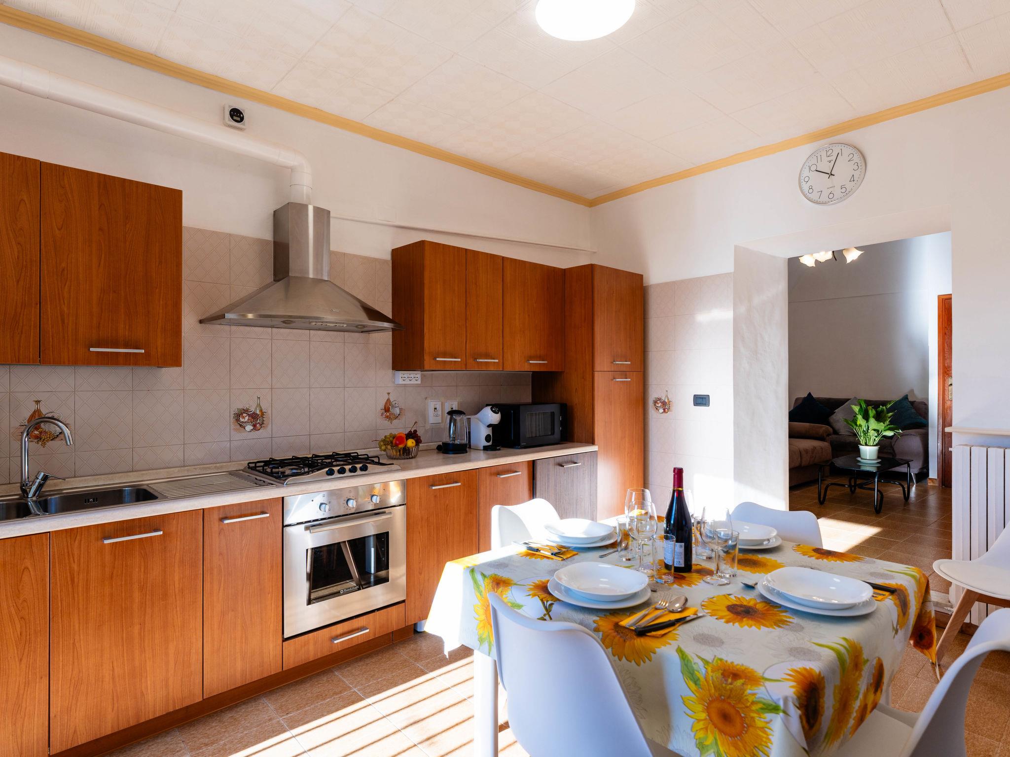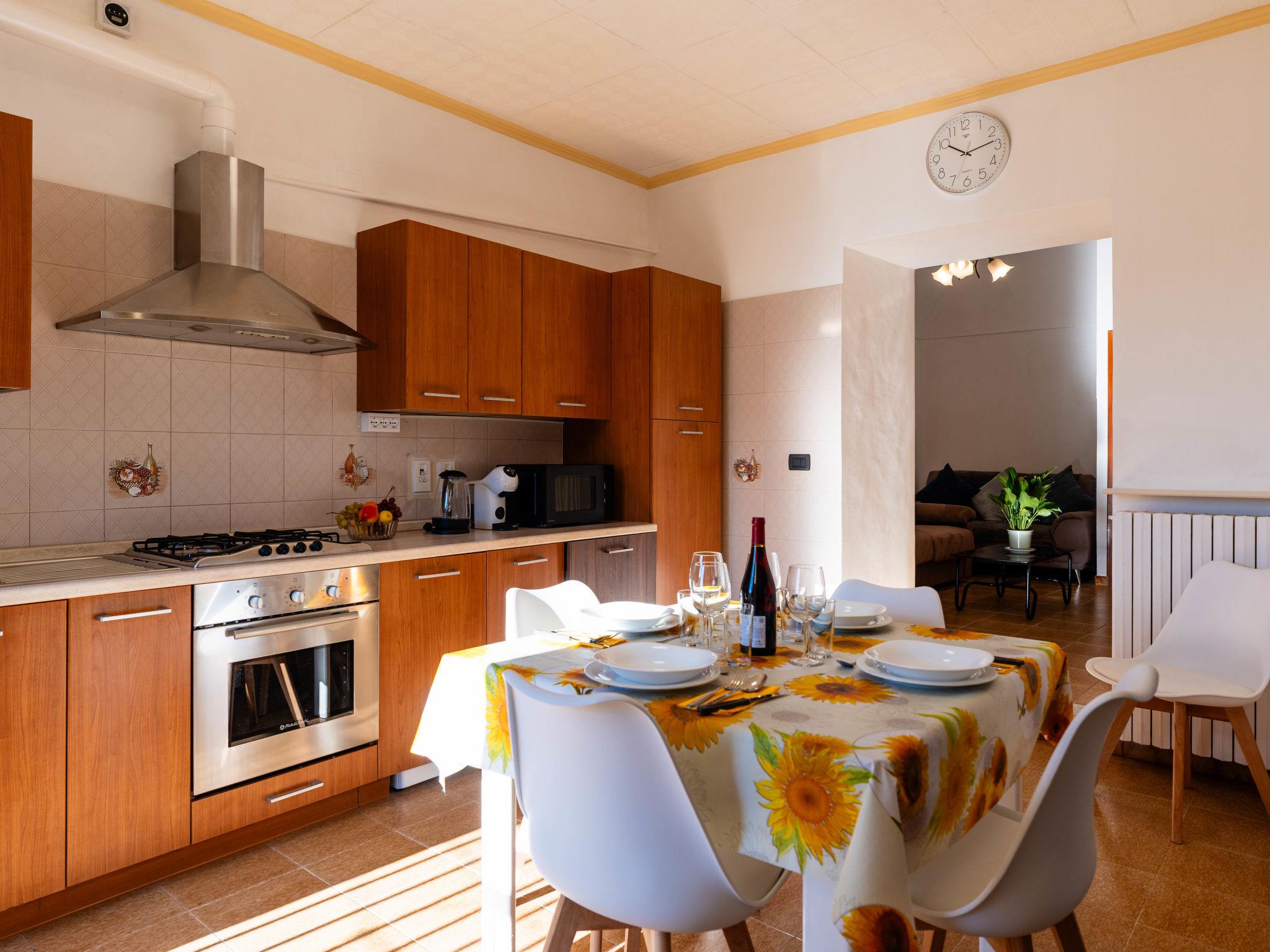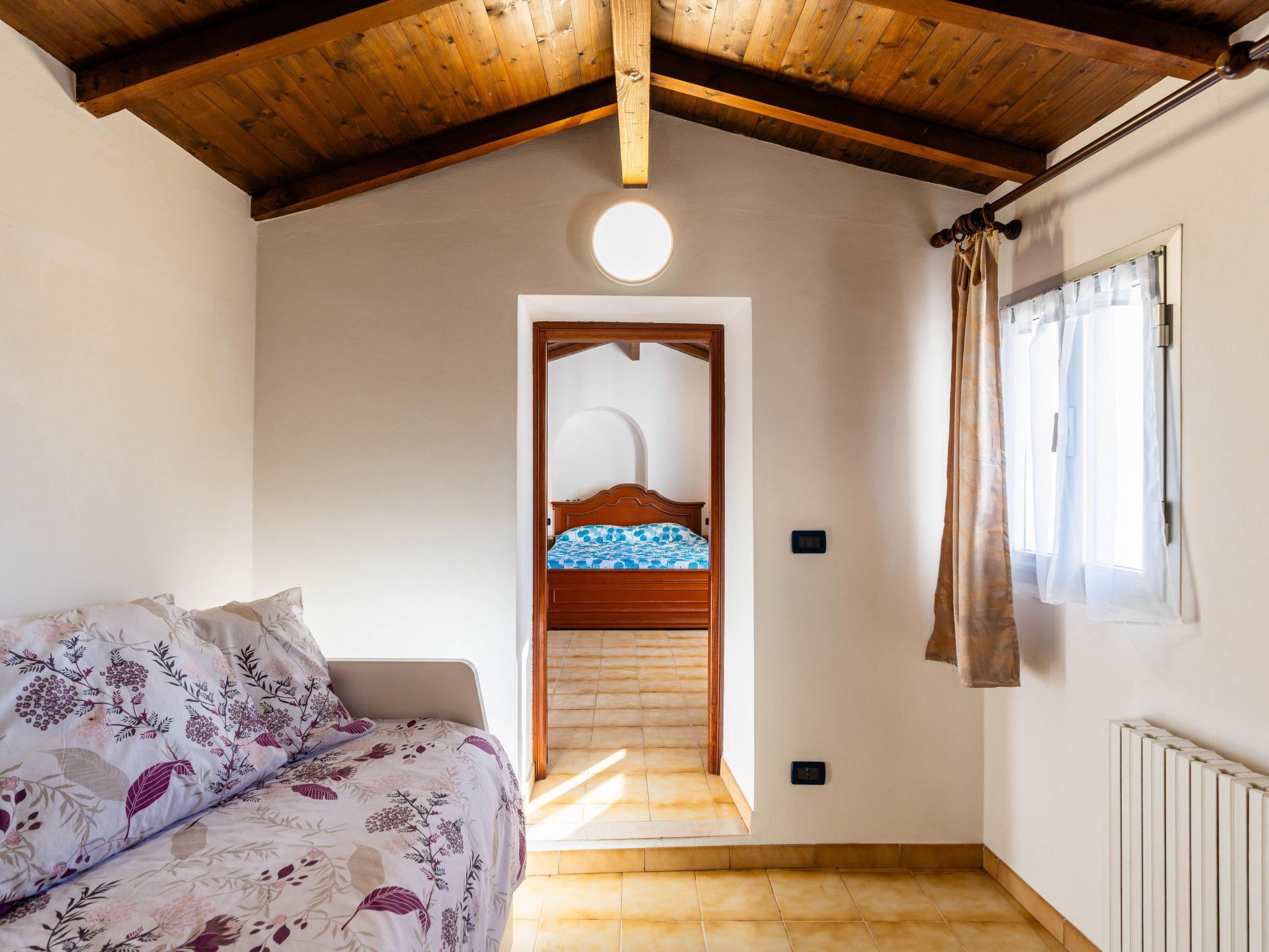 "Il Girasole", 3-room terraced house 70 m2. Simple and practical furnishings: living/dining room with 1 sofabed (160 cm, length 200 cm). Kitchenette (oven, dishwasher, 4 gas rings, toaster, kettle, microwave, electric coffee machine). Upper floor: (spiral staircase) walk-through room with 1 pull-out bed (2 x 80 cm, length 200 cm). 1 double bedroom (160 cm, length 200 cm). Bath/bidet/WC. Gas heating. Heating available only from 01.11. to 15.04. Beautiful view of the resort. Facilities: washing machine, baby cot for up to 2 year olds, hair dryer. Internet (WiFi, free). Parking at the house. Please note: non-smoking house. Smoke alarm, fire extinguisher. IT008063C24VX4C44A