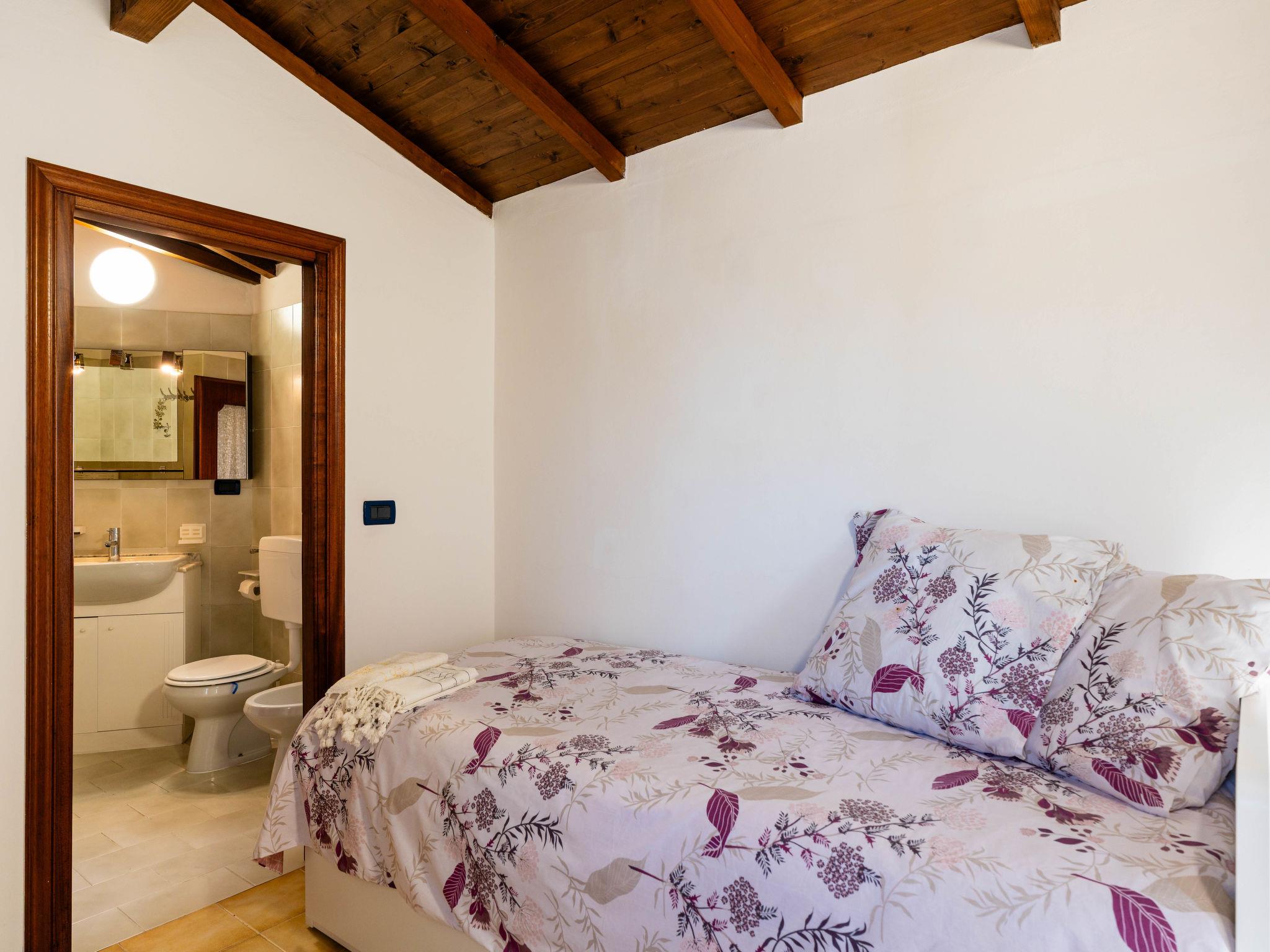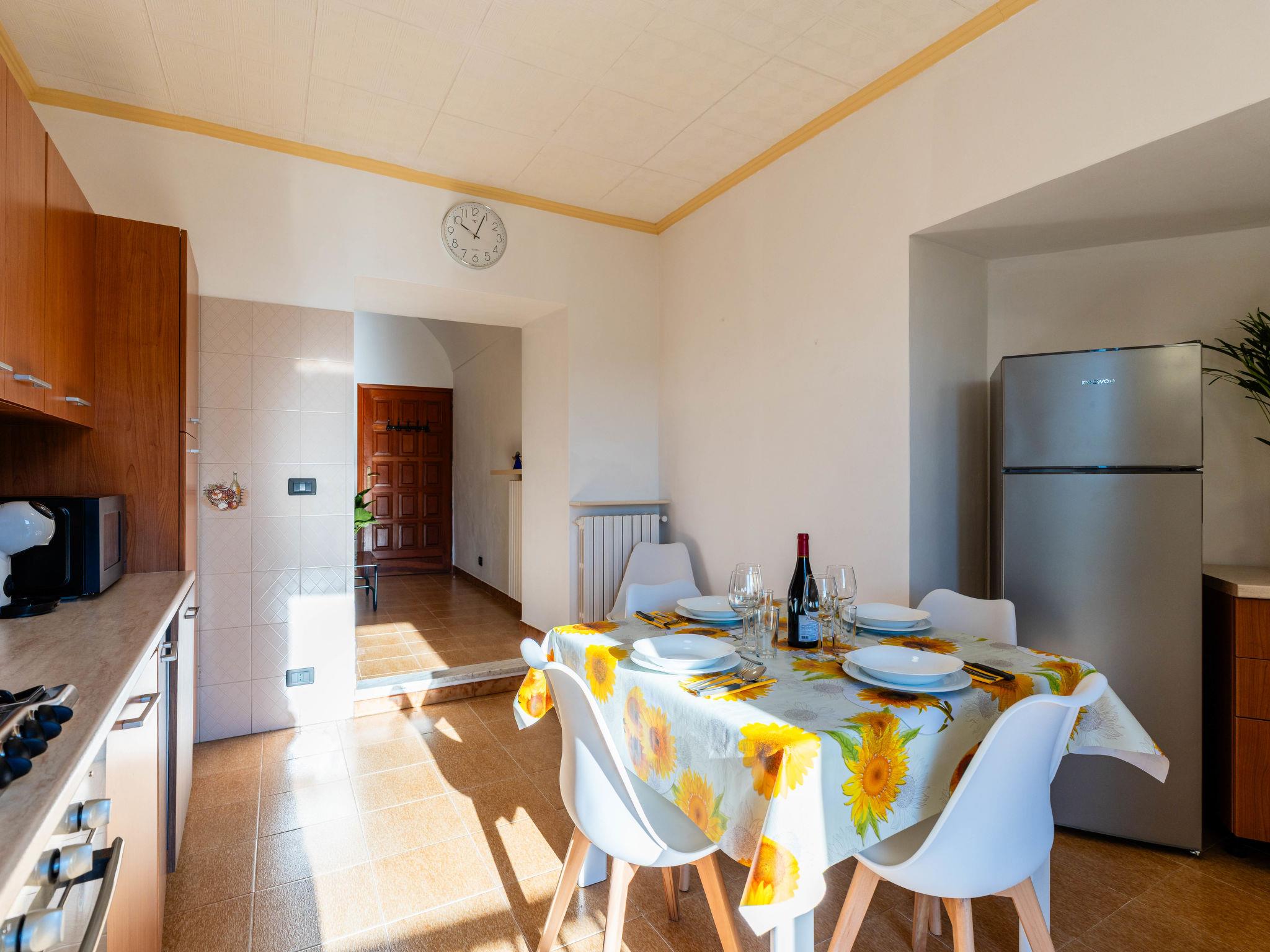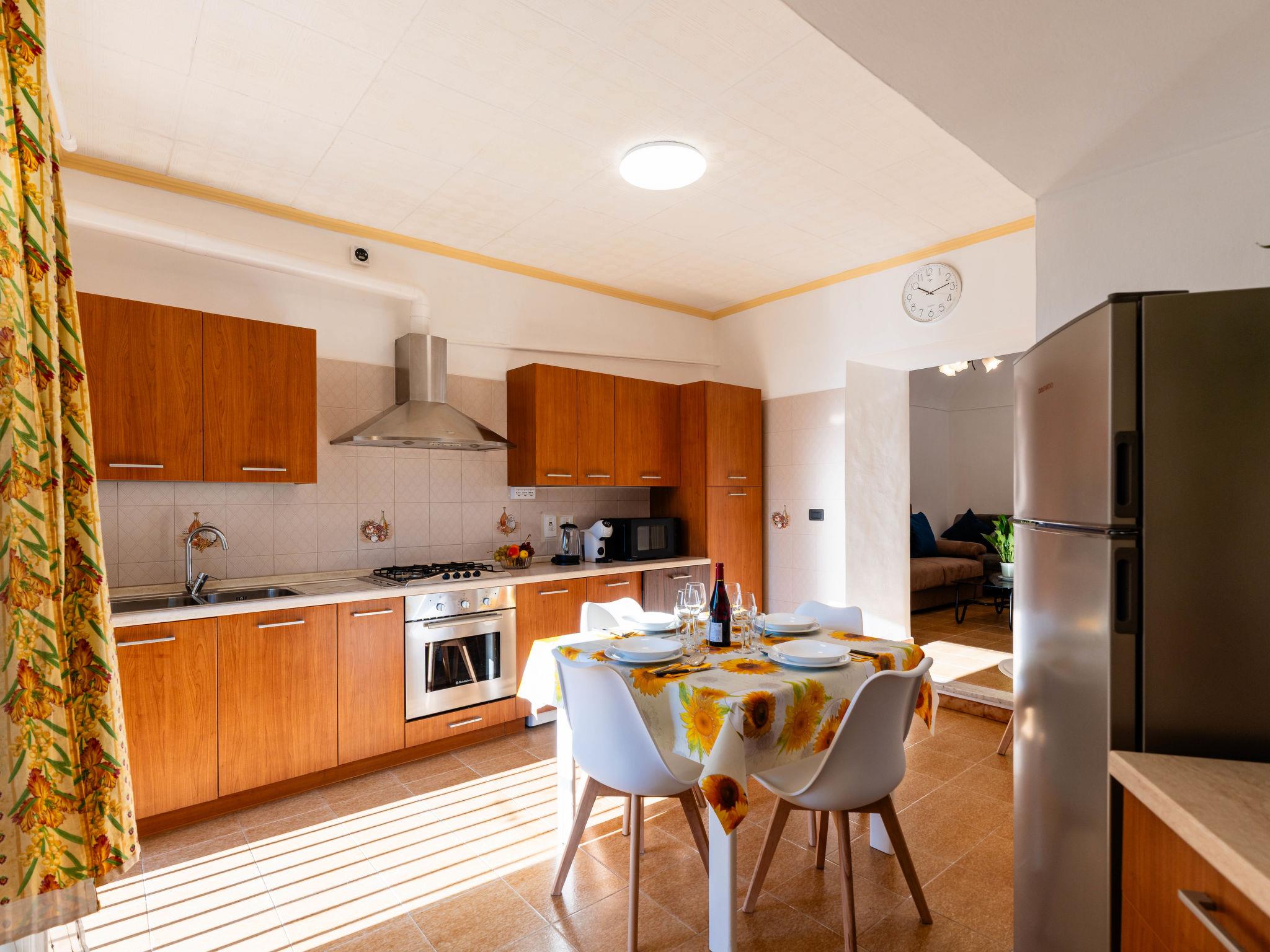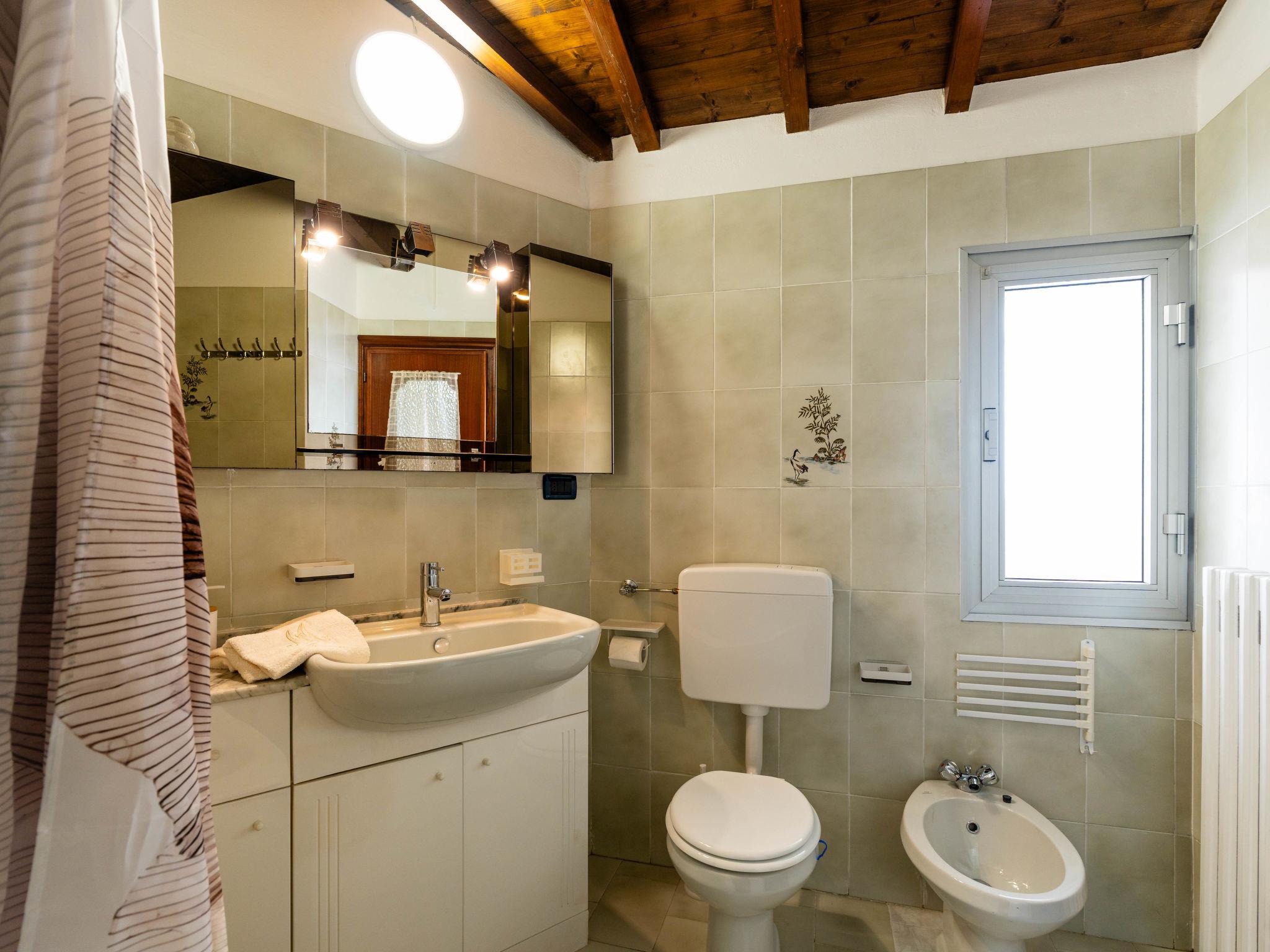 "Il Girasole", 3-room terraced house 70 m2. Simple and practical furnishings: living/dining room with 1 sofabed (160 cm, length 200 cm). Kitchenette (oven, dishwasher, 4 gas rings, toaster, kettle, microwave, electric coffee machine). Upper floor: (spiral staircase) walk-through room with 1 pull-out bed (2 x 80 cm, length 200 cm). 1 double bedroom (160 cm, length 200 cm). Bath/bidet/WC. Gas heating. Heating available only from 01.11. to 15.04. Beautiful view of the resort. Facilities: washing machine, baby cot for up to 2 year olds, hair dryer. Internet (WiFi, free). Parking at the house. Please note: non-smoking house. Smoke alarm, fire extinguisher. IT008063C24VX4C44A