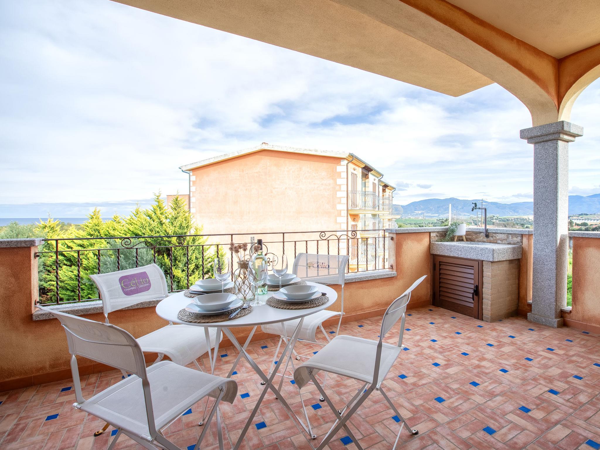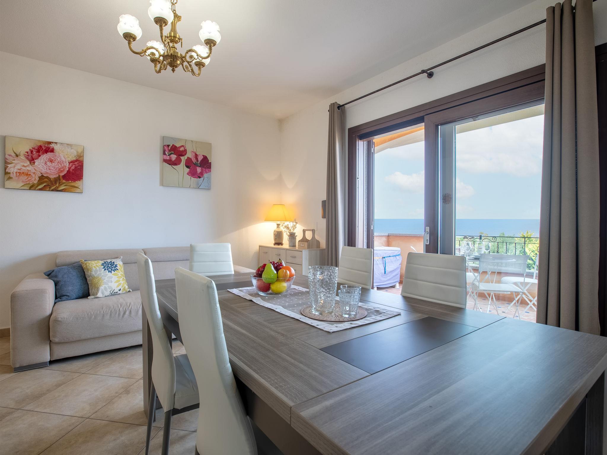 "Lo Smeraldo", 3-room apartment 67 m2 on 1st floor. Beautiful and cosy furnishings: living/dining room with 1 double sofabed and TV (flat screen). Exit to the terrace. 2 rooms, each room with 1 double bed. Open kitchen (4 hot plates, oven, dishwasher, toaster, kettle, electric coffee machine). Shower/bidet/WC. Air-conditioning, forced-air heating. Terrace 5 m2. Terrace furniture, sitting area. Beautiful view of the sea. Facilities: washing machine, dryer, iron, mosquito net, hair dryer. Parking (1 car). Please note: fire extinguisher, no lift. IT090079C2000T1643