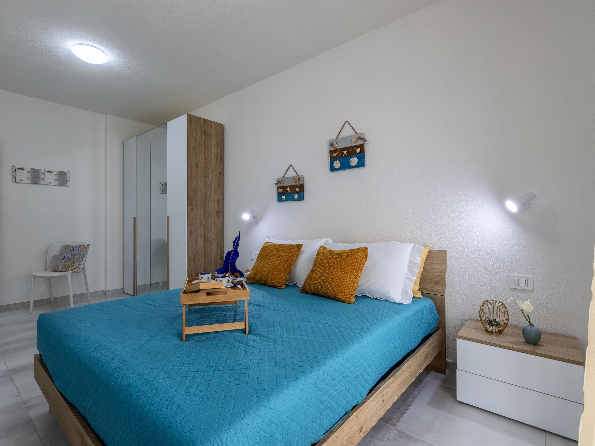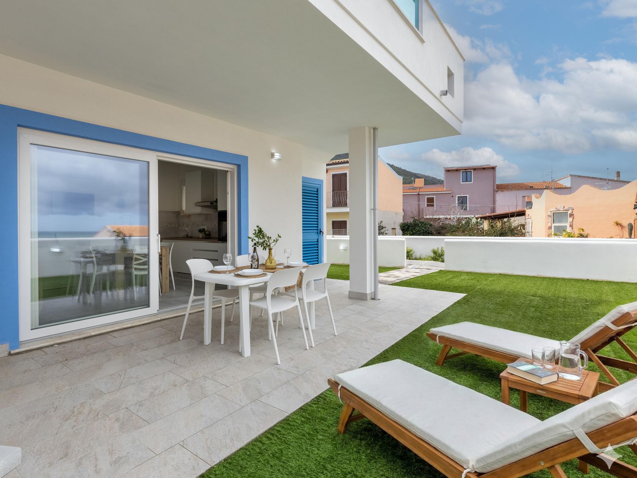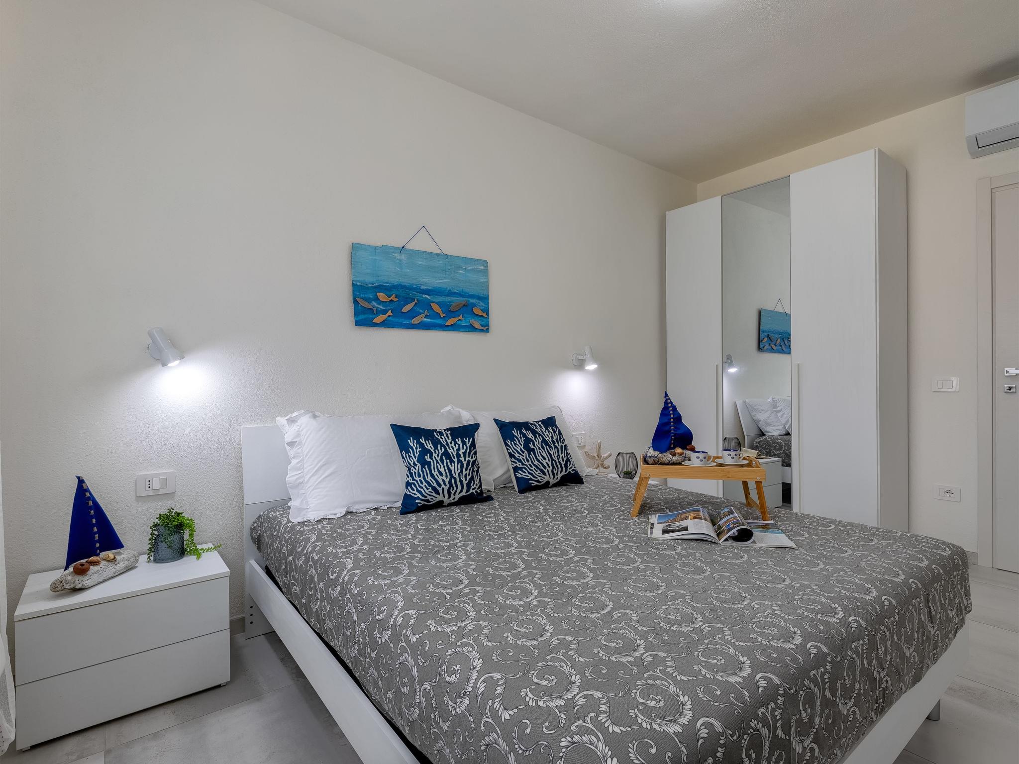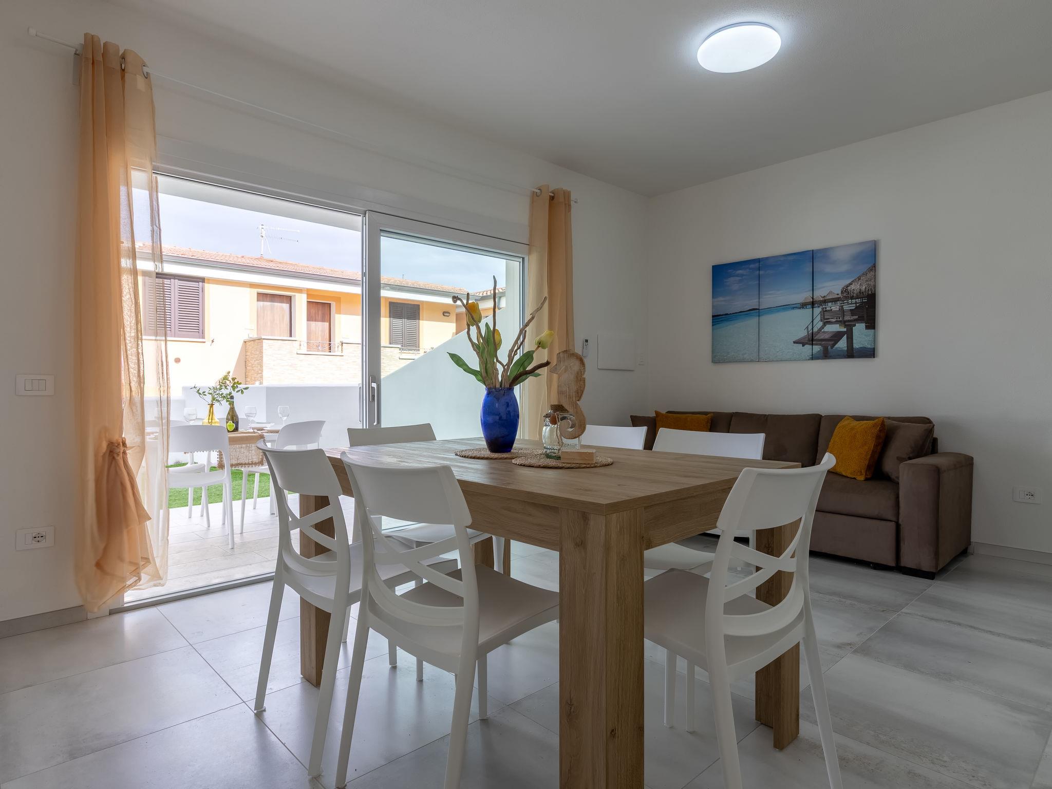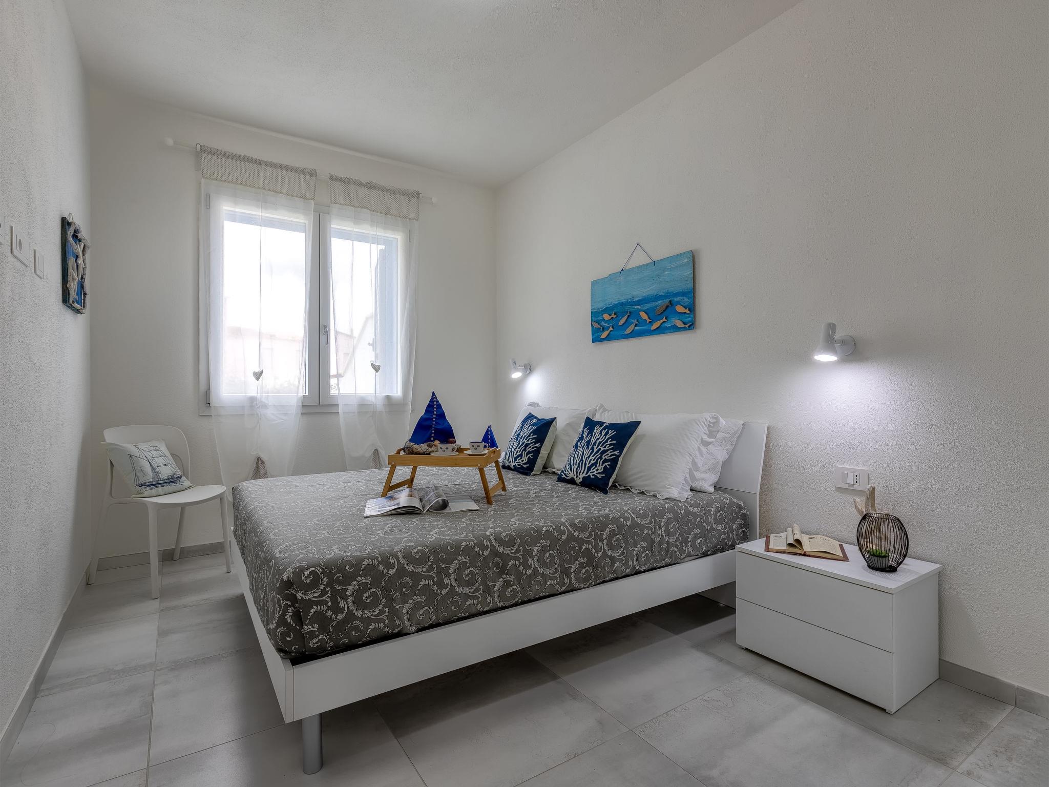 Modern residence "Azzurro", semi-detached, built in 2025. In the resort La Ciaccia, 3 km from the centre of Valledoria, in a sunny position, 250 m from the sea, 250 m from the beach. For shared use: swimming pool (8 x 10 m, depth 120 cm, seasonal availability: 15.Jun. - 15.Sep.). Outdoor shower, parking at the house, public parking. Grocery 200 m, supermarket 2 km, restaurant, bar 100 m, bus stop 3 km, sandy beach "Spiaggia la Ciaccia" 600 m pebble beach 150 m. Surf school 500 m, tennis 400 m. Nearby attractions: Castelsardo 13 km, Alghero 81 km, Costa paradiso 32 km, Olbia 89 km, Porto Cervo 86 km, Porto Rotondo 92 km. Please note: car recommended.