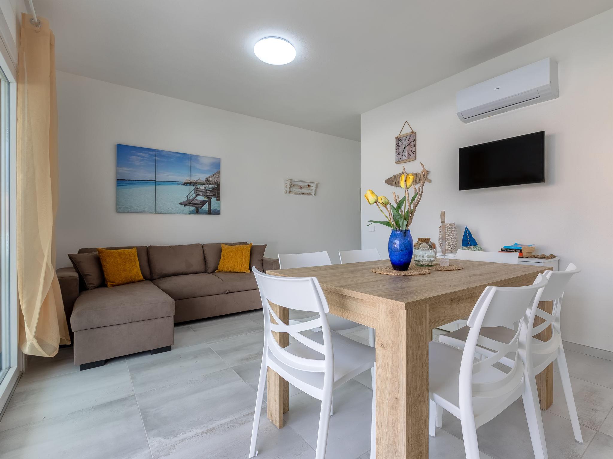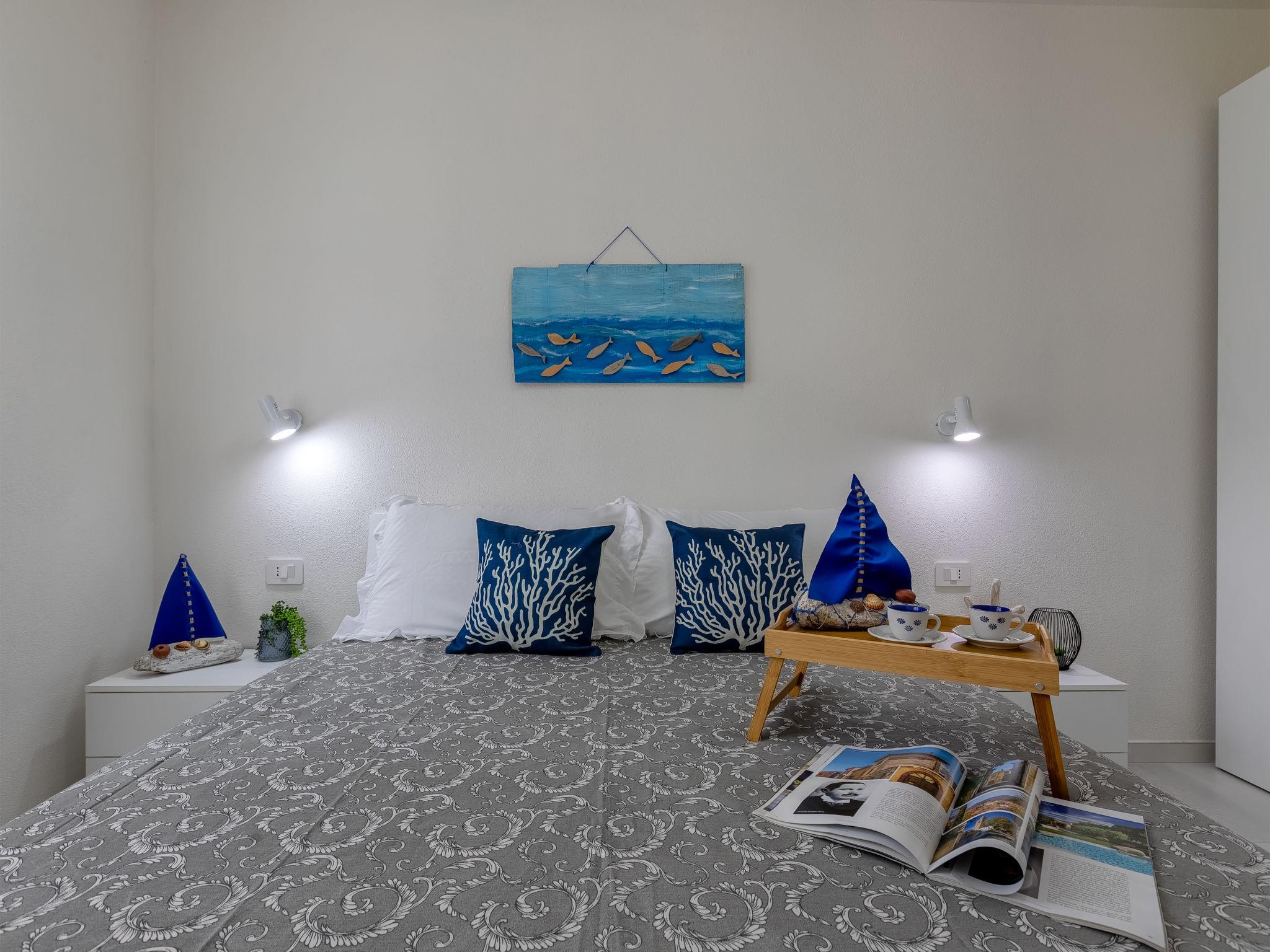 "Calipso", 3-room apartment 65 m2, on the ground floor. Modern and tasteful furnishings: living/dining room with 1 sofabed and satellite TV (flat screen). Exit to the terrace. 2 rooms, each room with 1 double bed and satellite TV (flat screen). Kitchenette (oven, dishwasher, 4 induction hot plates, toaster, kettle, microwave) with dining table. Shower/bidet/WC. Air-conditioning, forced-air heating. Large terrace partly roofed. Terrace furniture, deck chairs, sitting area. Very beautiful view of the sea and the swimming pool. Facilities: washing machine, iron, mosquito net, hair dryer. Internet (WiFi, free). Parking (1 car) at the house. Please note: maximum 1 small pet/ dog allowed. Fire extinguisher. IT090079C2000U1840