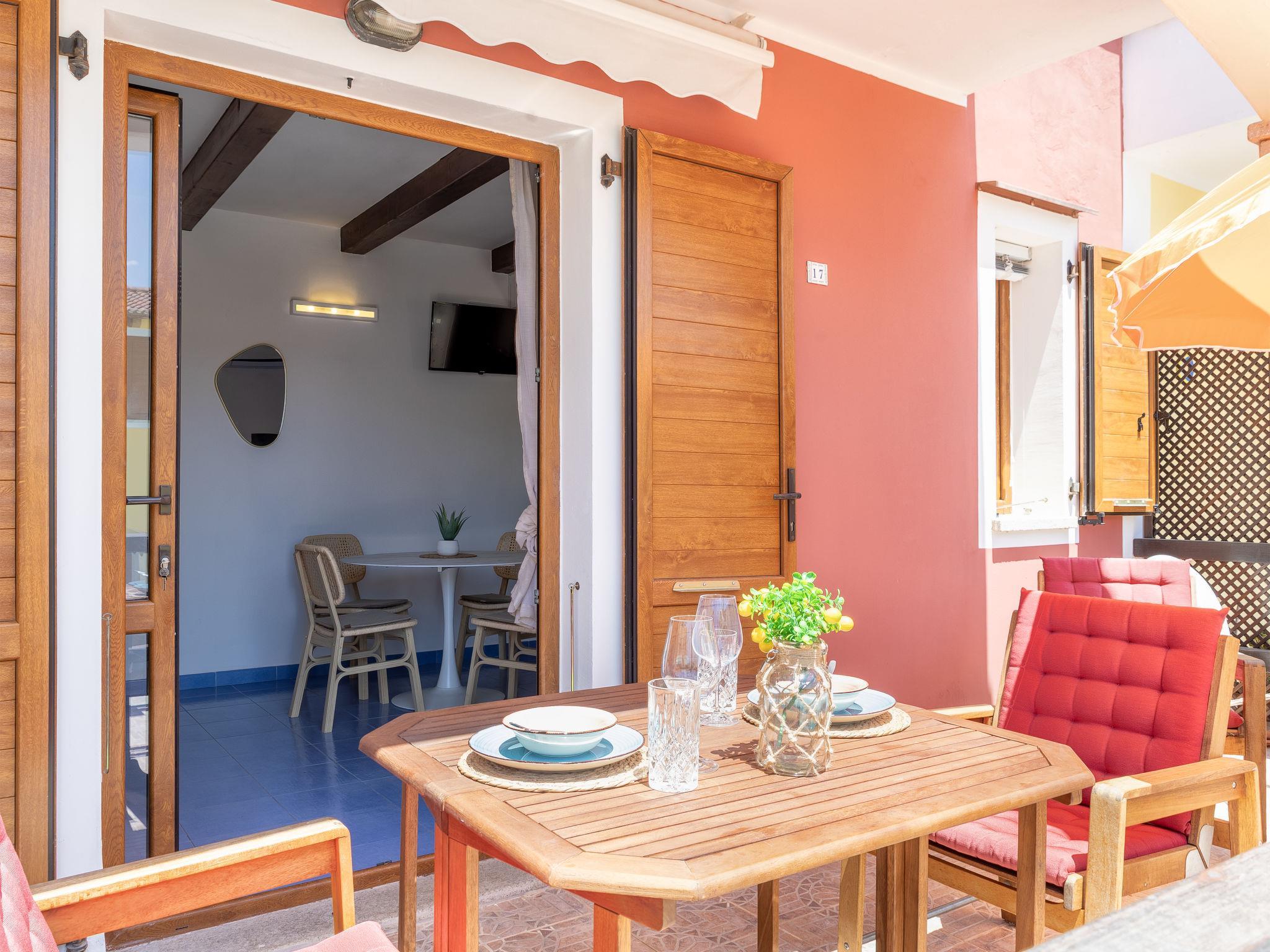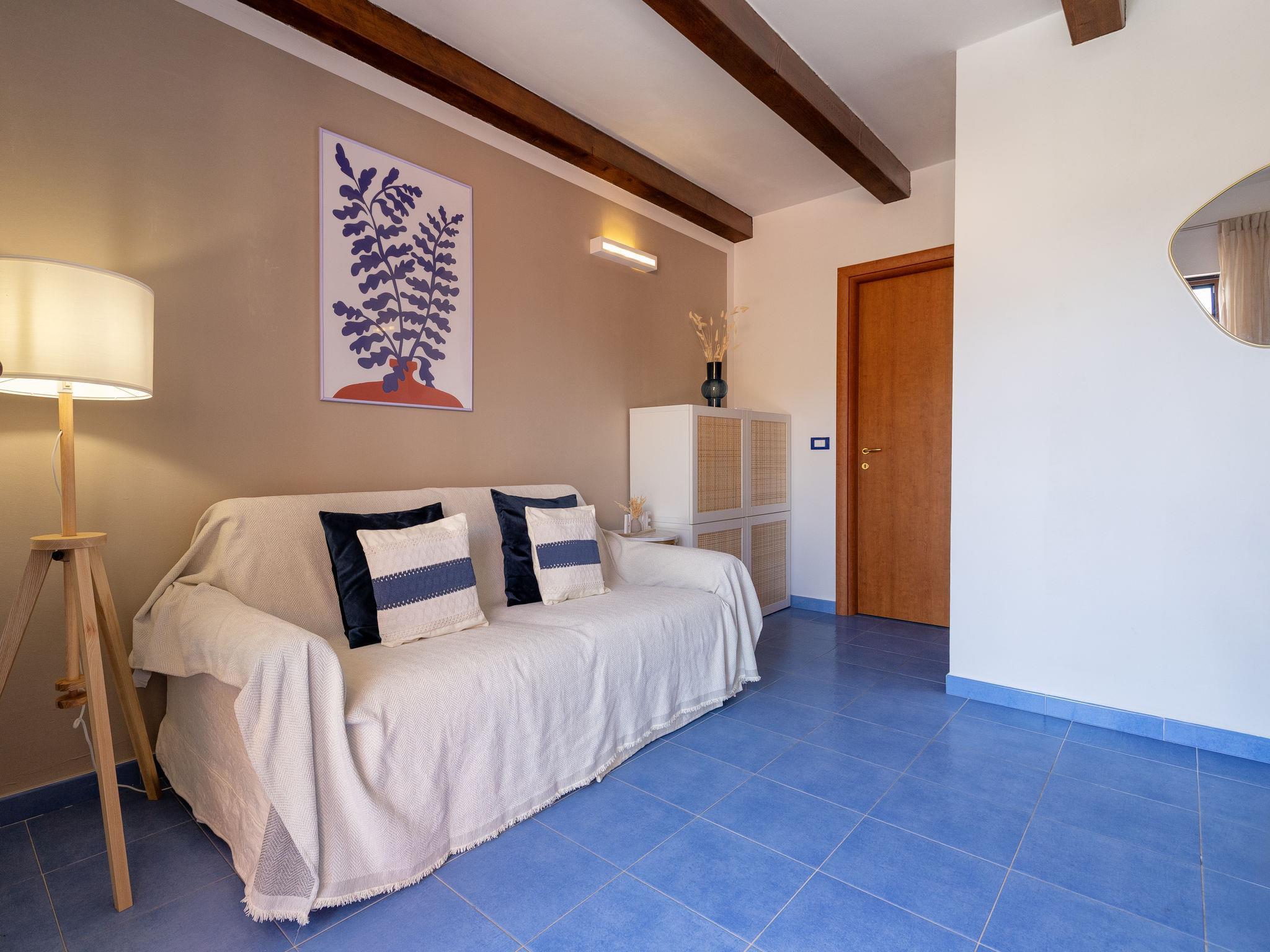 "Luce del Mare", 2-room apartment 44 m2, on the ground floor. Tasteful and cosy furnishings: dining room with 1 sofabed, TV and flat screen. Exit to the terrace, to the swimming pool. 1 double bedroom. Exit to the terrace. Kitchenette (oven, 4 gas rings). Shower/bidet/WC. Air-conditioning, boiler. Panoramic view of the swimming pool. Facilities: washing machine, hair dryer. Internet (WiFi, free). Parking space n 17 (1 car). Maximum 1 pet/ dog allowed. IT090082C2000T7522
