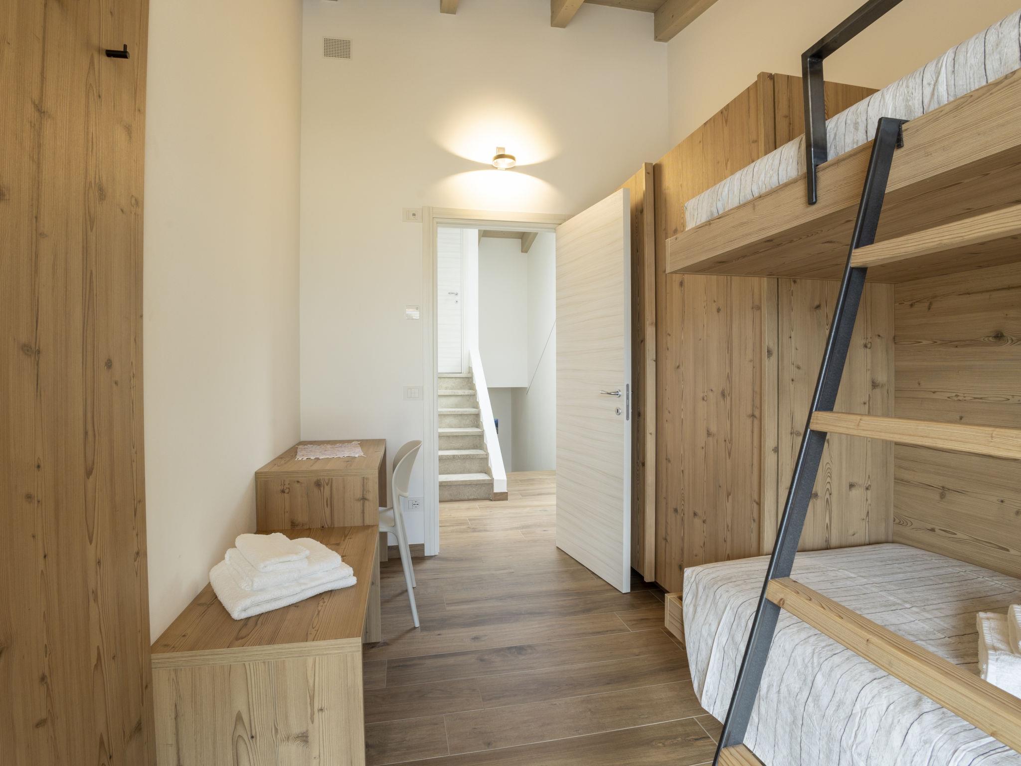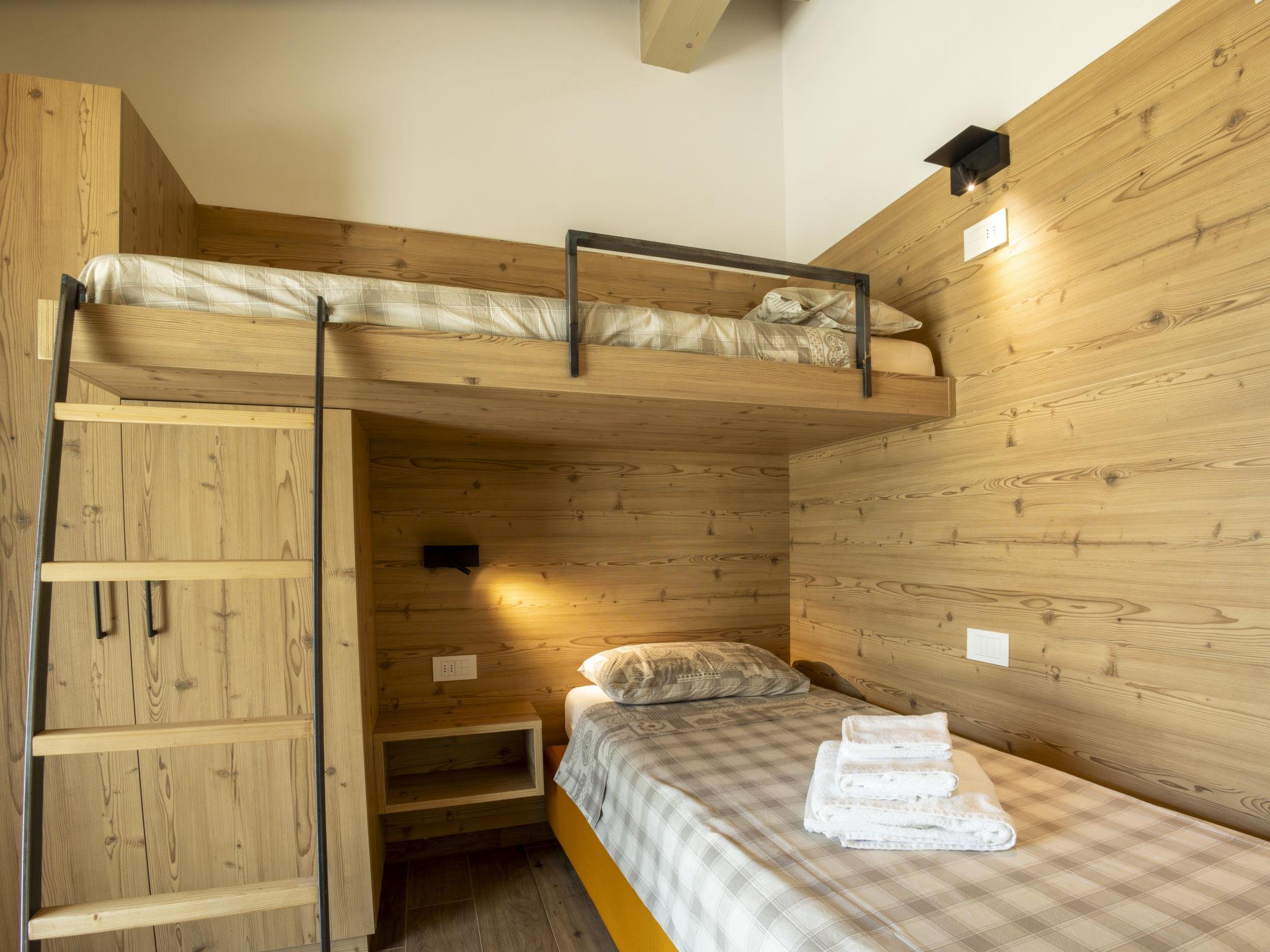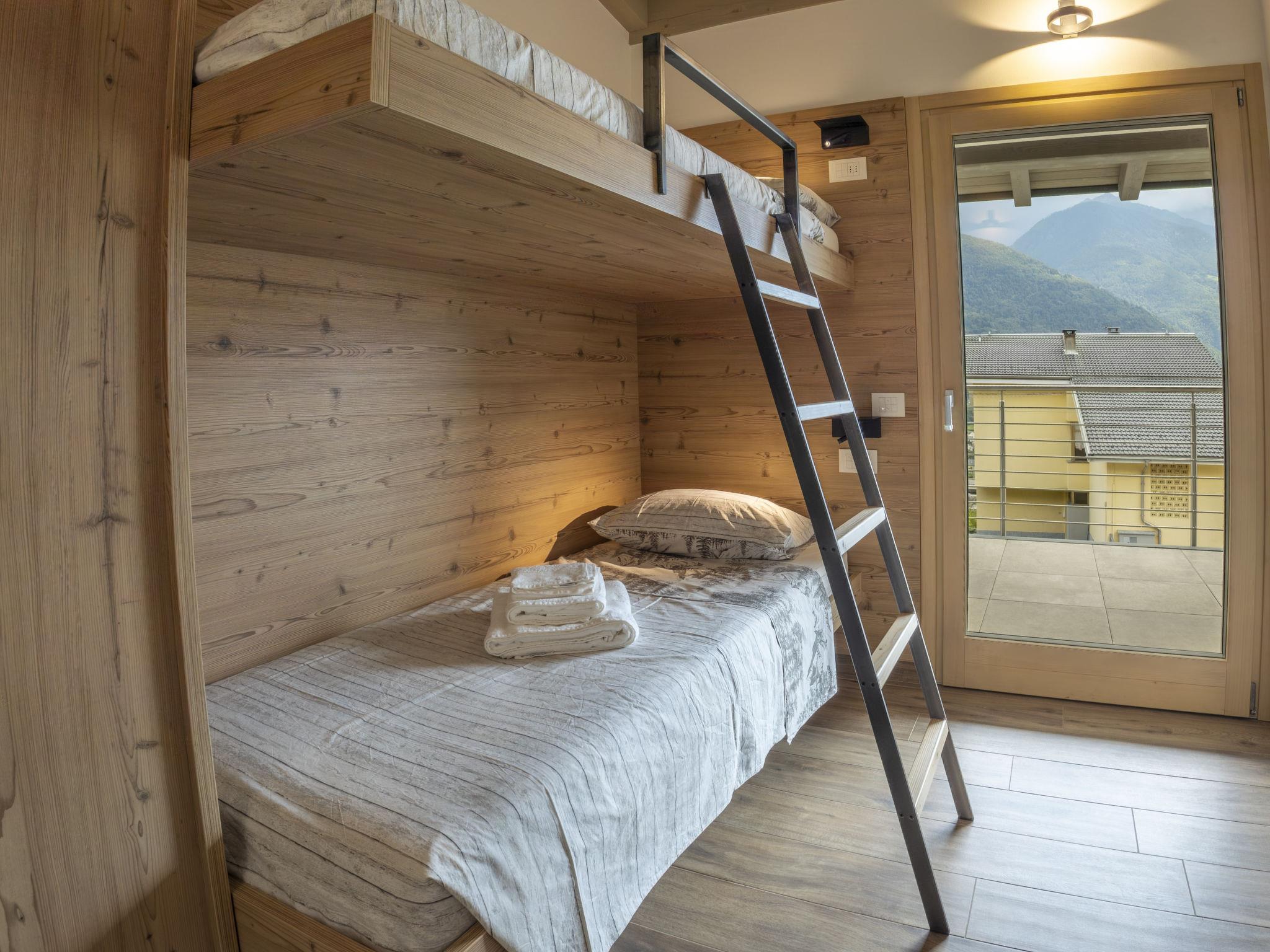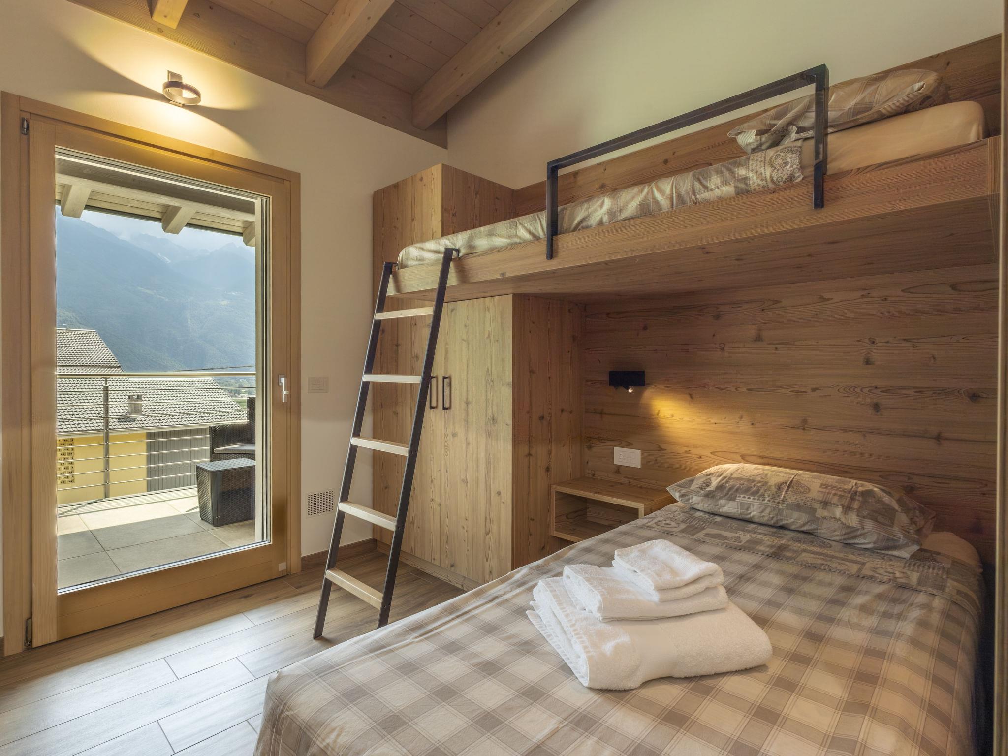 "Guarnelle House 2", 4-room semi-detached house 100 m2 on 2 levels. Spacious and bright, comfortable and beautiful furnishings: large living/dining room with sliding door, panoramic window with 1 double sofabed, dining table and TV. Exit to the garden. Kitchenette (dishwasher, 4 induction hot plates, toaster, kettle, microwave, freezer). Bathroom. Upper floor: 1 room with sloping ceilings with 1 x 2 bunk beds. Exit to the terrace. 1 room with sloping ceilings with 1 x 2 bunk beds. Exit to the terrace. 1 double bedroom. Exit to the balcony. Shower/bidet/WC. Heating, air-conditioning. Balcony, large terrace, garden, lawn. Terrace furniture, balcony furniture, barbecue. View of the mountains and the valley. Facilities: washing machine, children's high chair, baby cot, hair dryer. Internet (WiFi, free). Please note: suitable for families. Non-smoking house. Maximum 1 pet/ dog allowed. Private entrance. IT014008C2JOMQXHOG