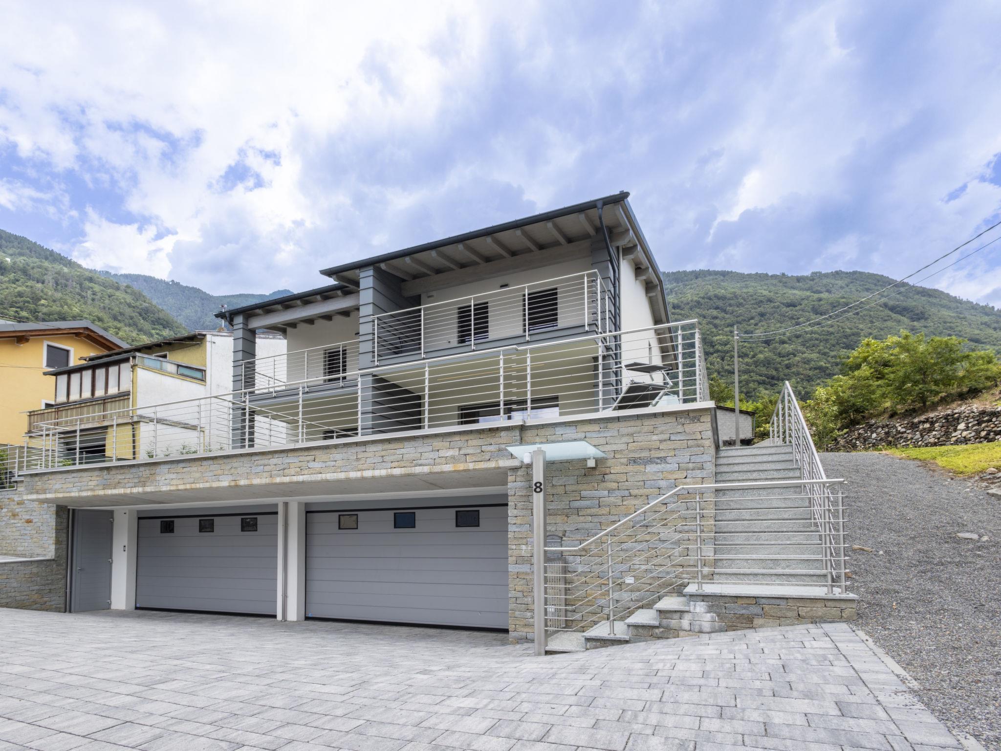 Modern, beautiful 2-family house 444 m a.s.l., 2 storeys, built in 2024, surrounded by meadows and vineyards. In the centre of Bianzone 6 km from the centre of Tirano, 14 km from the centre of Aprica, 44 km from the centre of Bormio, in a quiet position residential area (villas), 14 km from the skiing area, 2 km from the river, south-east facing position. Private: garden (fenced) with lawn. Garden furniture, barbecue house. In the house: storage room for bicycles, storage room for skis. Roofed, parking at the house. E-charging station. Supermarket 450 m, restaurant, bar, café 300 m, bus stop 100 m, railway station "Bianzone" 1.2 km, thermal baths "Terme di Bormio" 44 km. Nearby attractions: Train Bernina Express:Tirano-St Moritz 6 km, Lago di Poschiavo (CH) 14 km, Monte Combolo (mt. 2901), Monte Masuccio (mt. 2816). Well-known ski regions can easily be reached: Aprica 14 km, Bormio 44 km, Livigno 79 km. Well-known lakes can easily be reached: Lago di Como 60 km. Hiking paths: Sentiero dei Contrabbandieri, Monte Padrio, Alpe e Lago Schiazzera, Sentiero Valtellina, Sentiero del Sole. Please note: car recommended.