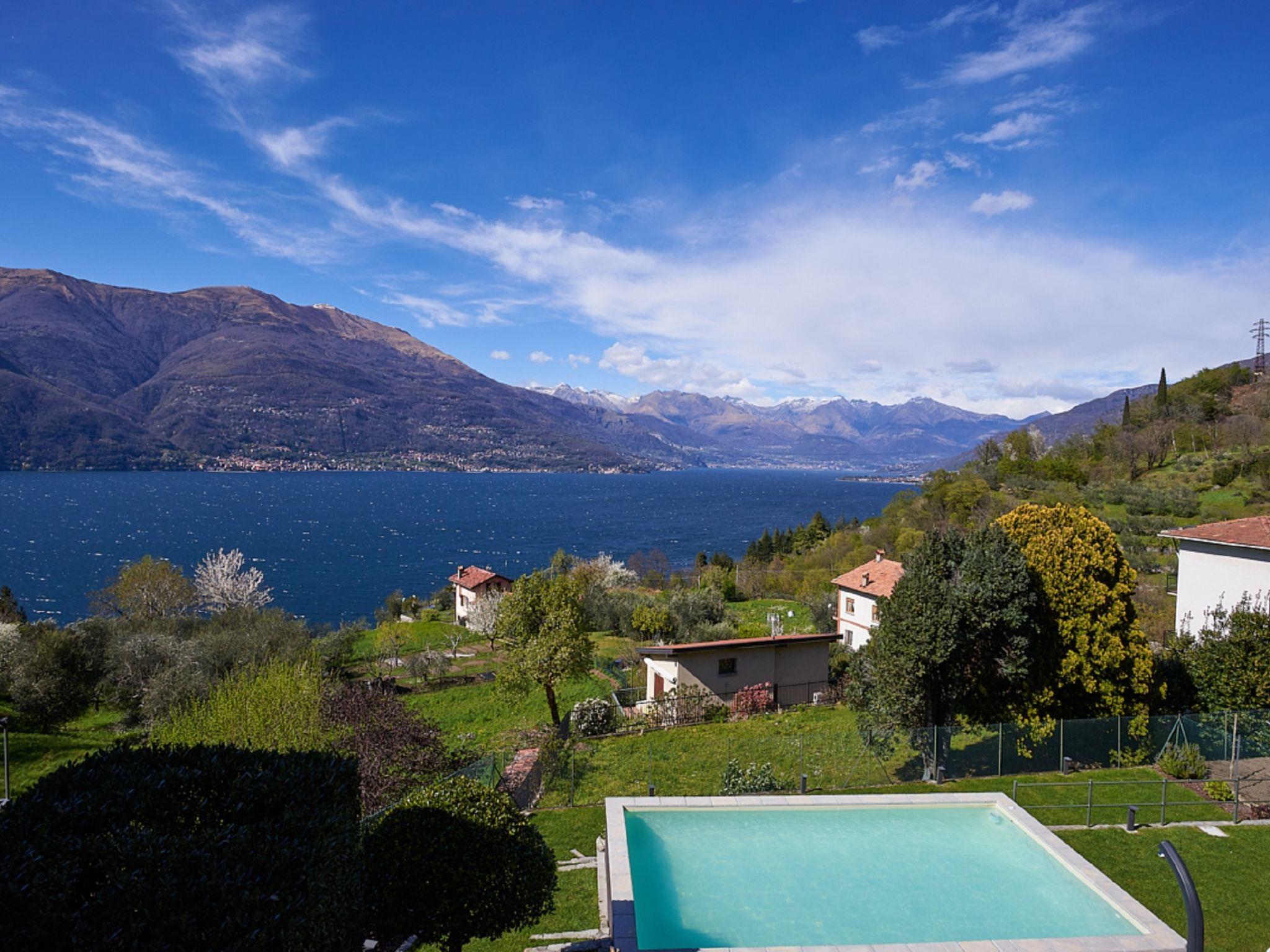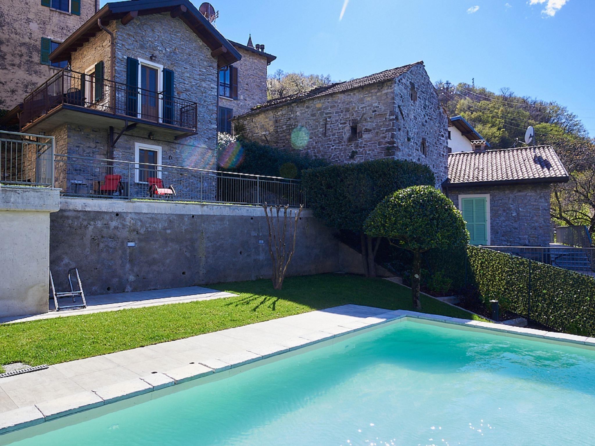 Perledo 3 km from Varenna: Residence. 2 houses in the residence. 3 apartments in the residence. In the hamlet Gittana 3.5 km from the centre of Varenna, 2.5 km from the centre of Perledo, 25 km from the centre of Lecco, 1.3 km from the lake. For shared use: garden 100 m2 with lawn, swimming pool angular (4 x 7 m, depth 100 cm, seasonal availability: 30.Apr. - 31.Oct.) with salt-electrolysis pool-cleaning system. Terrace, garden furniture, barbecue. Pool maintenance by the owner/gardener. In the house: storage room for bicycles, washing machine, tumble dryer (for shared use). 2.5 km long narrow motor access (mountain road). 20 m footpath (15 steps) to the house. Public parking 20 m. Shop 2.5 km, supermarket 3.5 km, bus stop "Perledo" 2.8 km, railway station "Varenna" 3.5 km, pebble beach "Lido di Gittana" 1.3 km (small), grass beach "Bellano" 3.5 km. Golf course (18 hole) 12 km, walking paths from the house 100 m. Hiking paths: Sentiero del Viandante.