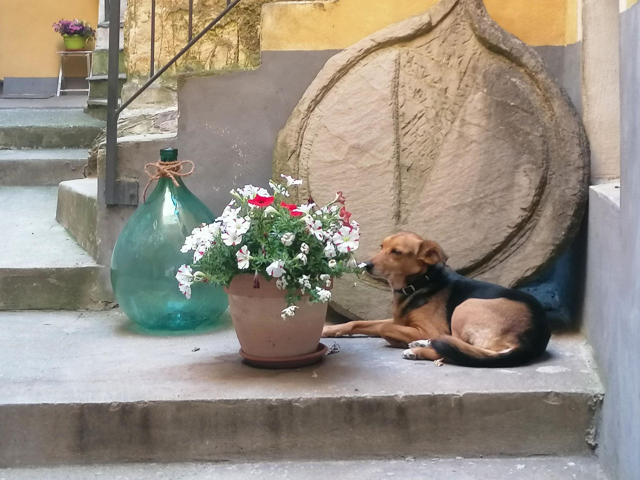 "Azzurro", 2-room apartment 50 m2 on 1st floor. Bright, tasteful furnishings: 1 double bedroom. Large kitchen-/living room (Gas stove, 4 gas rings, toaster, kettle, electric coffee machine) with dining table, 1 sofabed (160 cm), satellite TV. Shower/bidet/WC. Gas heating. Small balcony, garden. Terrace furniture, deck chairs (2). Beautiful panoramic view of the mountains and the valley. Facilities: washing machine, iron, children's high chair, baby cot, hair dryer. Internet (WiFi, free). Please note: 2 pets/ dogs allowed. Smoke alarm, fire extinguisher. IT008064B58EZMZR9O
