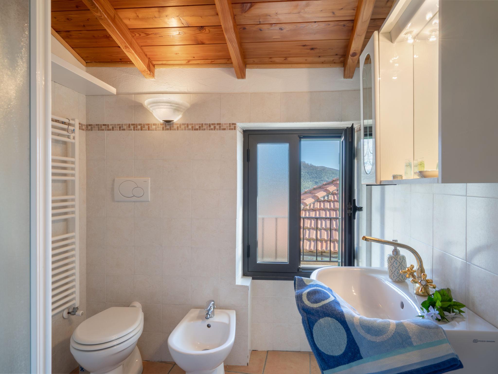 Agriturismo "Il Poggio di Vasia", from the 18th century, renovated. 4 apartments in the property. In the hamlet Vasia, 10 km from the centre of Imperia, in a quiet, sunny, elevated position on top of a hill, 10 km from the sea, in a cul-de-sac. For shared use: terraced garden. Bumpy, narrow motor access to 200 m from the house. Public parking 10 m. Shop 800 m, supermarket 10 km, shopping centre 10 km, bar 800 m, bicycle rental 10 km, bus stop 40 m, railway station "Imperia Oneglia" 15 km, sandy beach 10 km pebble beach 10 km. Marina 15 km, walking paths from the house 10 m, cycle lane 10 km. Nearby attractions: Pista ciclabile lungo mare 10 km, Porto Maurizio Altstadt Parasio 10 km, Lavendeldestilation in Pantasina 10 km, Valloria,Künstlerdorf,160 bemalten Türen 15 km, Monte Carlo Monaco 55 km, San Remo 35 km. Hiking paths: Monte Faudo (1149 m) Mountainbike Trails 15 km. Please note: car recommended.