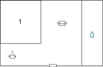 Opholdsstue/køkken - 3 Sovepladser. (Enkeltseng(e)).