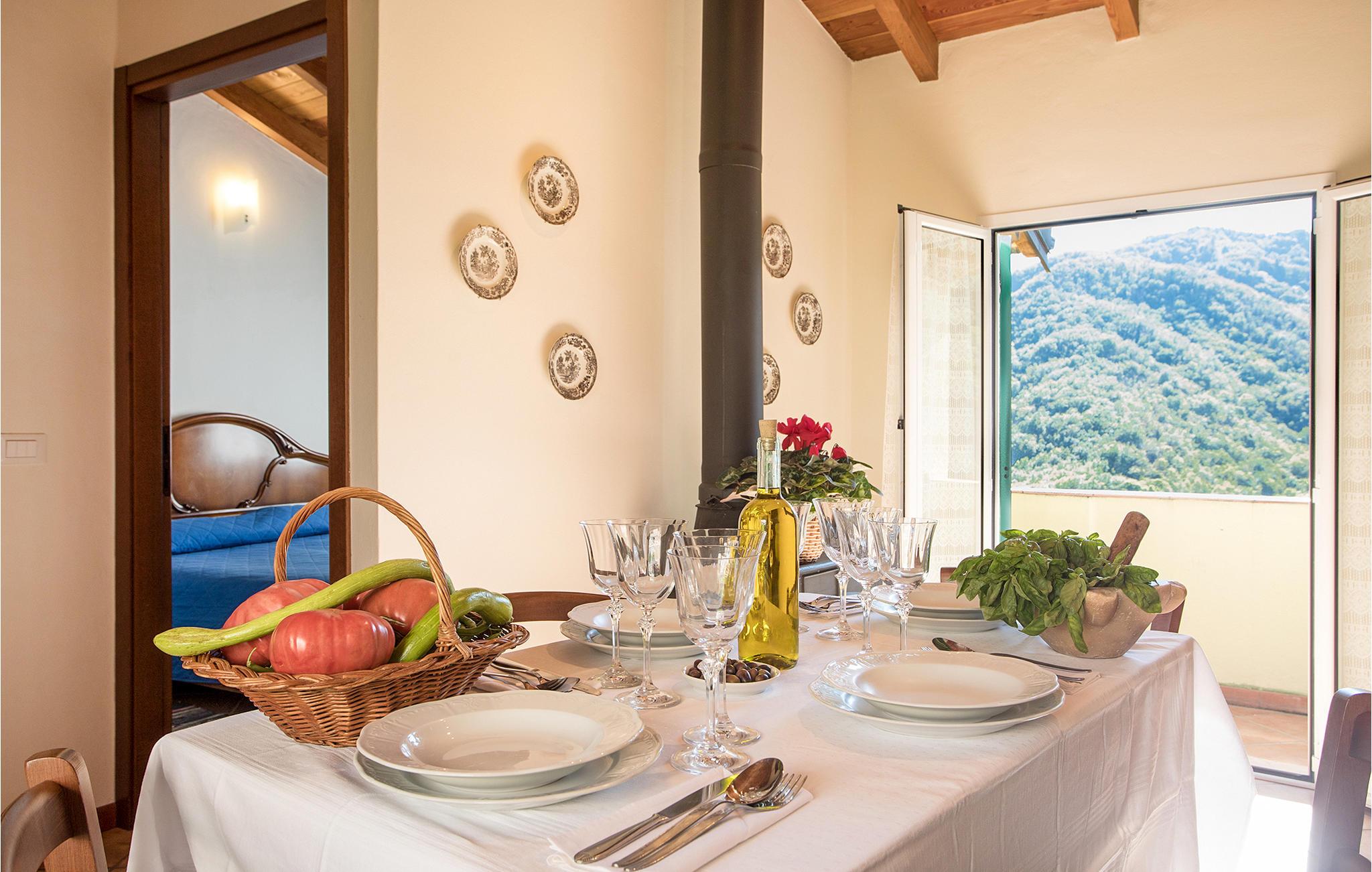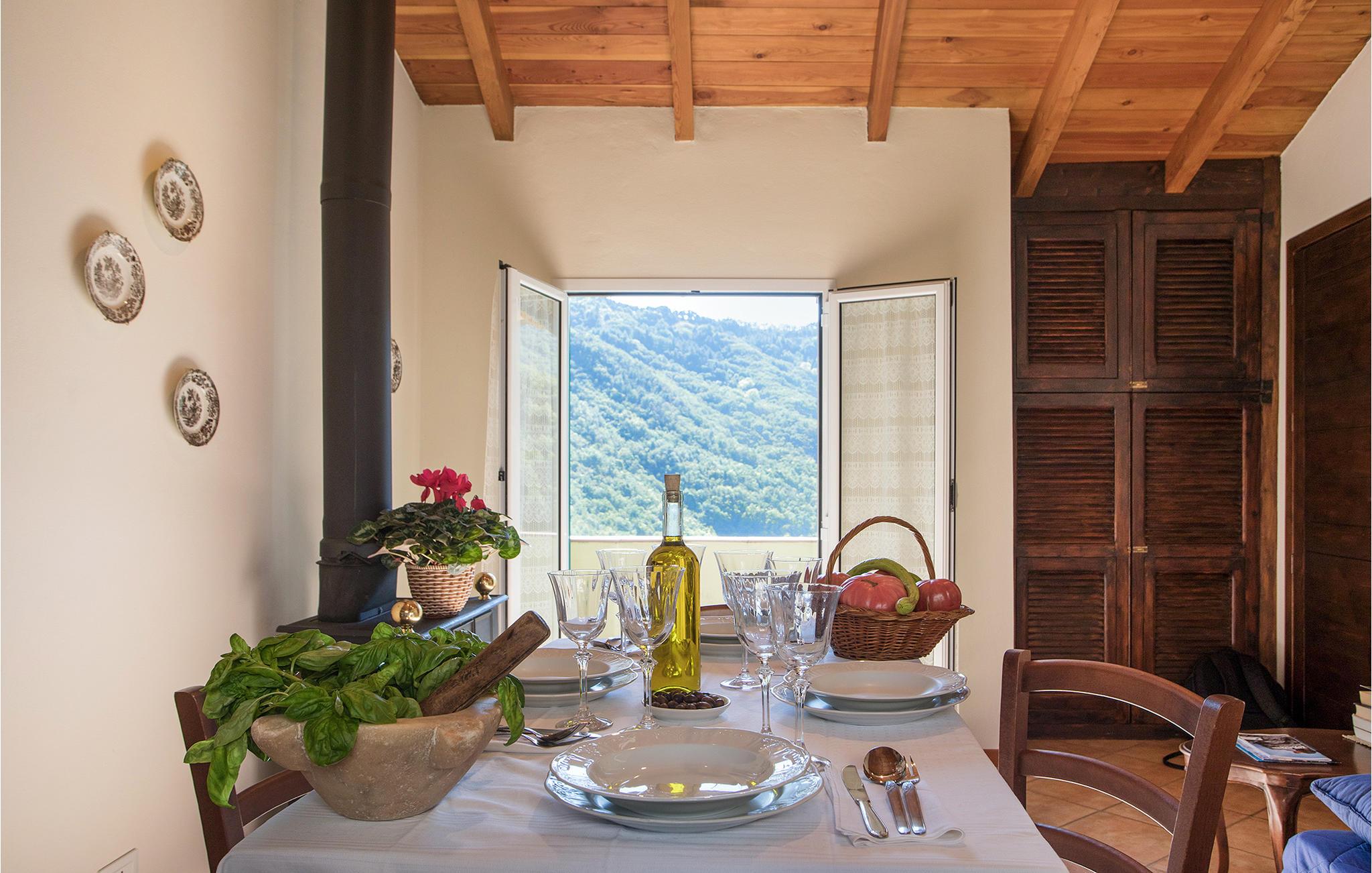 Dette feriehus i 450 m højde ligger et roligt sted i den maleriske landsby Vellago. I er her 25 km nord for den levende kystby Imperia og kun 90 minutter fra Nice. Den antikke kirke er den rolige landsbys midtpunkt. På torvet kan I prøve liguriske egnsretter. I skal kun bruge en halv time i bil for at komme til badestederne Alassio, Albenga, Cervo og på en time kan I nå den travle kystby Ventimiglia. Men også fyrstedømmet Monaco og kystbyen Nice er nemme at nå. I jeres private have, der nås over en trappe, kan I uforstyrret nyde stilheden og den overvældende udsigt til de omkringliggende skove og oliventræer.