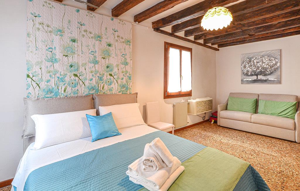 Denne dejlige, lyse ferielejlighed har en vidunderlig beliggenhed, ikke langt fra den verdensberømte Canal Grande og Rialto-broen. Herfra kan I nemt besøge hele byen og dens mange seværdigheder. To soveværelser, et badeværelse, et køkken og en stue giver plads nok til op mod seks gæster.