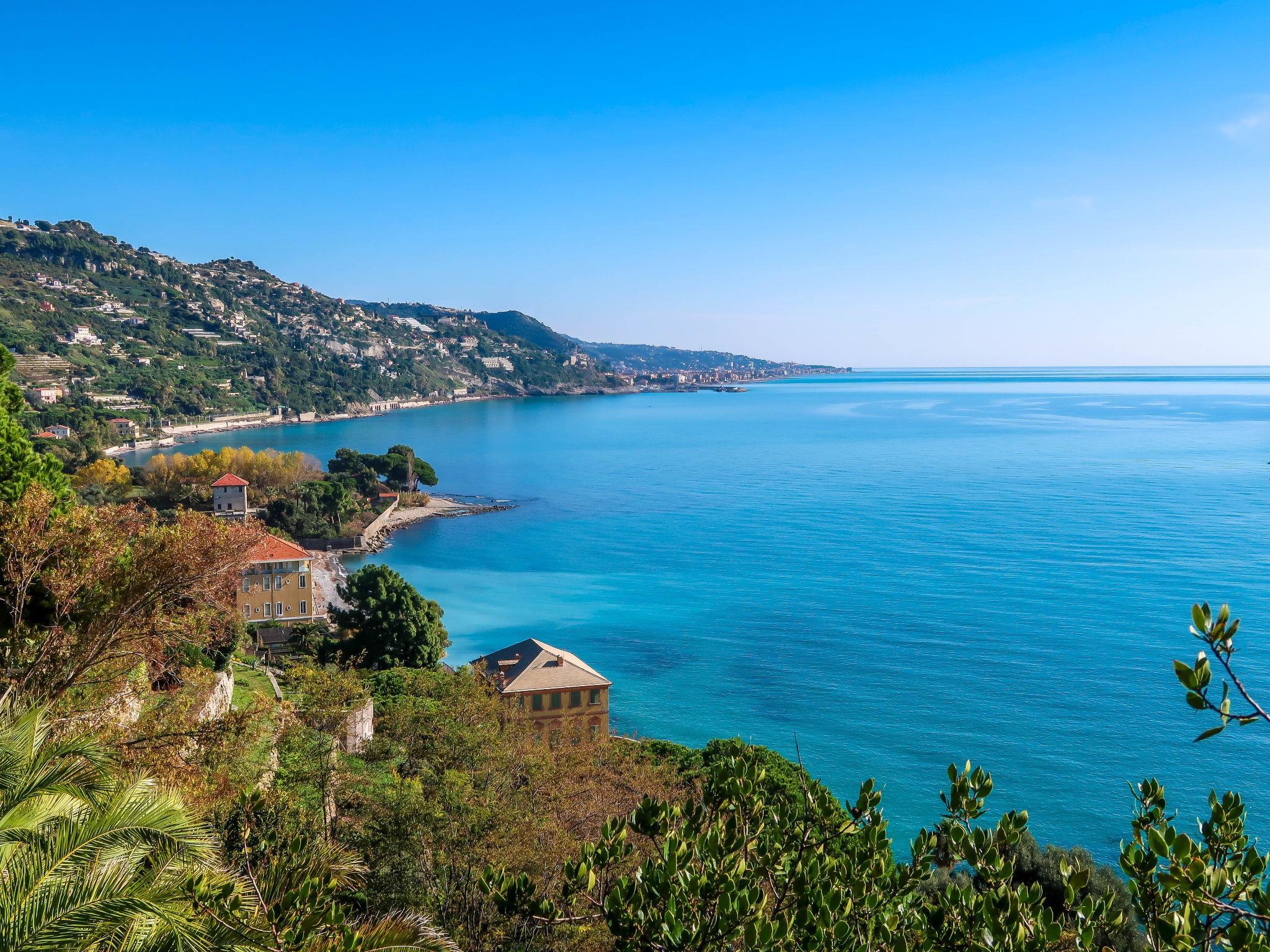 Old apartment house "Villa Belvedere", built in 1850. 24 apartments in the residence. In the district of Latte 5 km from the centre of Ventimiglia, 3 km from the centre of Menton (Côte d'Azur), in a sunny position on a slope, 800 m from the sea, 700 m from the beach. For shared use: large, well-kept terraced garden, 3'000 m2 with lawn and trees, swimming pool (15 x 5 m, depth 100 - 230 cm, seasonal availability: 15.Jun. - 30.Sep.). Outdoor shower. Stepped path (27 steps) to the house. Parking on the premises. Supermarket, restaurant, bar 700 m, bus stop 100 m, railway station "Ventimiglia" 5 km, pebble beach 750 m (small). Nearby attractions: Giardini Botanici Hanbury 750 m, Balzi Rossi 3.5 km. Please note: main road close by. Obligation to wear bathing caps.