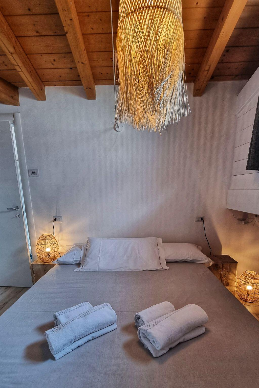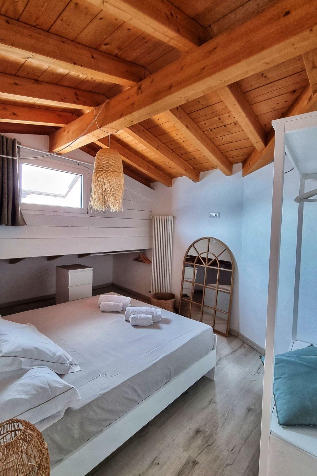 Internally, the flat is carefully furnished and equipped with every comfort to ensure a pleasant stay. On the ground floor, you will find a bedroom with a bunk bed and an open wardrobe, as well as a modern, fully renovated bathroom with shower, toilet, bidet, sink, and guest washing machine. Going up to the first floor, a spacious double bedroom welcomes guests with a large open wardrobe, outlining a cosy and relaxing sleeping area. The living area, on the adjacent floor, has a large living room and a fully equipped kitchenette, as well as a terrace with an outdoor table and barbecue for pleasant evenings in the open air.