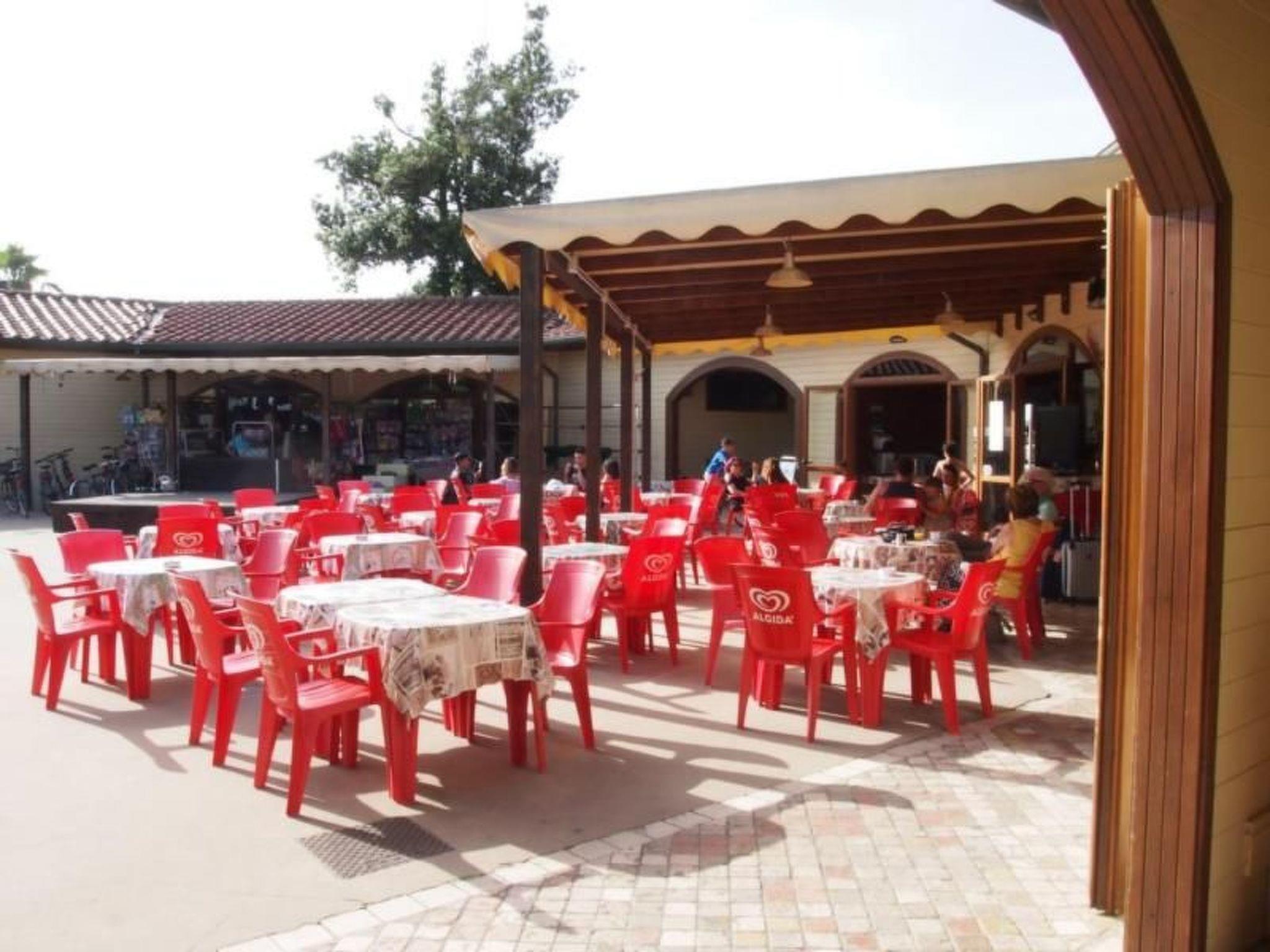 Outside there is a large, roofed and furnished veranda measuring 7 x 2m.Next to the mobile home there is a free private parking space.From the campsite there is a shuttle bus to the seaside, only in the main season There is also a large children’s playground with six large trampolines, a football pitch, climbing frames and a shared swimming pool.There are also a restaurant, a supermarket, a shop with camping gear and bike and mountain bike rental.The campsite has a capacity of around 400 places and there is a reception where Italian, German, Dutch and English are spoken.