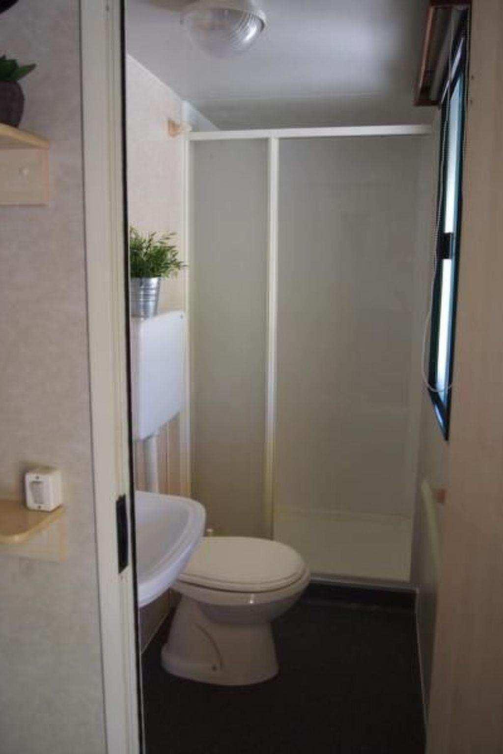 This mobile home is suitable for a maximum of five people.The owner offers four such mobile homes, of which this is a representative description.This mobile home offers you a luxurious interior.The living area provides seating, air conditioning (for a fee) , satellite TV ( only on request) and a DVD player.The open kitchen includes a fridge, a Senseo coffee machine, a microwave, a gas stove, a toaster and a kettle.There is a bedroom with a double bed, and a second bedroom with a single bed and a bunk bed for two people.The bathroom has a shower, a washbasin and a toilet.