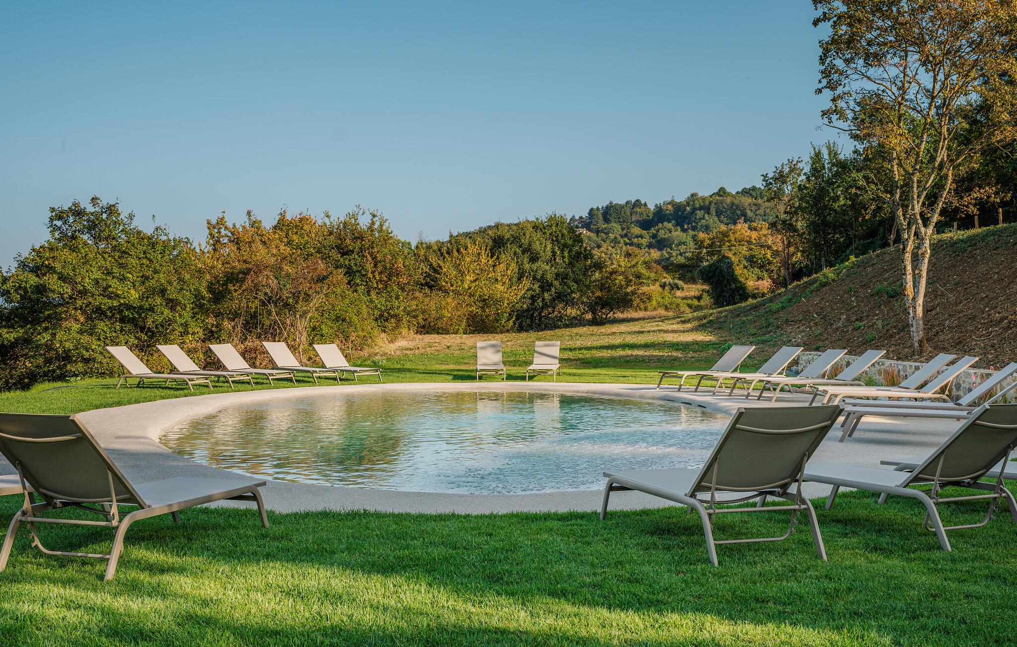 Den smukke, store grund giver børnene rigelig plads til at lege udendørs. Lad batterierne op ved den cirkulære pool og nyd mindeværdige måltider under den blå himmel.