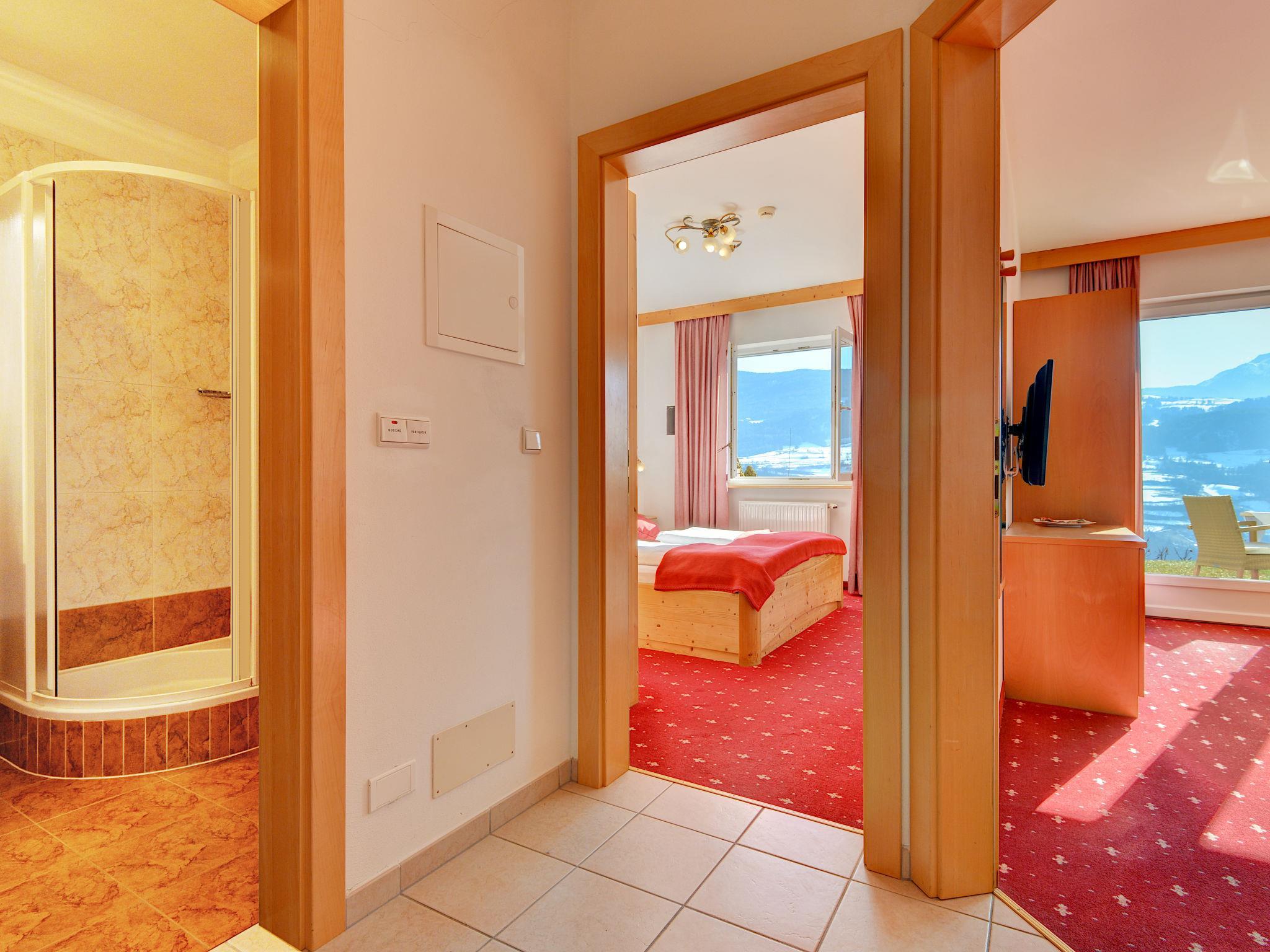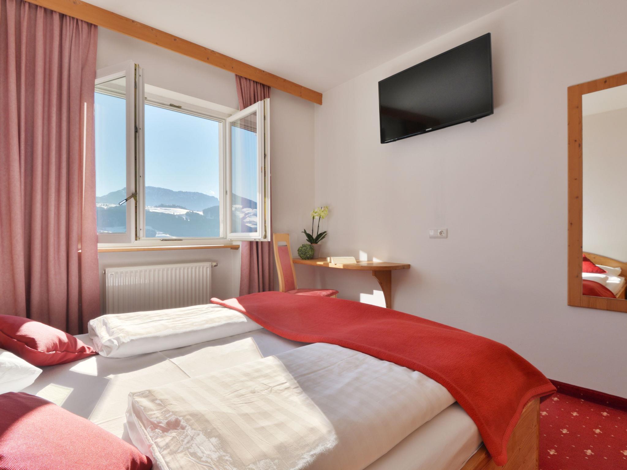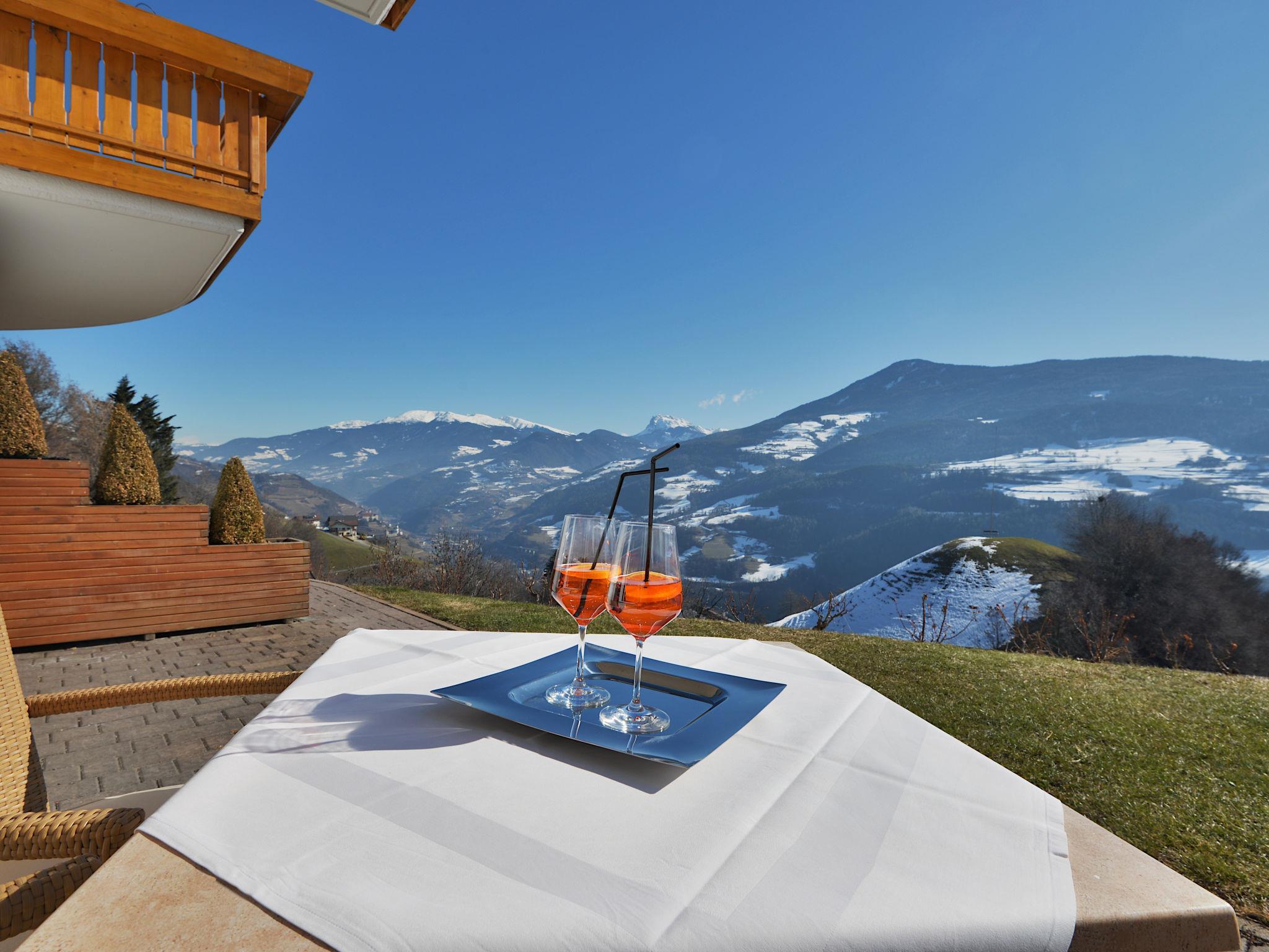 Aparthotel "Dependance Egger Apartments&Suites", 880 m a.s.l., 4 storeys. 13 apartments in the residence. 100 m from the centre of Villanders/Villandro, 6 km from the centre of Klausen/Chiusa, 30 km from the centre of Bozen/Bolzano, on a slope. For shared use: property, beautiful, well-kept terraced garden (fenced) with lawn and trees, lawn for sunbathing, swimming pool (10 x 5 m, seasonal availability: 15.May. - 30.Sep.). Table tennis. In the complex: reception, bar, breakfast room, sauna (extra). Lift. Parking at the house on the premises, communal covered parking (extra). Supermarket 100 m, restaurant 500 m, bakery 100 m, bus stop "345 Klausen-Villanders-Vill.Alm" 50 m, railway station "Klausen/Chiusa" 8 km. Walking paths from the house 10 m, cycle lane 6 km. Nearby attractions: Brixen/Bressanone 17 km, Sterzing/Vipiteno 47 km, Ritten/Renòn 22 km, Lengmoos/Longomoso (earth pyramids) 17 km, Mountain-Biking 10 m. Well-known ski regions can easily be reached: St.Ulrich/Ortisei (Gröden/Val Gardena) 21 km, Seis/Siusi (Seiser Alm/Alpe di Siusi) 17 km, Plose 25 km. Hiking paths: Villanders/Villandro 10 m, Lajen/Laion (Grödner Tal/Val Gardena) 17 km, Seis/Siusi (Schlern/Sciliar) 17 km.
