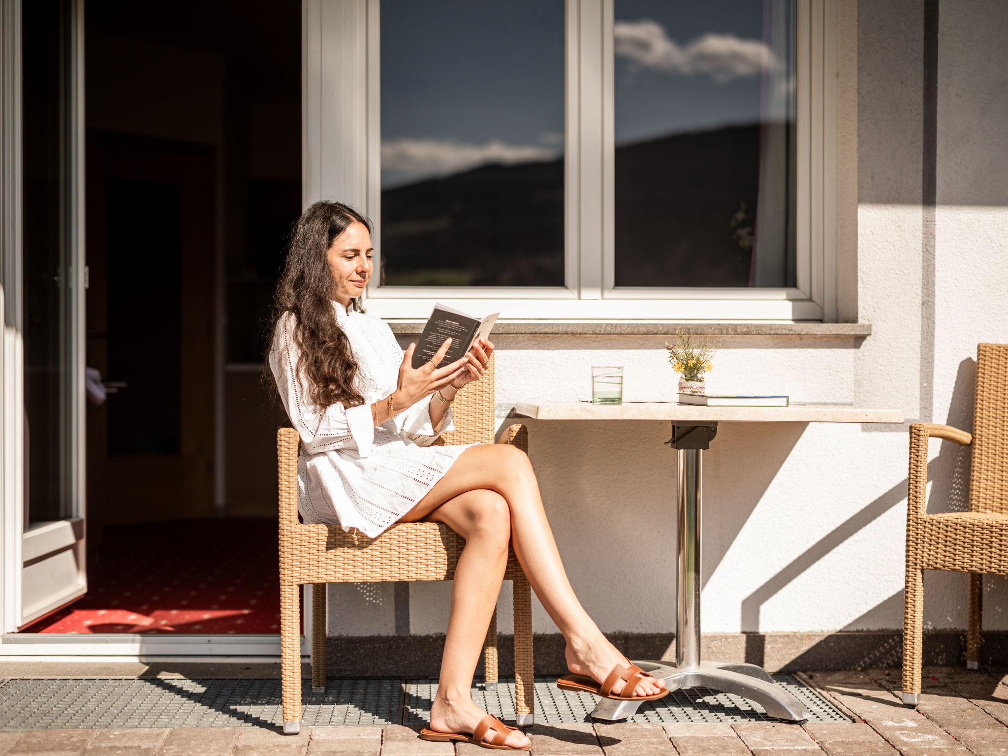 "Garden 102", 2-room apartment 41 m2 on 1st floor. Bright, practical and cosy furnishings: living/sleeping room with 1 double sofabed, dining nook and satellite TV. Exit to the terrace. 1 double bedroom with satellite TV. Small, open kitchen (dishwasher, 4 ceramic glass hob hotplates, toaster, kettle, microwave, electric coffee machine). Shower/WC. Heating. Carpet. Terrace, south-east facing position. Terrace furniture. Panoramic view of the mountains and the valley. Facilities: safe, children's high chair, baby cot (extra). Internet (WiFi, free). Please note: non-smokers only. Maximum 1 pet/ dog allowed. No mandatory extra charges to be paid on-site except for local tax. Bedlinen, towels, final cleaning and all energy costs are included. IT021114B4YTADM49K