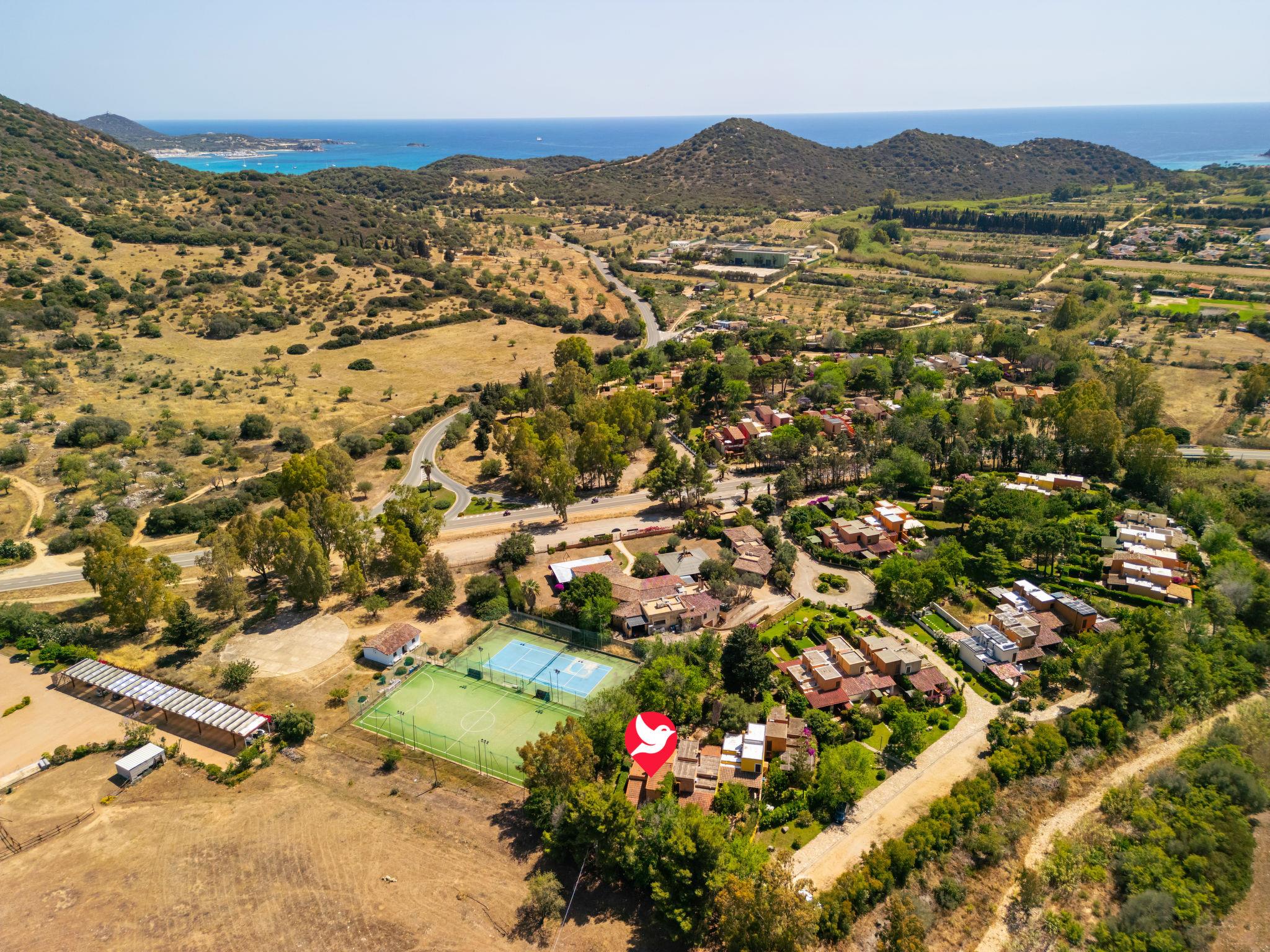 Large, beautiful residence "Cordolino Blu", surrounded by trees. 22 houses in the residence. On the outskirts, 1 km from the centre of Villasimius, in a quiet, sunny position, 1.5 km from the sea, 1.5 km from the beach, in the countryside. For shared use: large garden (fenced) with plants and trees, parking at the house. Shop 800 m, supermarket 1 km, restaurant, bar 100 m, bus stop "cordolino blu" 100 m, sandy beach "Campus" 1.5 km. Sports harbour 2.5 km, golf course (18 hole) 2 km. Nearby attractions: Costa Rei 15 km, Cagliari 55 km. Please note: car recommended.
