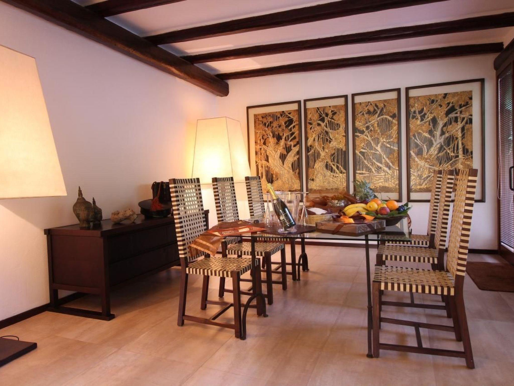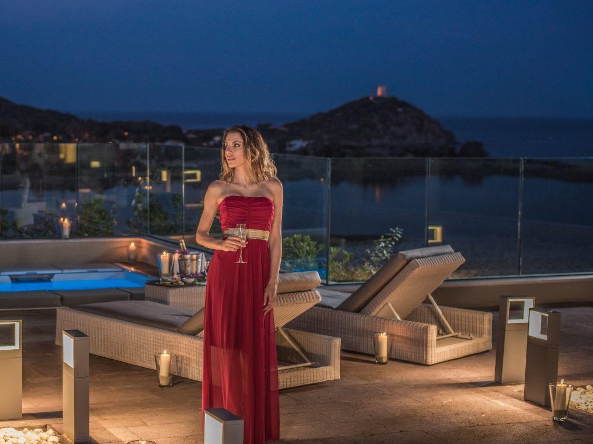 This apartment, located in Villasimius, is ideal for 6 vacationers. It offers 3 bedrooms and a furnished terrace. The living room is perfect for relaxing after a day in the sun. Curl up on the comfortable sofa and enjoy a good book or take advantage of the amenities on offer, including a radio and a DVD player. The kitchen is fully equipped to allow you to cook your favorite dishes. Enjoy your meals at the dining table that offers chairs for 8 people or out on the terrace. The apartment has 3 comfortable bedrooms, 2 with a double bed, and 1 with 2 single beds, a private bathroom with a shower and a toilet. Several bathrooms are available, one with a shower and toilet and one with a shower, WC and. The apartment has a jacuzzi, a washing machine, cleaning products, a vacuum cleaner, an iron and ironing board and air conditioning. Please note that cleaning fees, towels, sheets and tourist tax are included in the rental cost. Parking is available on-site and is private. Smoking is allowed outside only. Animals are not allowed. Parties are not allowed. The distance from the beautiful beaches is 800 meters and from the center of the village is 100 meters.Short description 1Number of kitchens : 1Bedroom 1Other bedroom furniture : Air Conditioning and TVBedroom 2Other bedroom furniture : Air Conditioning and TVBedroom 3Other bedroom furniture : Air Conditioning and TVSurroundingNearby sports facilities : Basketball, Bike tours, Canoeing, Diving, Fishing, Football area, Golf course, Horse stalls (guests), Hunting facilities, Indoor riding arena, Mountainbiking, Riding possibilities, Rowing, Sailing, Sport center, Surfing, TennisRental Facilities : Bicycle rental service, Boat rental service, car rentalSurrounding 1Excursion possibilities : There are several excursions at sea, the most beautiful are with Matilda, Maby and Fiore di Maggio, all bookable at the Port of VillasimiusLocation description : Villasimius is located south of Sardinia, and is renowned as a tourist area due to its white sandy beaches, clear blue sea and a mild climate even in winter, considered one of the most beautiful seas in the world. Its beauty is due to the protection of the coasts and the free beaches and also thanks to the protection of the sea, in fact its is a Marine Protected AreaOther leisure facilities : In Villasimius you can go cycling, horse riding, snorkeling, running, diving, sailing, surfing, tennis and golfGarden and outdoorGarden facilities : Garden furniture providedOn-site leisure facilities : WhirlpoolService benefits 1Other : Beautiful Villa with attention to detail furnished with class and with all the comforts, air conditioning, jacuzzi, TV with SKY, fully equipped kitchen, elegant and classy dishes and glasses, outdoor patio under the olive tree, patio near the jacuzzi, caretaker, parking three bathrooms with luxurious bedrooms, close to shopping and restaurants and five minutes from the white beaches of Villasimius