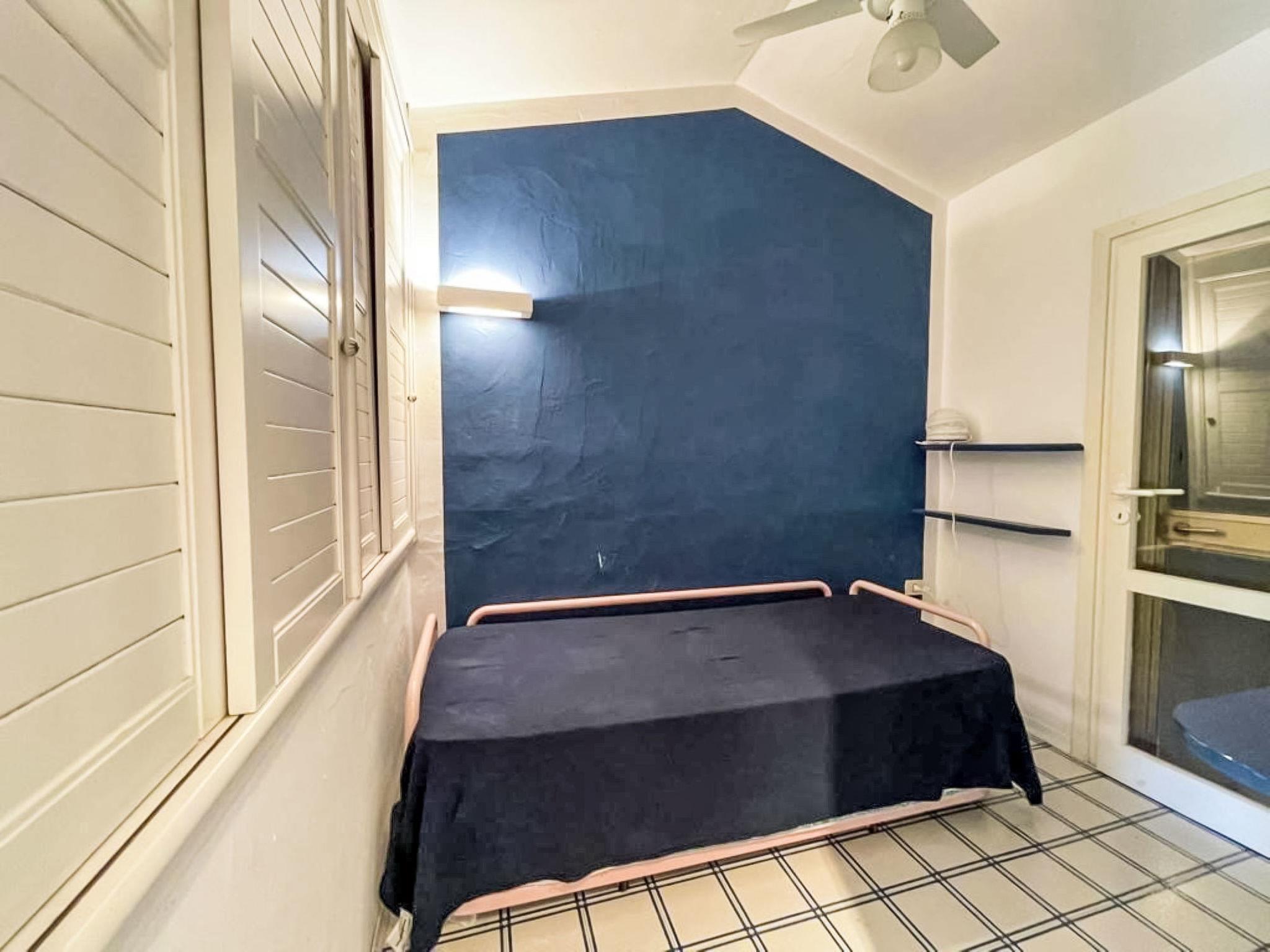 "Pellicano", 3-room villa on 2 levels, on the ground floor. Comfortable and cosy furnishings: living/dining room with dining table. Exit to the garden, to the veranda. Kitchenette (4 gas rings). Upper floor: 2 double bedrooms, each room with fan. Exit to the veranda. Shower/bidet/WC. No heating option. Large terrace partly roofed. Terrace furniture, barbecue. Very beautiful view of the sea. Facilities: washing machine. Parking. IT111105C2000P4199