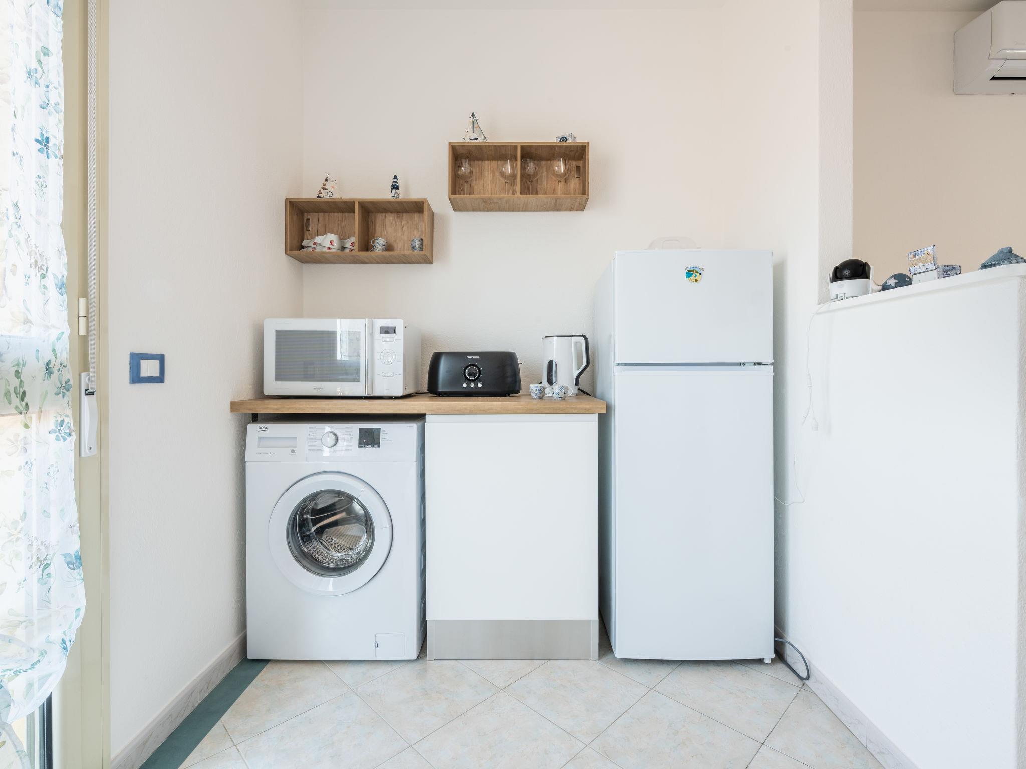 "Mare Fuori", 3-room apartment 85 m2 on 1st floor. Comfortable and cosy furnishings: living/dining room with dining table, digital TV and air conditioning. Exit to the balcony. 1 double bedroom with 1 x 2 bunk beds, TV and air conditioning. Exit to the balcony. 1 double bedroom with 1 bed, TV and air conditioning. Kitchenette (dishwasher, 4 gas rings, toaster, kettle, microwave, electric coffee machine, Capsules for coffee machine (BIALETTI)). Exit to the balcony. 2 showers/bidet/WC. Air-conditioning, forced-air heating. Balcony. Balcony furniture. Side view of the sea. Facilities: washing machine, iron, children's high chair, baby cot (extra), hair dryer. Internet (WiFi). Please note: fire extinguisher, no lift. IT111105C2000T0439