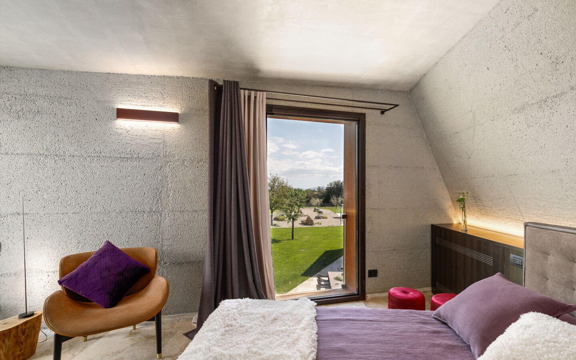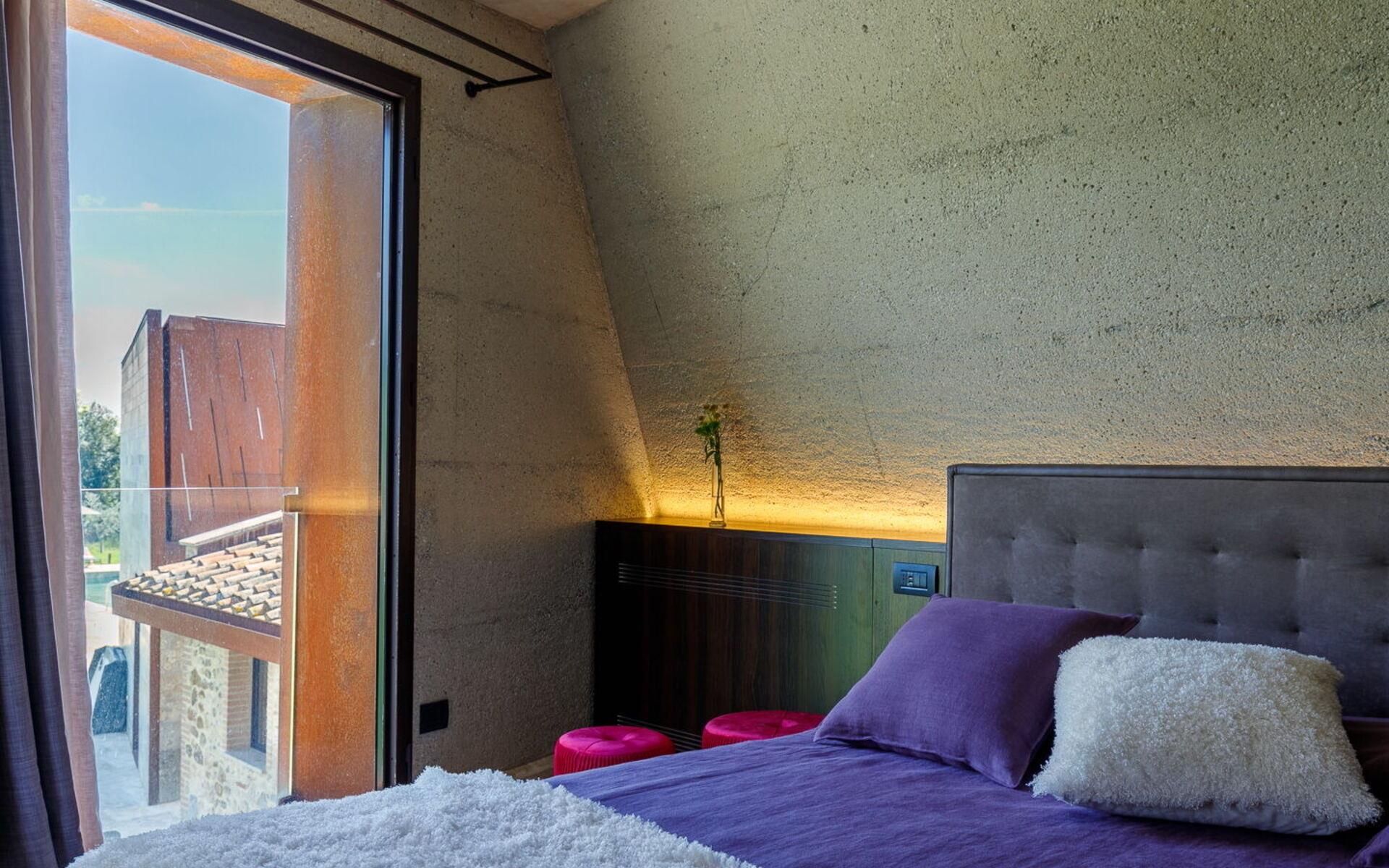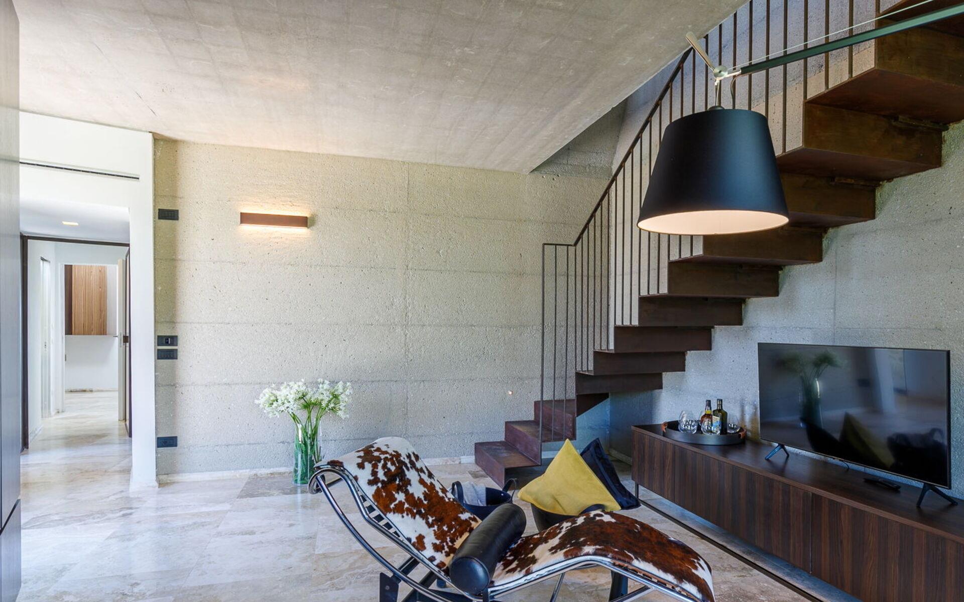Die Villa ist das Ergebnis einer Renovierung im Namen der Innovation und der Tradition: sie besteht aus 3 miteinander verbundenen Einheiten, von denen der Hauptteil, das ursprüngliche Wohnhaus aus Stein, in der Mitte liegt, während die beiden Einheiten an den Seiten durch minimale und moderne Linien und Formen gekennzeichnet sind.