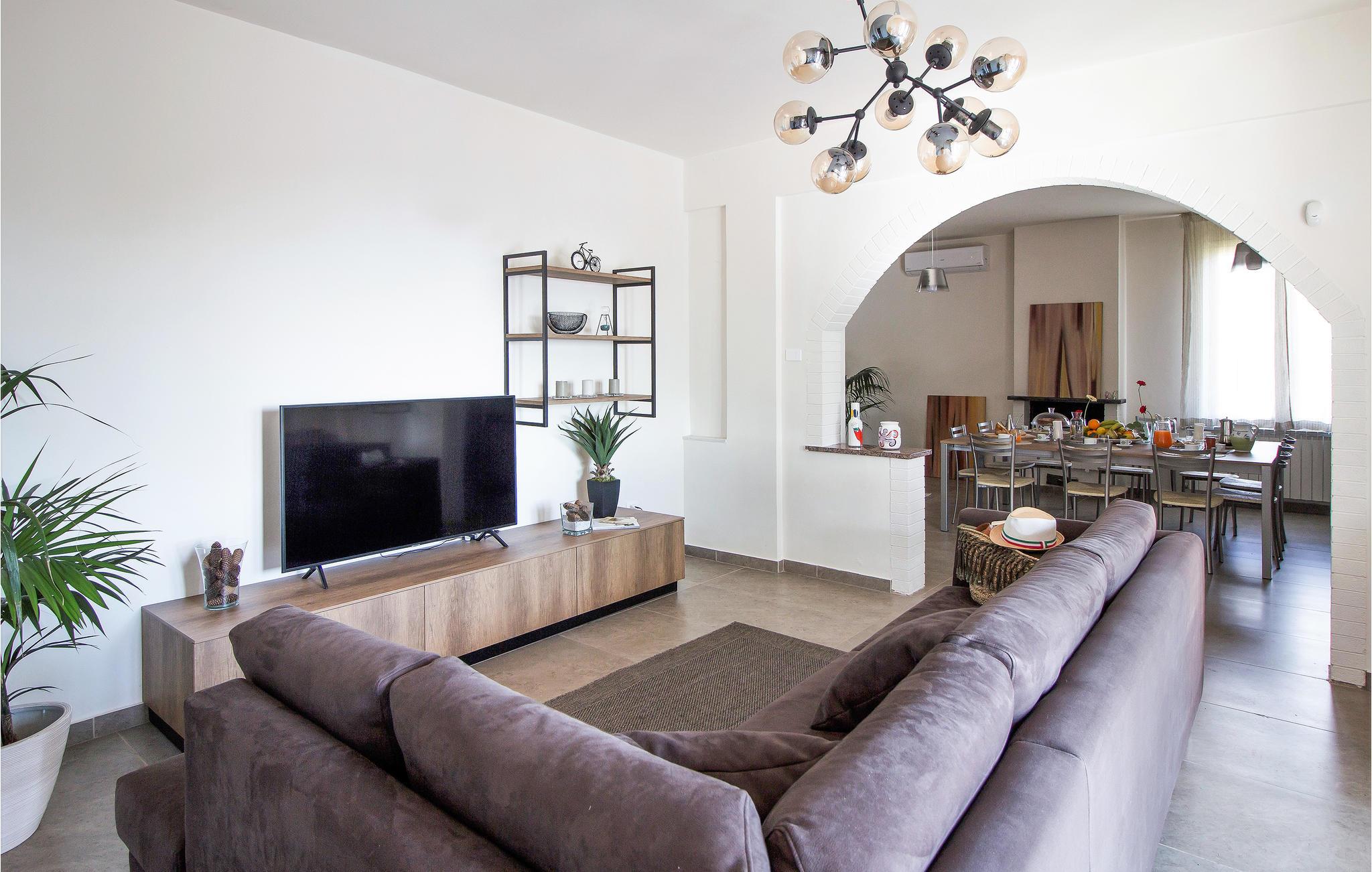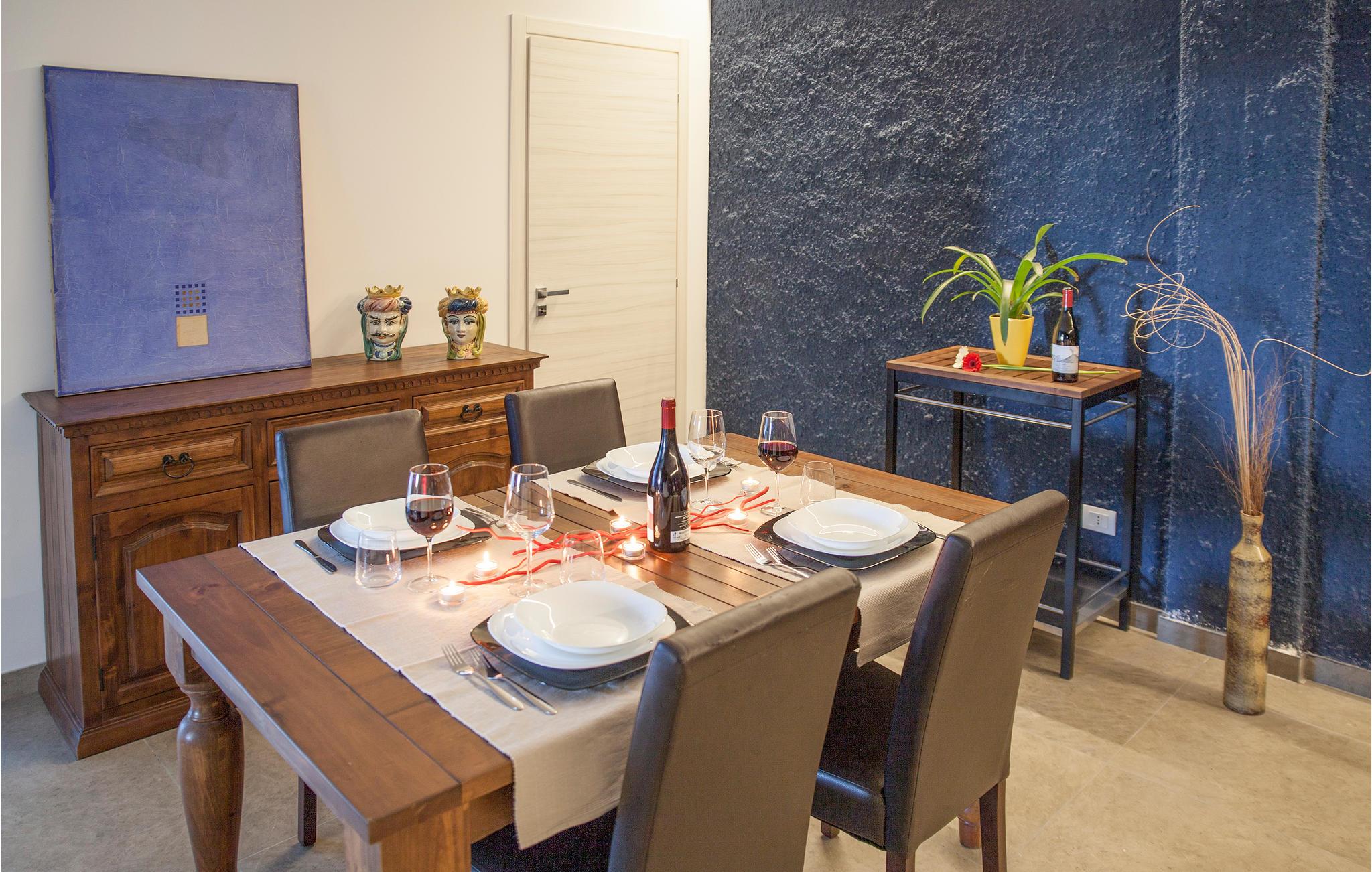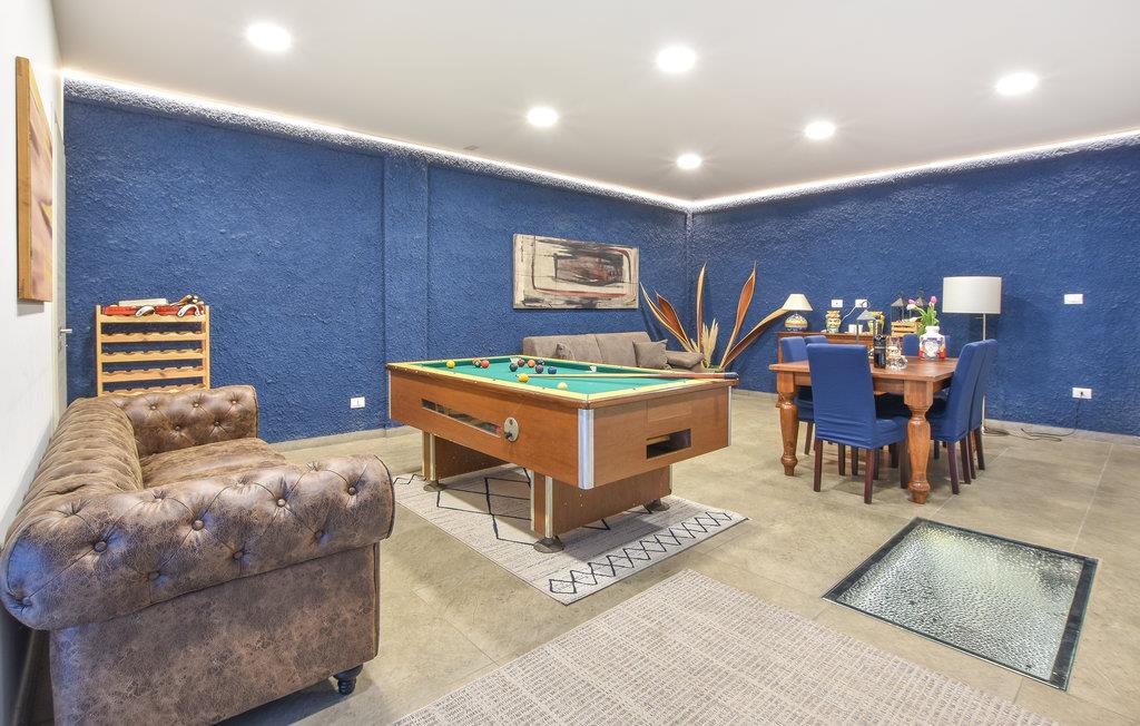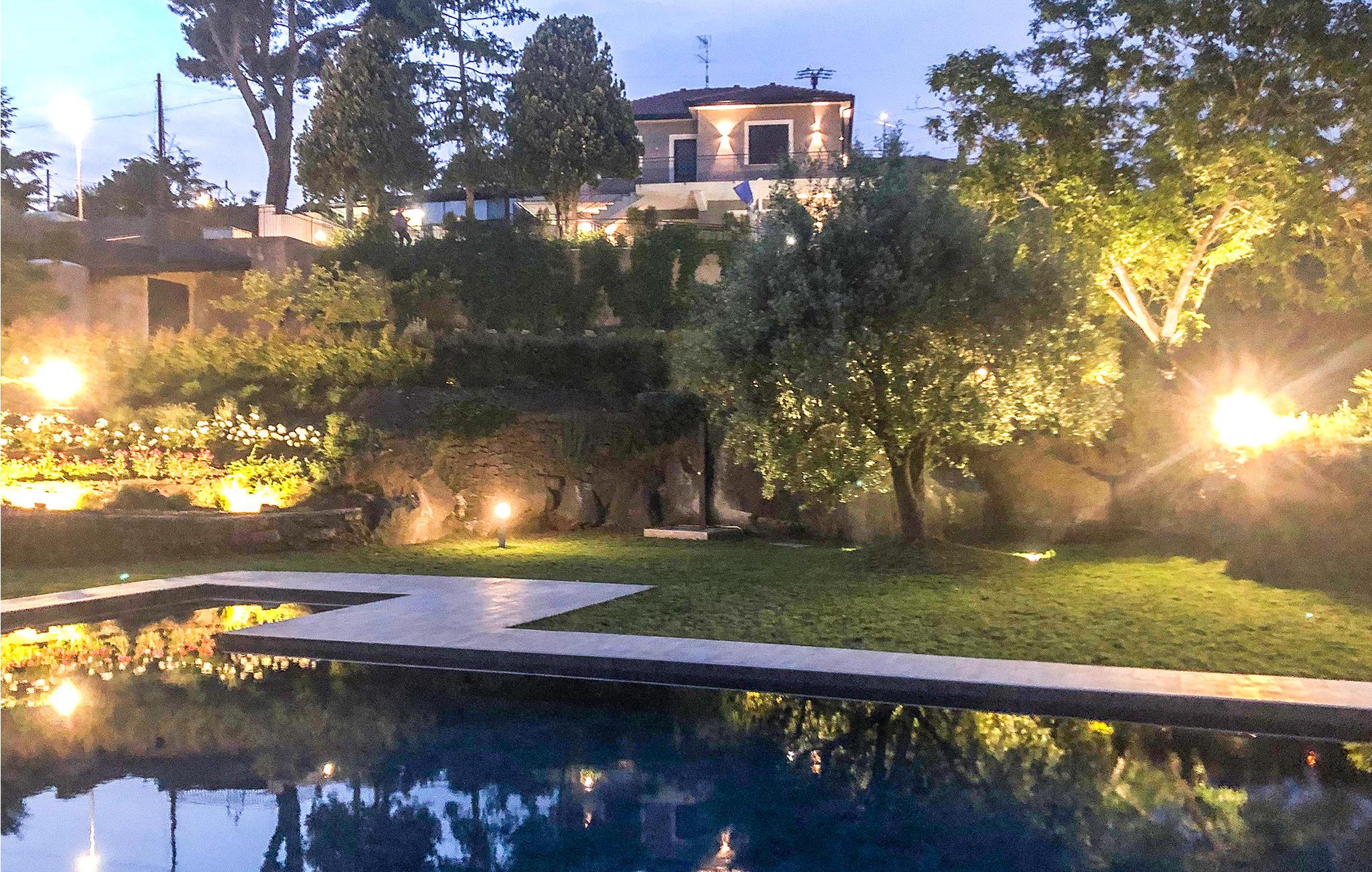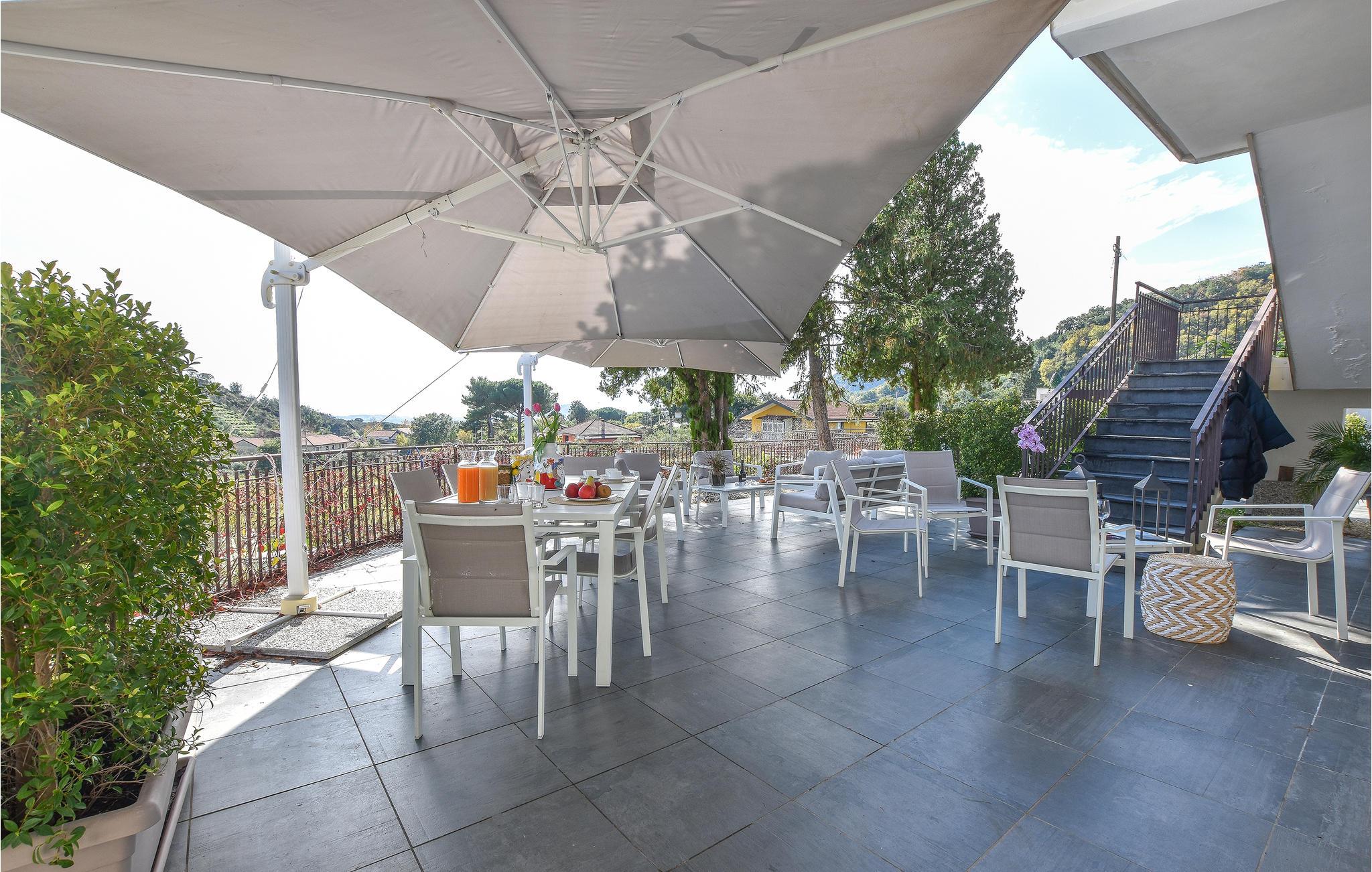 En førsteklasses ferie venter jer i dette feriehus for foden af ??Etna. Huset byder på flotte farver, møbler af høj kvalitet og ikke mindst masser af plads til afslapning og hygge. Det er på én og samme gang moderne og autentisk. Tilbring afslappede stunder i spise- og opholdsområdet og underhold jer med pool og dart i aktivitetsrummet.