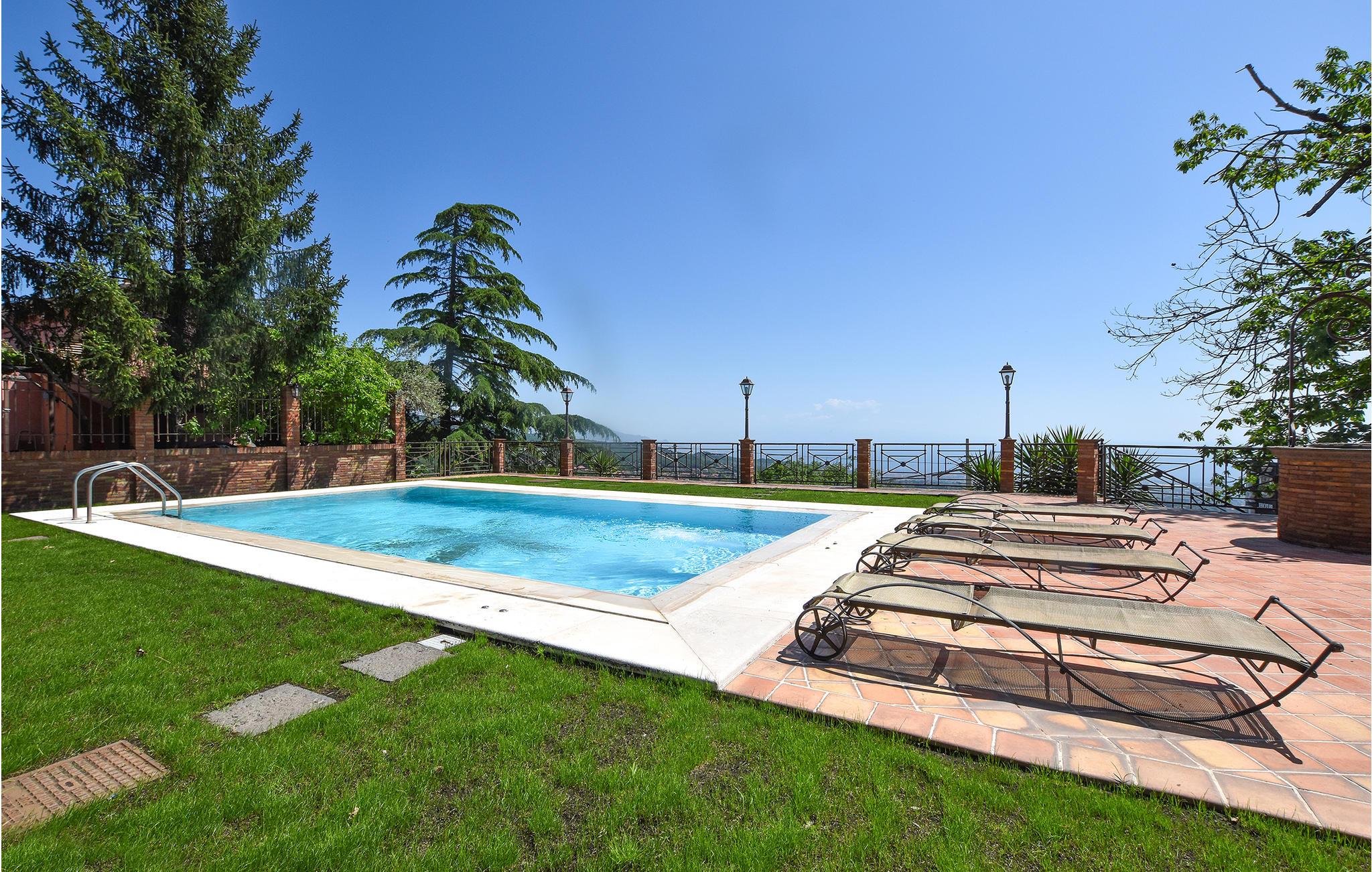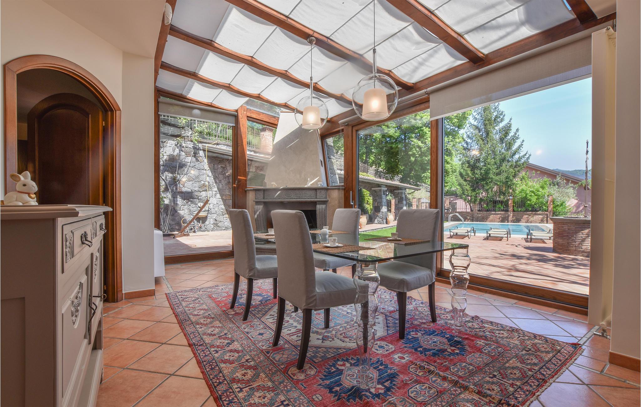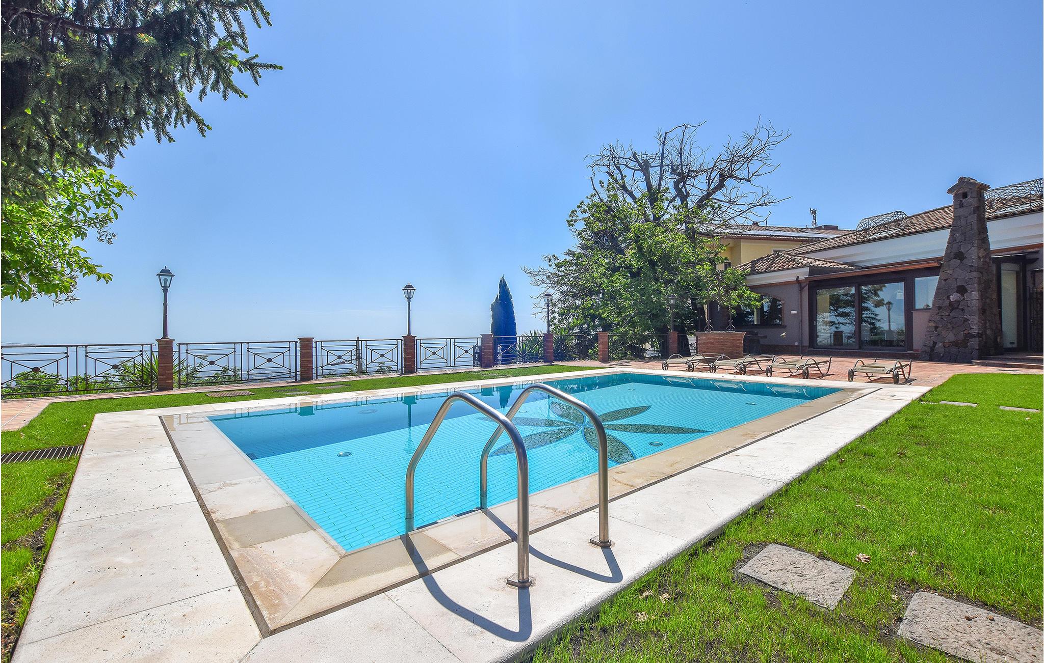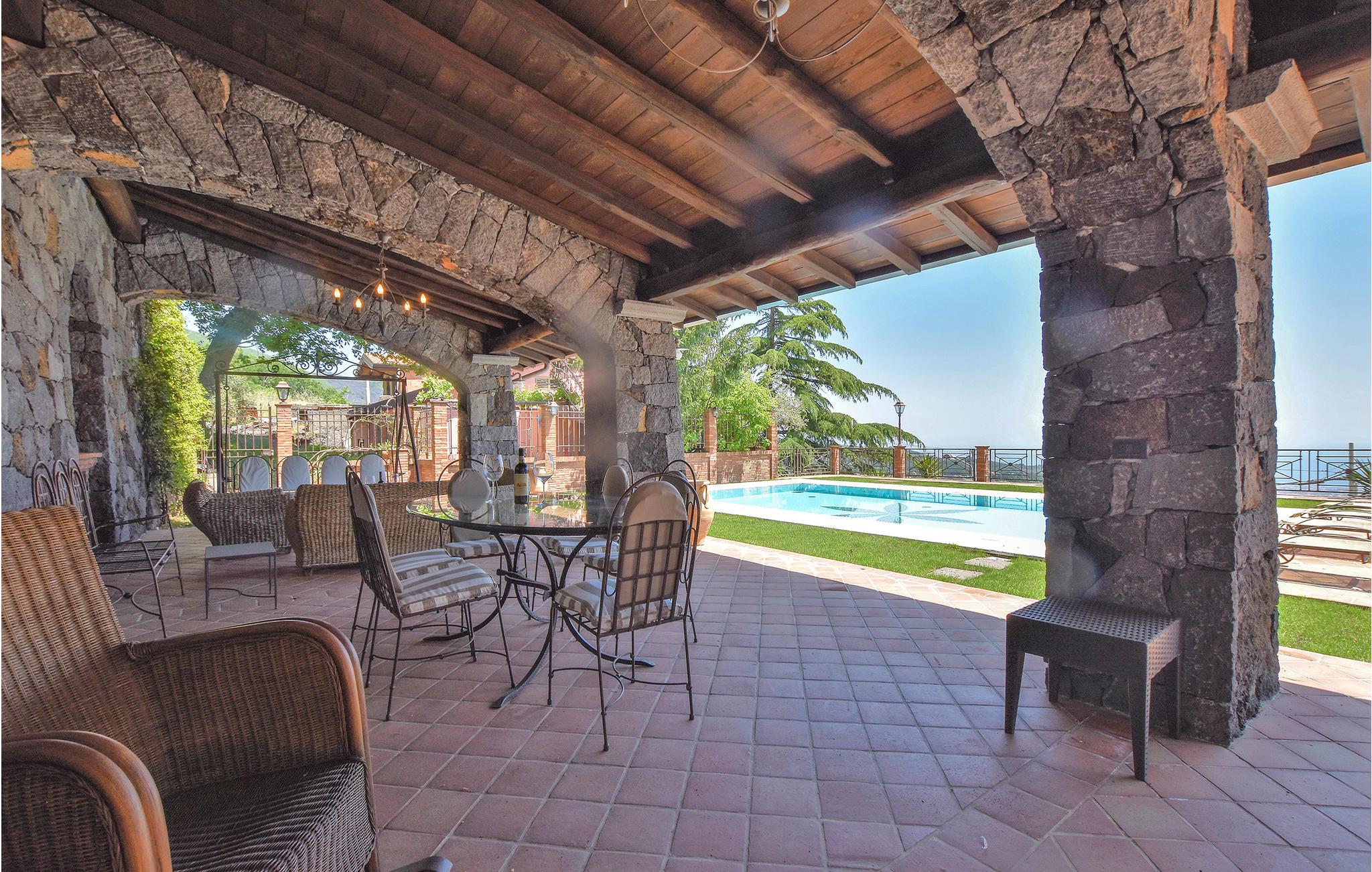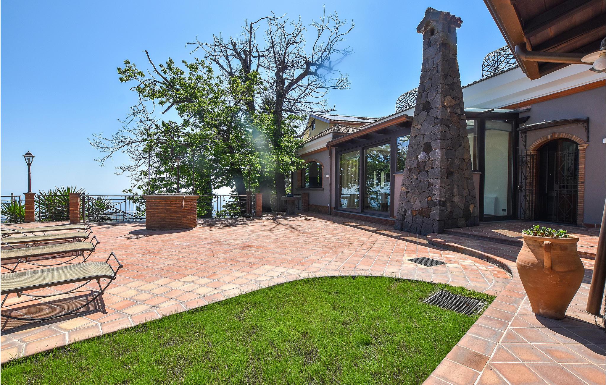 Mellem Etna og kysten, cirka 700 meter over havets overflade, venter dette fantastiske feriehus. Huset vil imponere her både inde og ude. Det strækker sig over flere etager og er ideelt til flere familier på grund af de mange soveværelser og badeværelser. Overalt finder I stilfuldt møblerede værelser at høj kvalitet, hvor I med det samme føler jer hjemme. Tilbring afslappende timer i det lyse sofahjørne og nyd hyggelige måltider ved spisebordet med udsigt over den smukke have. Fra haven har I en betagende panoramaudsigt over havet og kysten mellem Acireale og Taormina. Hop i poolen for en forfriskning og afslut dagen på terrassen med et glas vin og solnedgangen.