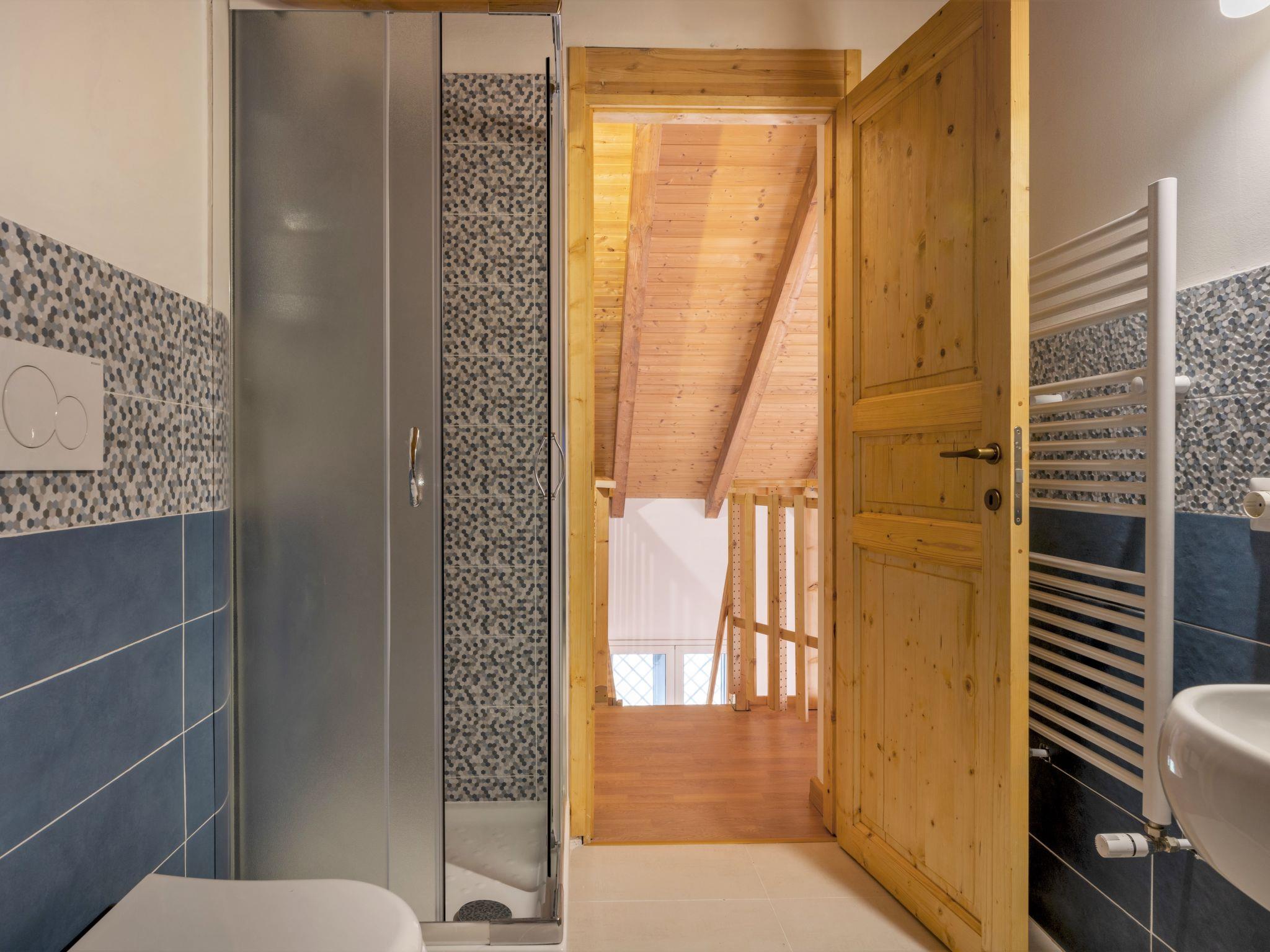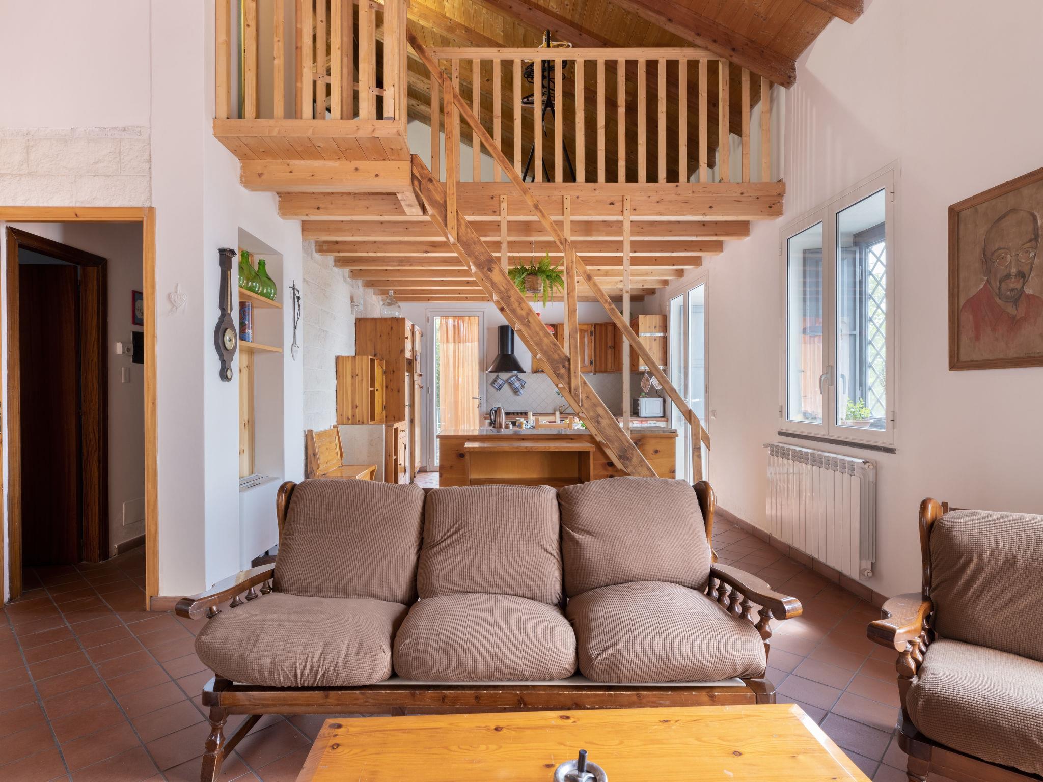 3-room chalet 110 m2 on 2 levels. Comfortable and rustic furnishings: large living/dining room with Scandinavian wood stove (only for decoration), TV (flat screen), forced-air heating. Exit to the terrace. 1 double bedroom with fan. Exit to the terrace. Kitchenette (3 hot plates, oven, toaster, kettle, microwave). Shower/bidet/WC. Heating, gas heating, forced-air heating. Upper floor: large gallery with sloping ceilings, ceiling height 60 - 250 cm with 2 beds, 1 double bed and fan. Shower/bidet/WC. Heating, gas heating, forced-air heating (extra). Heating available only from 15.11. to 31.03. Barbecue. Panoramic view of the sea, the mountains and the valley. Facilities: washing machine, iron, children's high chair, baby cot for up to 2 year olds (extra), hair dryer. Internet (WiFi, free). Parking (2 cars). Please note: maximum 1 pet/ dog allowed. Smoke alarm, fire extinguisher. IT087055C2ZZXQVAN3