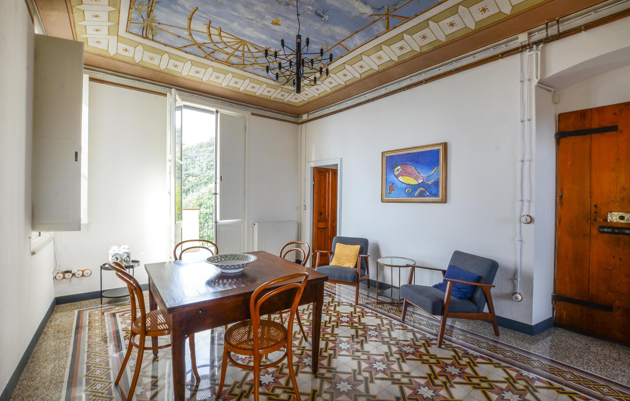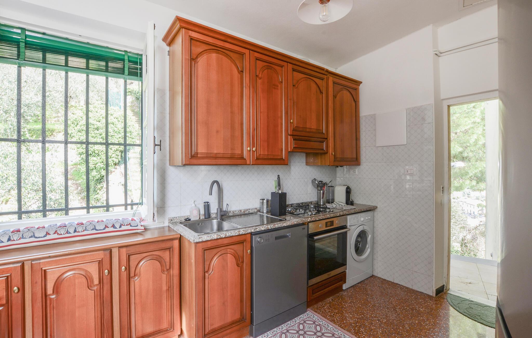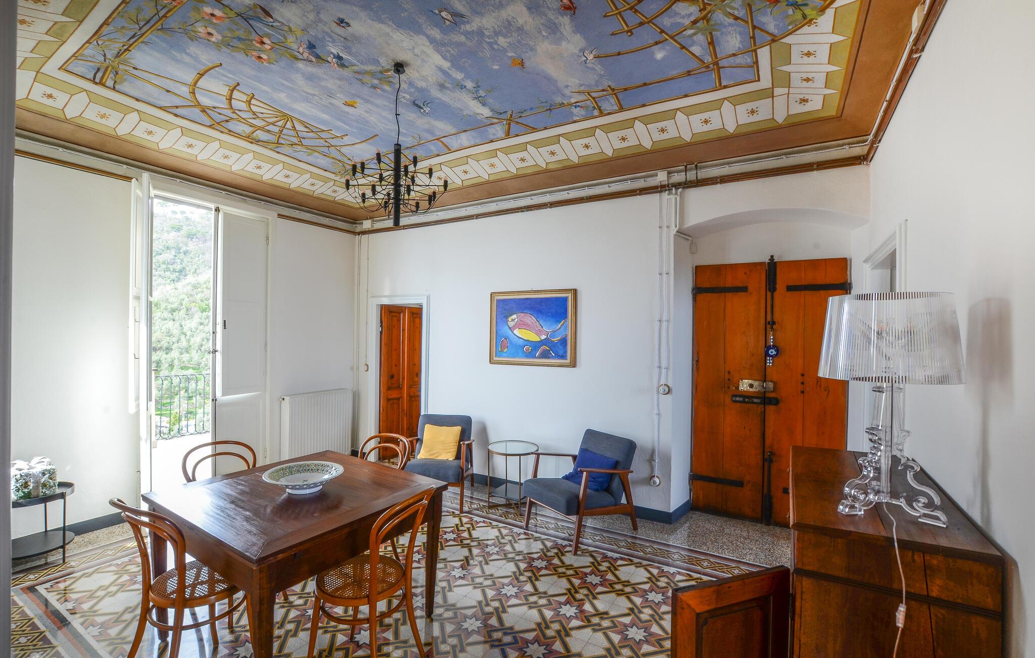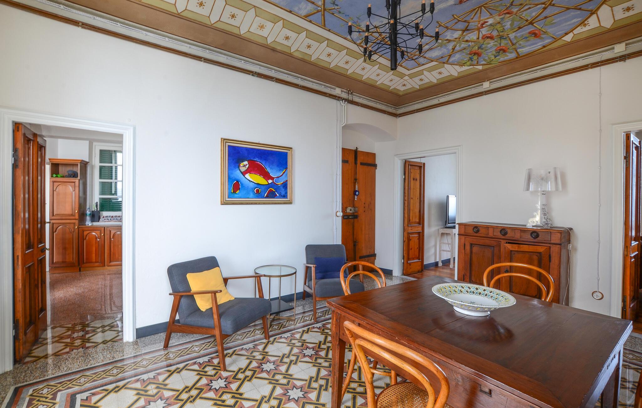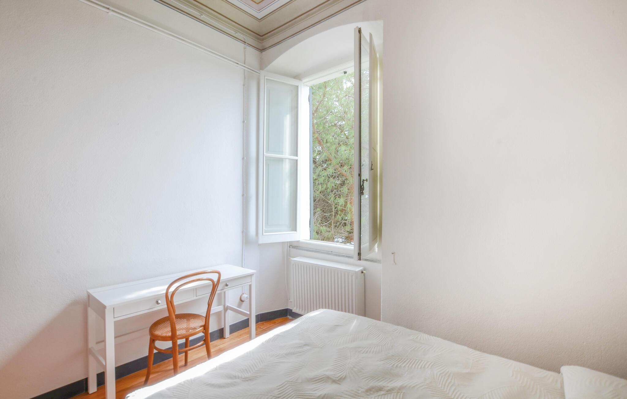 Tilbring en afslappende ferie i denne indbydende lejlighed, beliggende i et grønt og roligt område af Zoagli, i en gågade, der også fungerer som gangsti. De sparsomt og smagfuldt møblerede værelser og malede lofter skaber den ideelle atmosfære for et uforglemmeligt ophold nær havet. Brug lejligheden som base for dejlige dage på stranden og spændende udflugter, og del jeres oplevelser over en hyggelig middag sammen ved det lange spisebord.