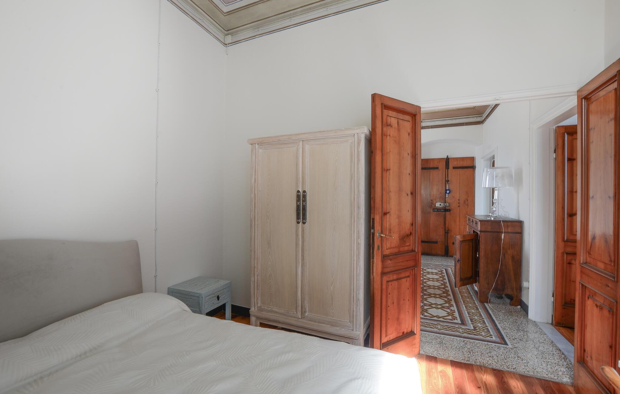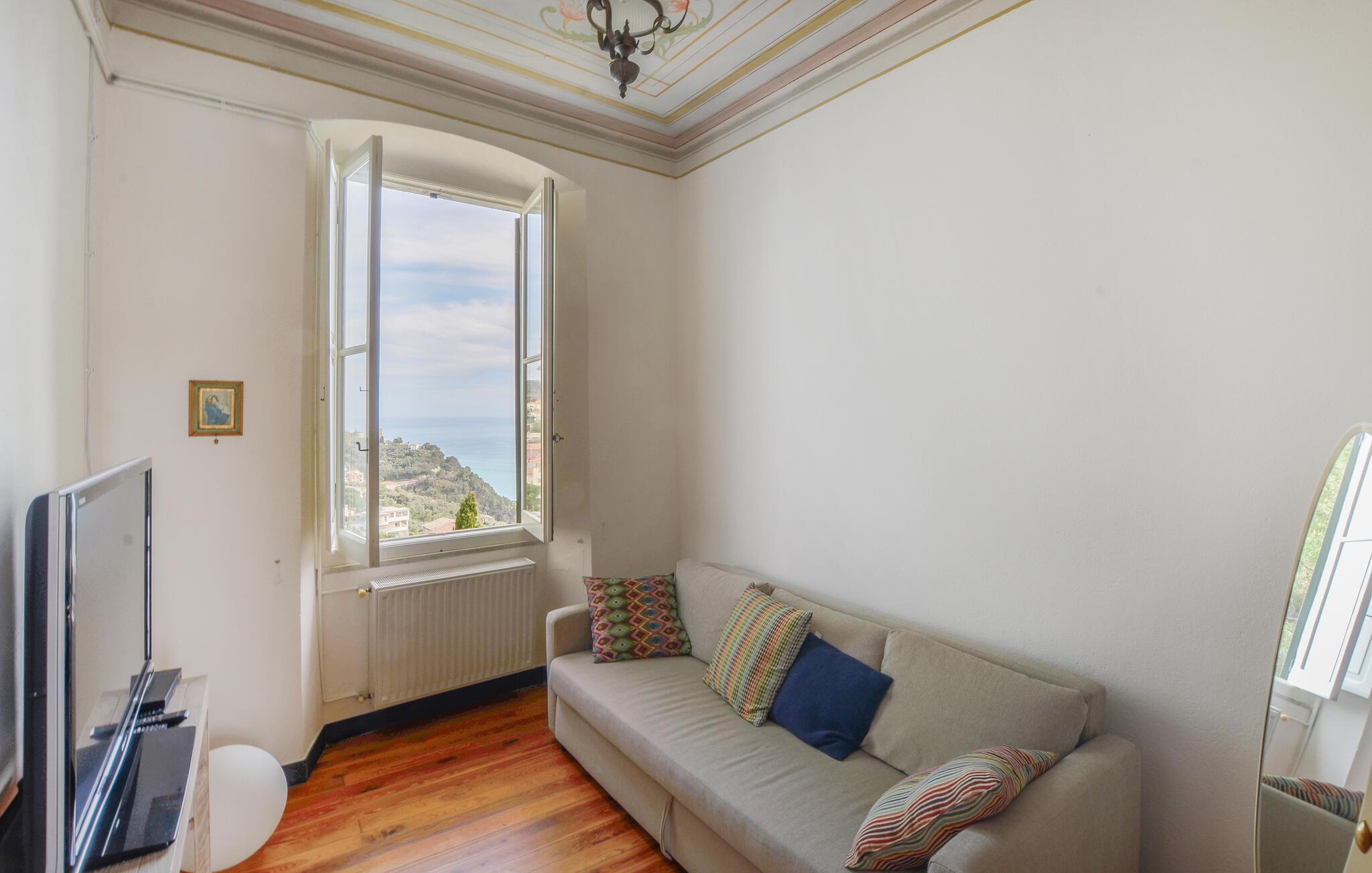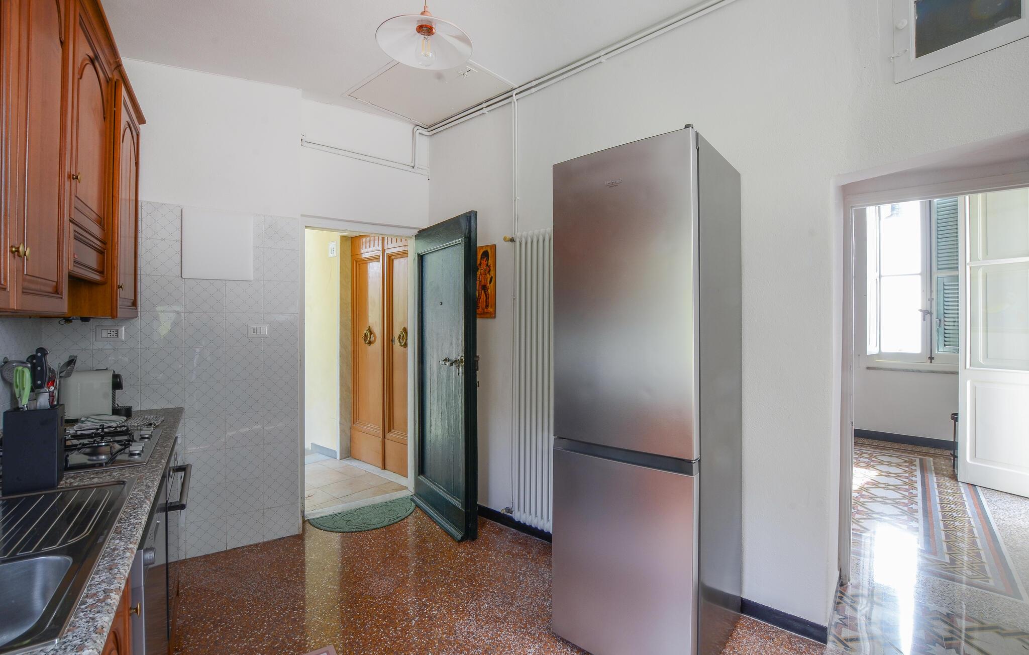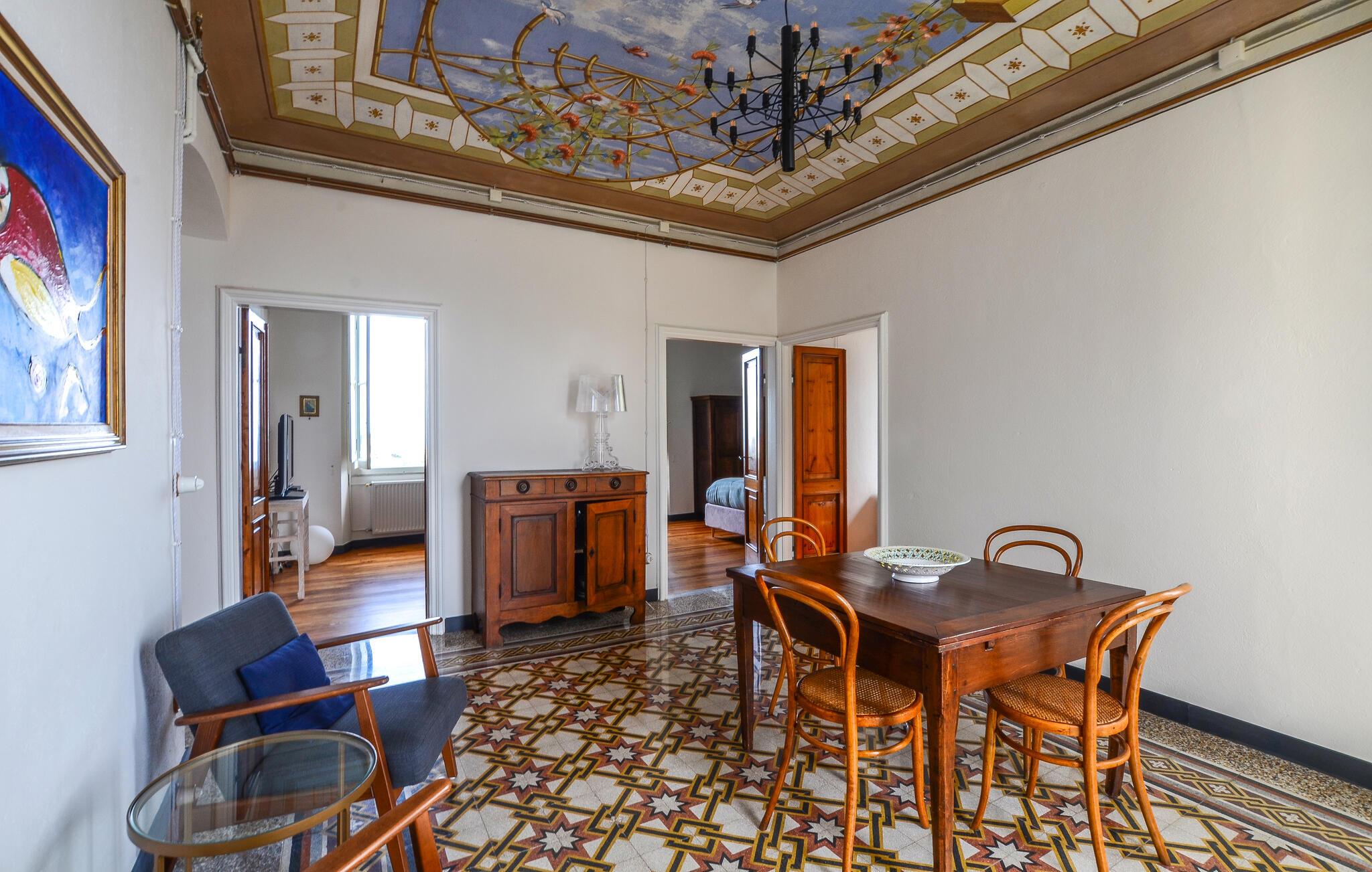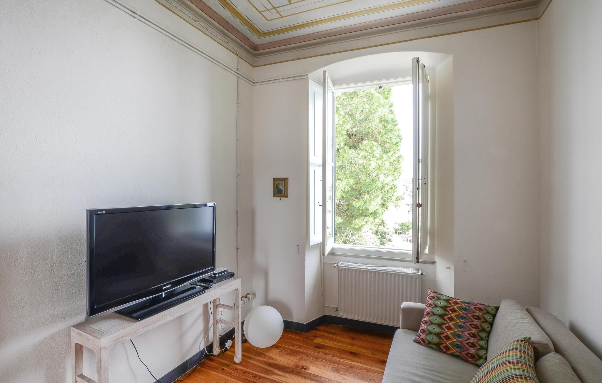 Tilbring en afslappende ferie i denne indbydende lejlighed, beliggende i et grønt og roligt område af Zoagli, i en gågade, der også fungerer som gangsti. De sparsomt og smagfuldt møblerede værelser og malede lofter skaber den ideelle atmosfære for et uforglemmeligt ophold nær havet. Brug lejligheden som base for dejlige dage på stranden og spændende udflugter, og del jeres oplevelser over en hyggelig middag sammen ved det lange spisebord.
