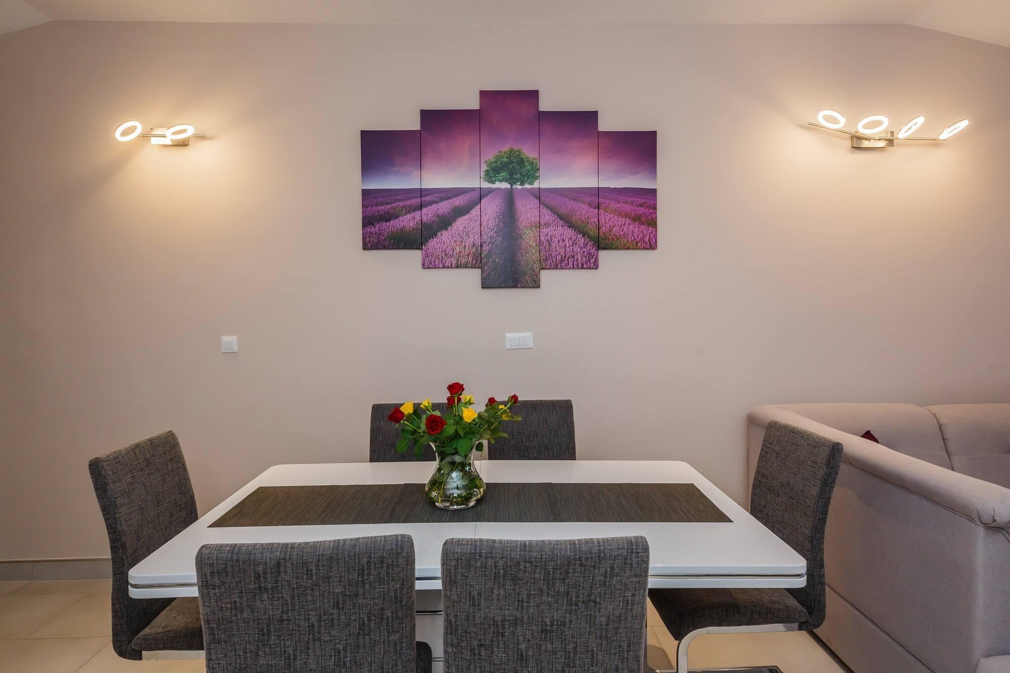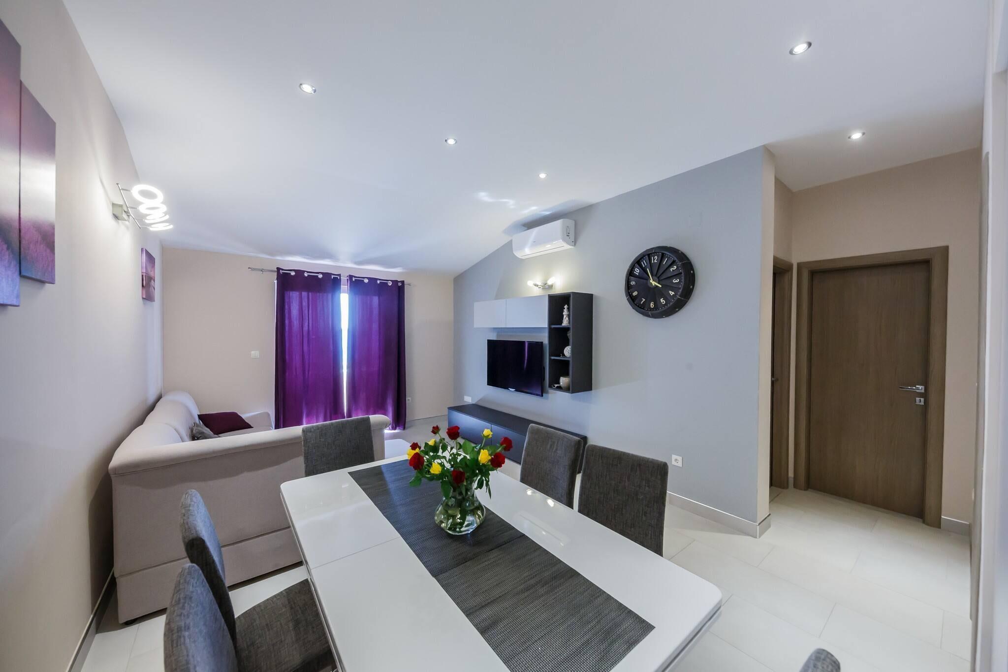 Denne charmerende to-værelses lejlighed i Šibenik-Brodarica tilbyder et hyggeligt og behageligt ophold for familier eller par. Med 59 kvm plads kan den rumme op til fire gæster, med en queen-size seng i det ene soveværelse, to enkeltsenge i det andet og en sovesofa for ekstra komfort. Lejligheden har også et enkelt badeværelse med bruser, aircondition, Wi-Fi og satellit-tv for din bekvemmelighed. Gæsterne kan slappe af på den private balkon eller terrasse og nyde den smukke havudsigt. Der er også en privat parkeringsplads, hvilket tilføjer lejlighedens tiltrækningskraft. Lejligheden er perfekt beliggende, kun 15 meter fra både sand- og klippestrande, hvilket gør det nemt at nyde Adriaterhavskysten. Væsentlige faciliteter såsom et supermarked, restauranter og en café ligger inden for gåafstand. For dem, der søger eventyr, tilbyder den nærliggende Aquapark Dalmatia og Krka National Park masser af udforskningsmuligheder. Den historiske gamle bydel i Šibenik ligger kun 7 km væk, og Split Lufthavn ligger cirka 50 km fra ejendommen, hvilket gør den let tilgængelig. Det fuldt udstyrede køkken i lejligheden sikrer, at du nemt kan tilberede måltider, med apparater såsom køleskab, ovn, opvaskemaskine, mikroovn og vaskemaskine (tilgængelig efter anmodning). Ejendommen er også udstyret med fælles udendørsområder, herunder en have og grillfaciliteter, der er ideelle til udendørs spisning. Bemærk venligst, at kæledyr ikke er tilladt, og rygning er kun tilladt udenfor for at opretholde et fredeligt miljø.