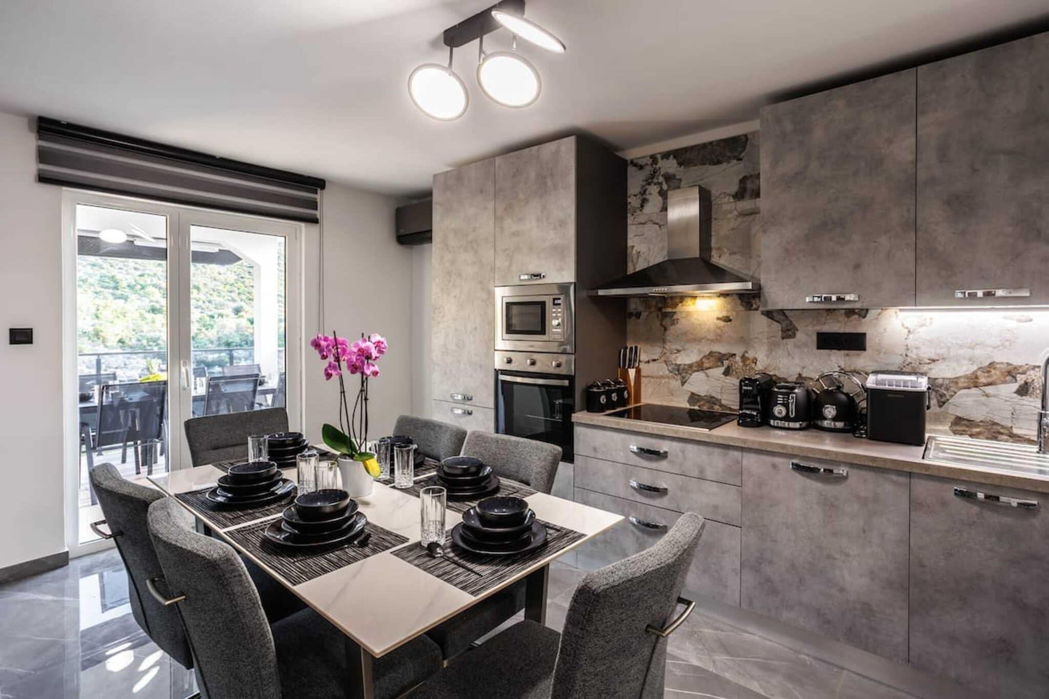 Lige i hjertet af en fredelig kystbugt i Rogoznica ligger Villa Marivi, den slags sted, hvor børnene løber barfodet fra poolen til havet, forældrene endelig sætter farten ned, og hver dag udfolder sig uden en tidsplan. Med stranden bogstaveligt talt på den anden side af stien og plads til hele familien at sprede sig ud, er denne villa bygget til nemme og glædelige ferier. Dette enorme hjem har plads til op til 9 gæster i fem komfortable soveværelser – 4 dobbeltsenge og en enkeltseng, hvilket giver familier masser af plads og fleksibilitet, fire fuldt udstyrede badeværelser, et fuldt udstyret køkken med spiseplads – gør familiens måltider ubesværede, uanset om det er hurtig morgenmad før stranden eller lange, afslappede middage sammen. Udenfor bliver den private swimmingpool familiens centrum i dagtimerne med liggestole til forældrene og endeløs plasketid til børnene. Lige længere væk ligger stenstranden kun få skridt væk – perfekt til morgensvømning, rolige padleture eller muslingejagt ved solnedgang. Terrassen med elektriske markiser skaber skyggefulde hjørner til eftermiddagssnacks, historietid eller stille kaffestunder, mens børnene leger i nærheden. Familievenlige detaljer som tv'er, hurtig Wi-Fi, vaskeri, højstol, babyseng og aircondition sikrer komfort uden kompromis. Med dagsture til Šibenik eller Split inden for rækkevidde tilbyder Villa Marivi den perfekte blanding af eventyr, sikkerhed og rolig familieliv ved havet. Her føles ferien ubesværet, børnene falder i søvn glade og glade, og forældrene kan endelig slappe af.