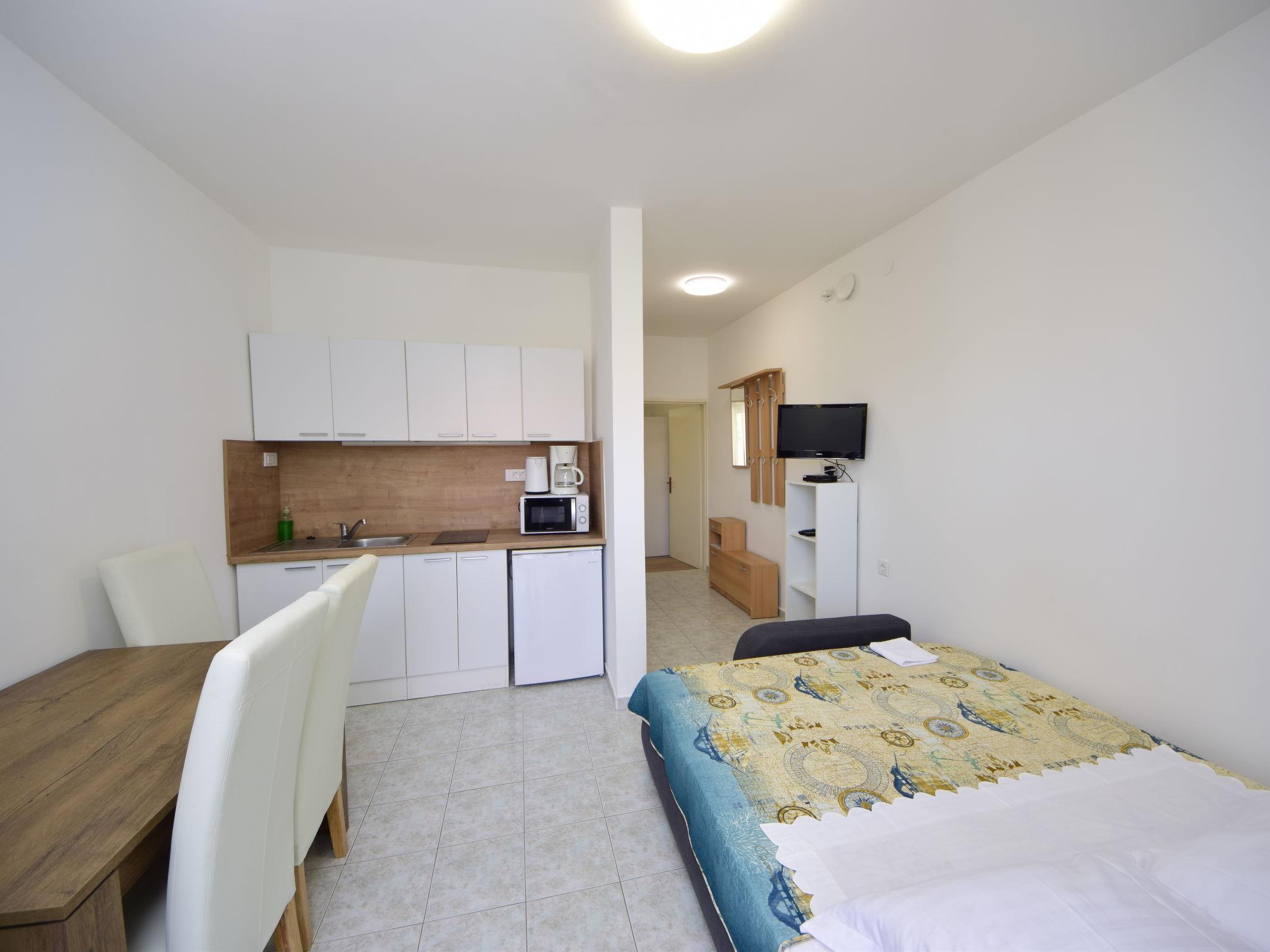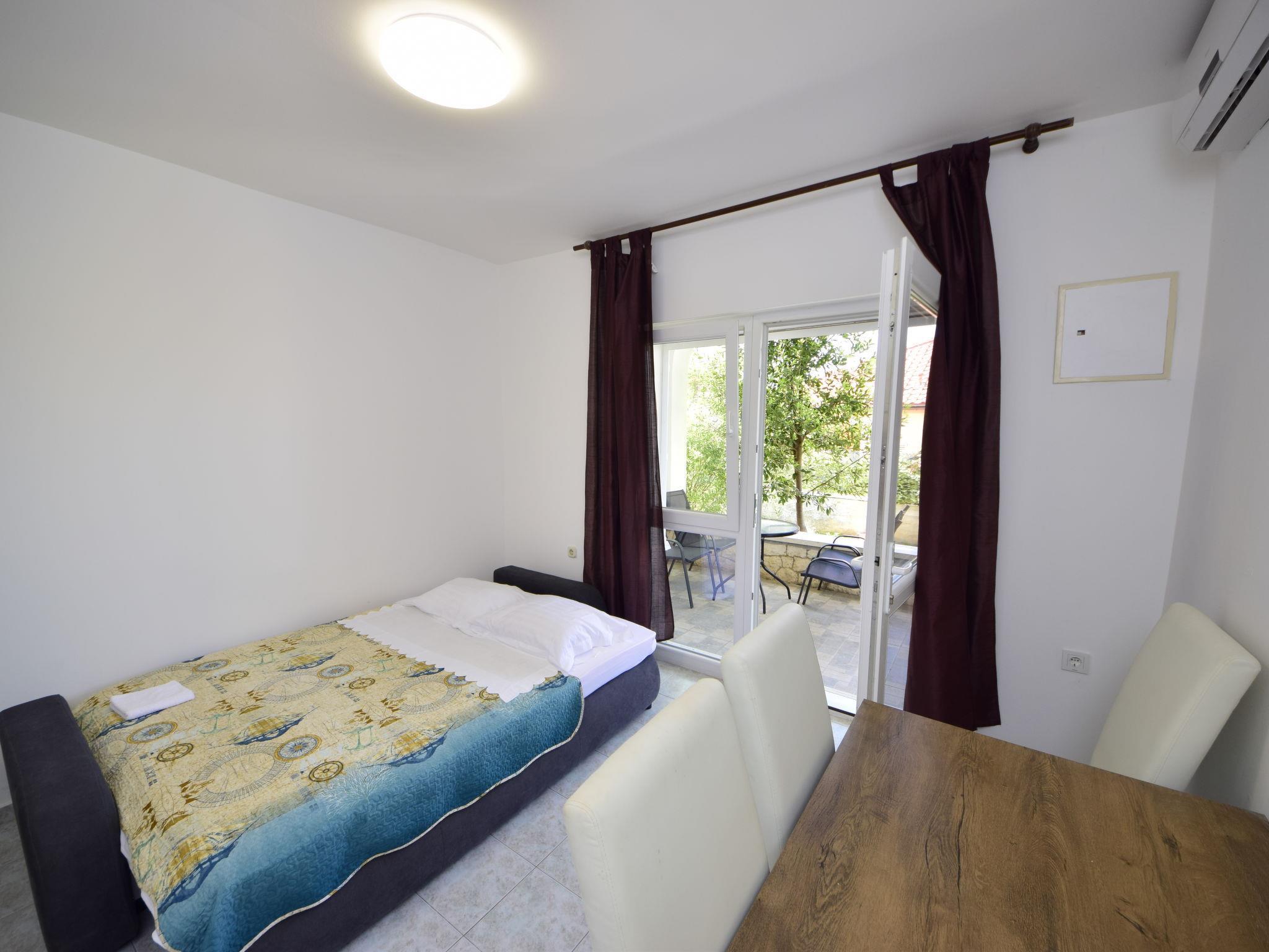 "Katarina 3", 2-room apartment 40 m2, on the upper ground floor. Living/dining room with 1 double sofabed (150 cm, length 200 cm), satellite TV (flat screen), air conditioning. Exit to the terrace. 1 room with 1 french bed (180 cm, length 200 cm). Open kitchen (2 ceramic glass hob hotplates, toaster, kettle, microwave, electric coffee machine). Shower/WC. No heating option. Terrace roofed. Terrace furniture. Facilities: Internet (WiFi, free). Parking (1 car). Please note: private entrance.