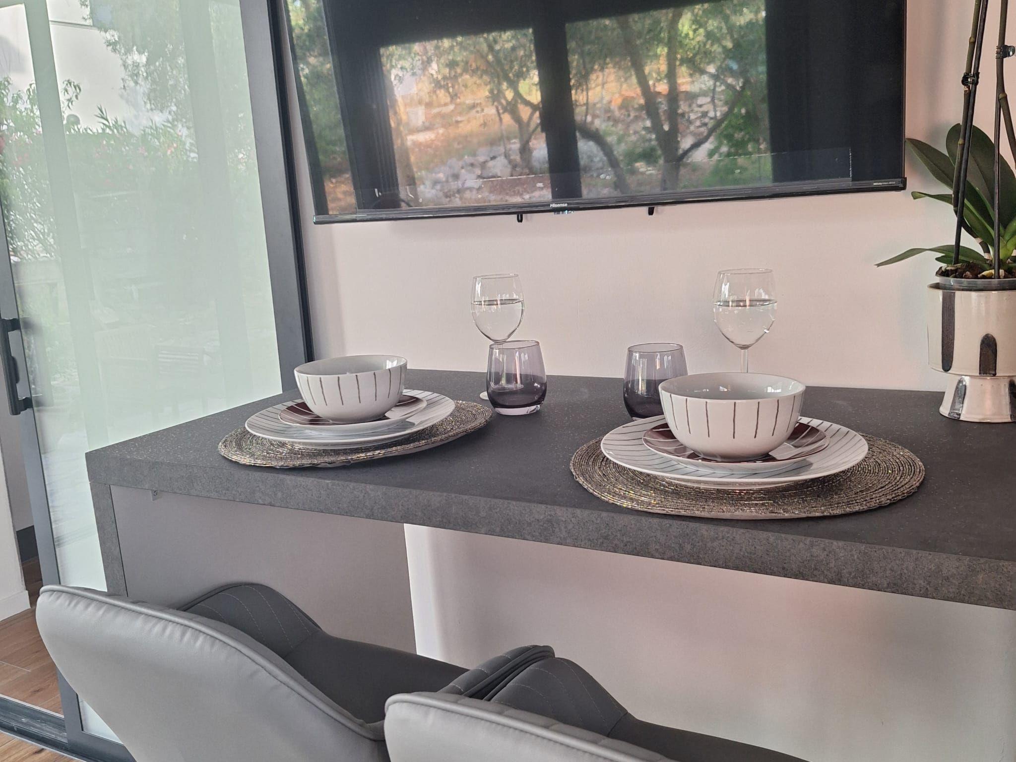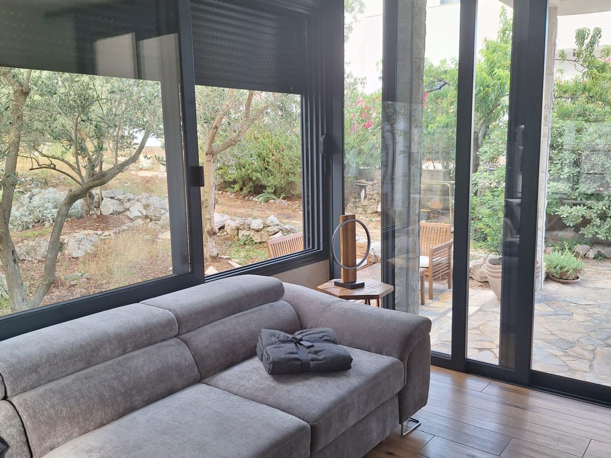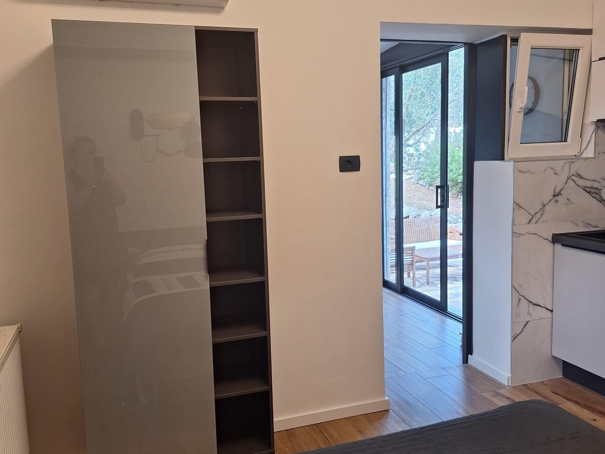 Step outside onto the furnished terrace, a peaceful haven where you can unwind with your morning coffee or enjoy an evening glass of wine, enveloped by the subtle sounds of the nearby sea. The terrace opens up to a lovely garden, offering a serene spot to bask in the beauty of your surroundings and the balmy outdoor air.