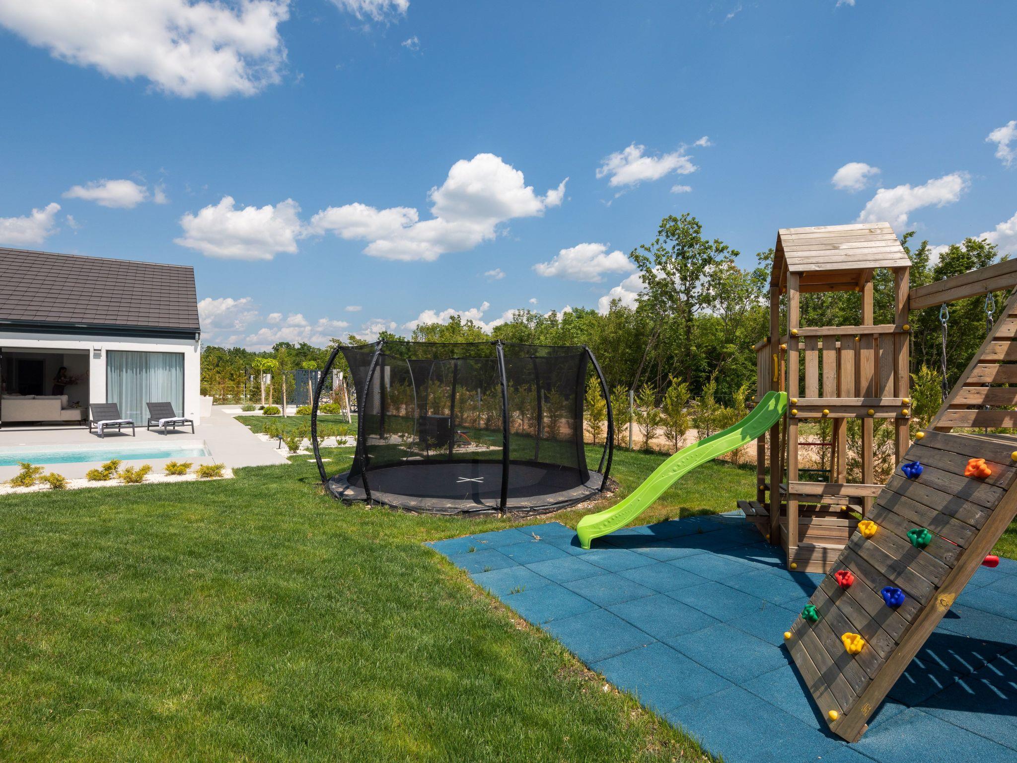 After a good swim in the heated pool, you can tan on the sun loungers right by or, maybe, enjoy a good book on the garden furniture. If you'll still need a bit of activity, there is gym equipment available in the house next to the villa, just like the bicycles for group rides. While you are doing your workout, your small ones can play on the playground or jump on the trampoline. The pool is not the only relaxation part of this beauty, there are a sauna and relaxation room there too, which are used with the guests from the sister house villa Lu. A magical holiday worth all the praise.