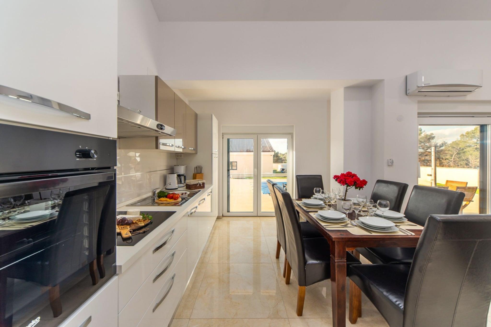 Villa Shaula 2 is a modern holiday retreat located in the tranquil village just a few kilometers from Šibenik in Croatia's Šibenik-Knin County. Built in 2020, this Mediterranean-style villa offers a peaceful setting ideal for families or small groups seeking relaxation and privacy. Note: Private parking is available, and a reservation is not required. Baggage drop-off is available before check-in. Wi-Fi is available throughout the property. Pets are not allowed. A Baby cot is available on request. This three-bedroom can accommodate up to six guests. It features an SAT/flat-screen TV and is combined with a living room seating area and kitchen. The private bathroom is equipped with a shower and toilet. Thanks to its excellent location, everything you'll need for your vacation is just a short walk from the property. Grocery stores, cafes, restaurants—everything is within a 2.00 km radius. The beach is 6.00 km away from the property. The airport is 57 km away from the property.