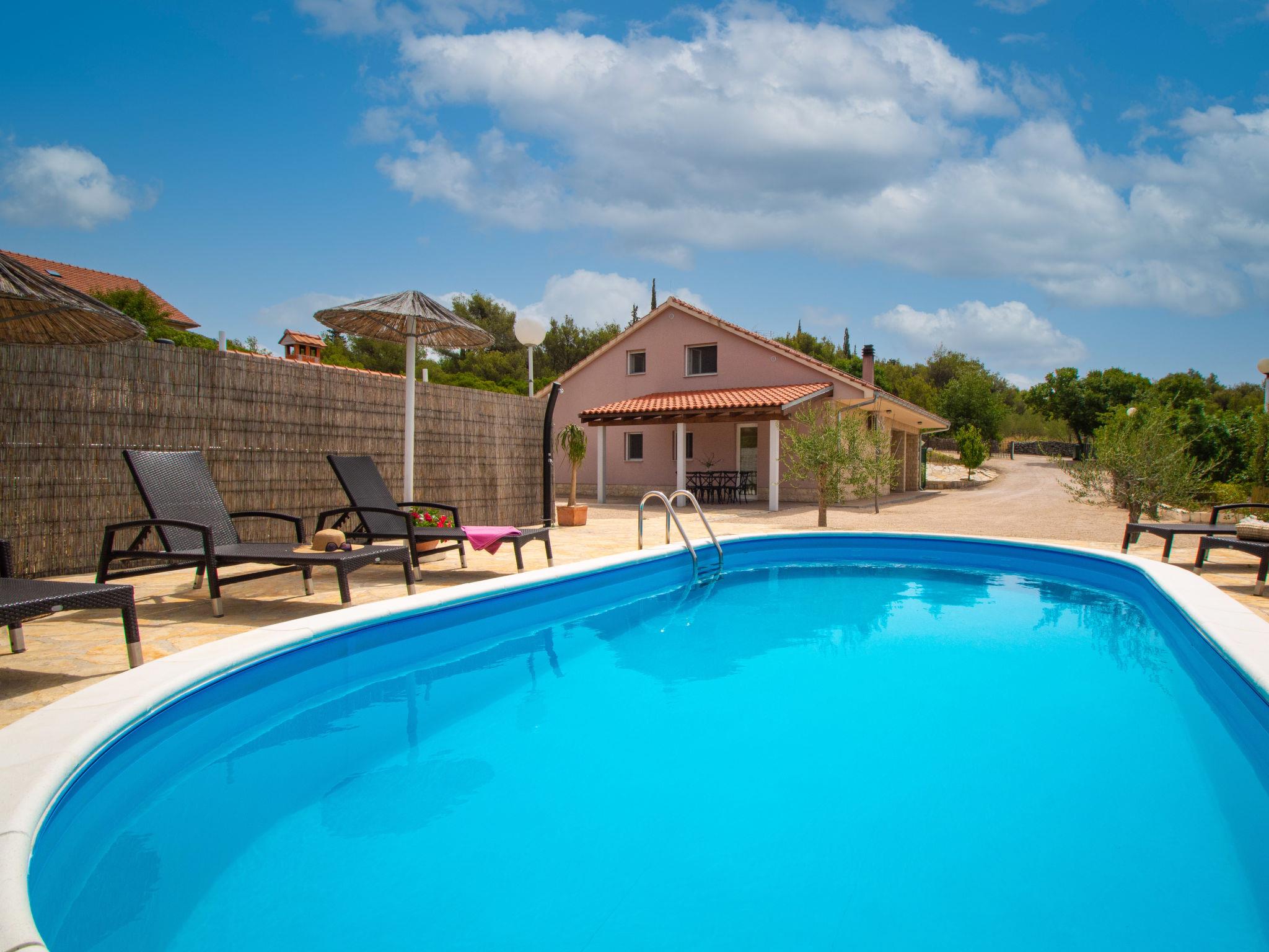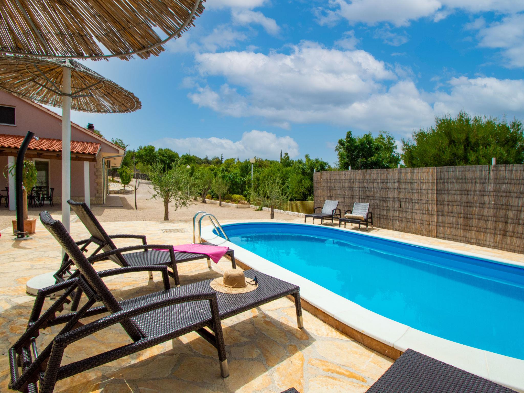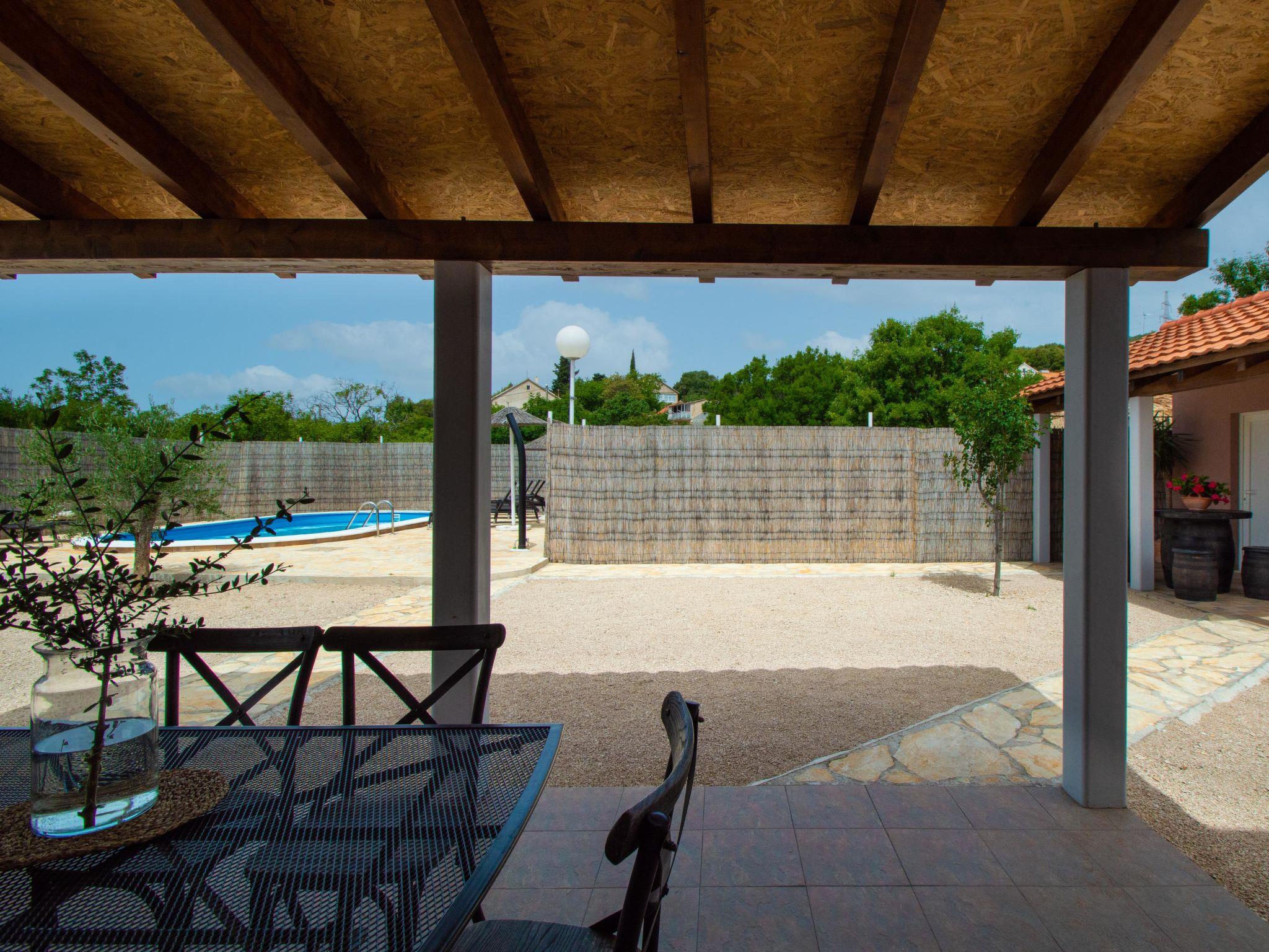 Dubrava: Beautiful single-family house "Nina". 8 km from the centre of Šibenik, in a sunny position, 8 km from the sea. Private: property 1'100 m2 (fenced), swimming pool (26 m2, depth 150 cm, seasonal availability: 01.Jun. - 01.Oct.). Outdoor shower, pool house with shower and WC, barbecue. In the house: internet access, washing machine. Parking (for 3 cars) at the house on the premises. Shop 2 km, restaurant 8 km, bus stop 190 m, pebble beach 10 km. Nearby attractions: NP Krka 12 km. Please note: suitable for families. Groups of teenagers on request only. Airfield 45 km from the property.