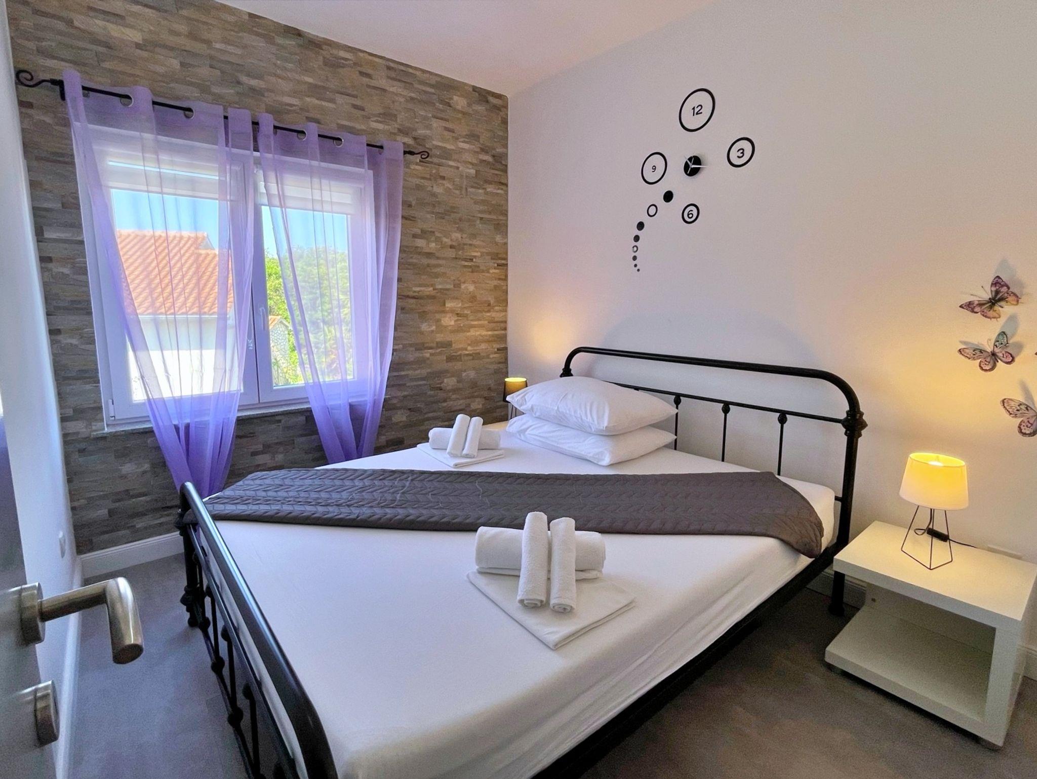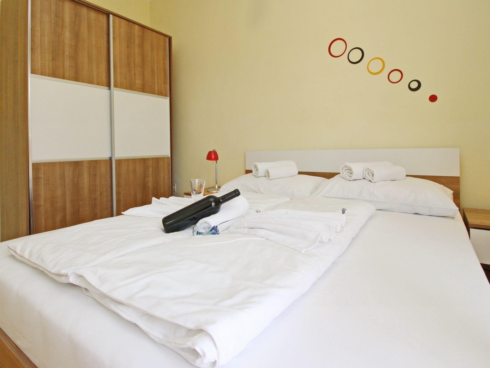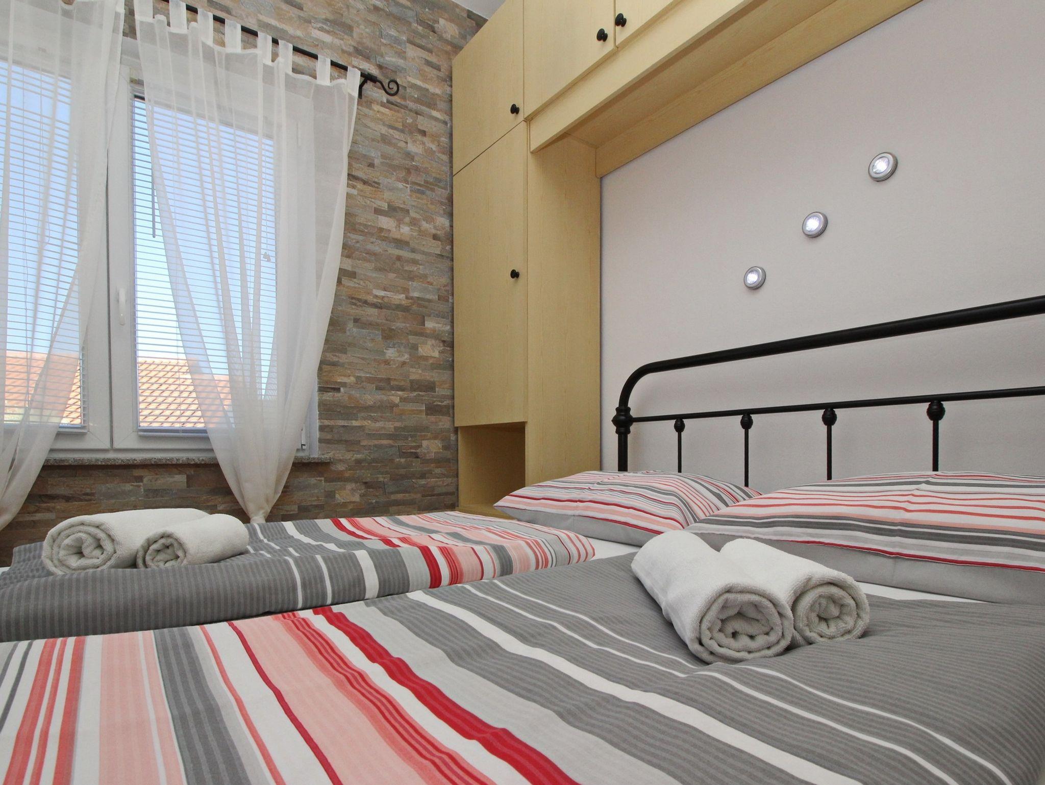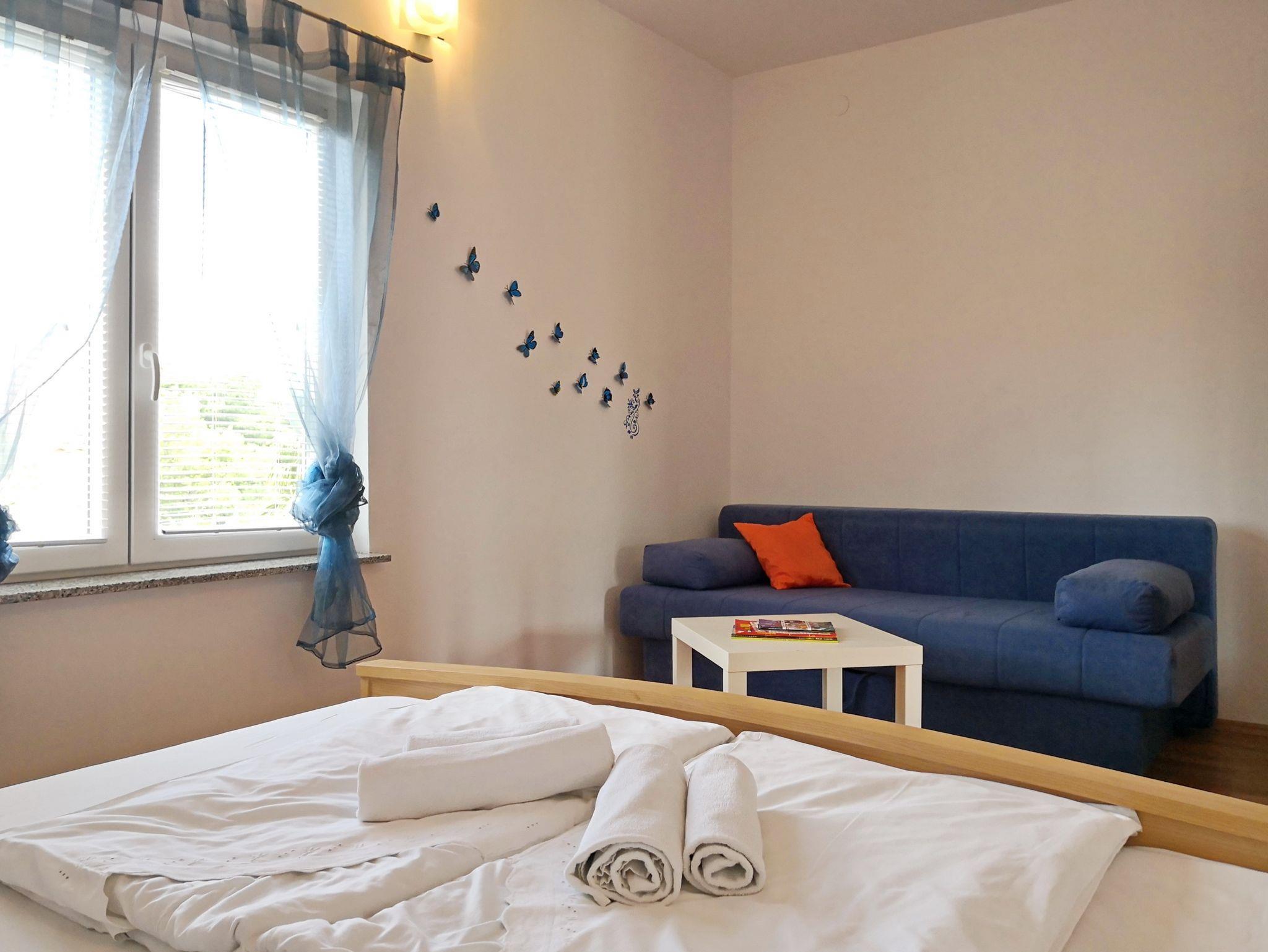 Ferienwohnung bietet Platz für 6 Gäste. Die Betten sind in Schlafzimmern, die es 3 gibt, innerhalb einer Gesamtfläche von 82m2, angeordnet. Die Gäste haben eine eigene Terrasse zur Verfügung, auf der sie in warmen Sommernächten genießen können. Das Apartment bietet Meerblick. Es ist erlaubt, Speisen auf dem Gemeinschafts-Grill vorzubereiten. In der Unterkunftseinheit besteht die Möglichkeit des Mitbringens von Haustieren, und die Dienstleistung ist im Preis der Unterkunft enthalten. IM PREIS INBEGRIFFEN: Kurtaxe, Endreinigung, Klimatisierung, Parkplatz, Internet, Haustiere, Kinderbett. Die Verfügbarkeit zusätzlicher Dienstleistungen in Ihrem reservierten Termin und die Preise derselben (falls nicht aufgeführt) müssen im Voraus überprüft werden. Zusätzliche Dienstleistungen die in der Zahlungsaufforderung nicht aufgeführt sind werden direkt beim Vermieter bezahlt, angenommen der Gast nutzt auch diese.