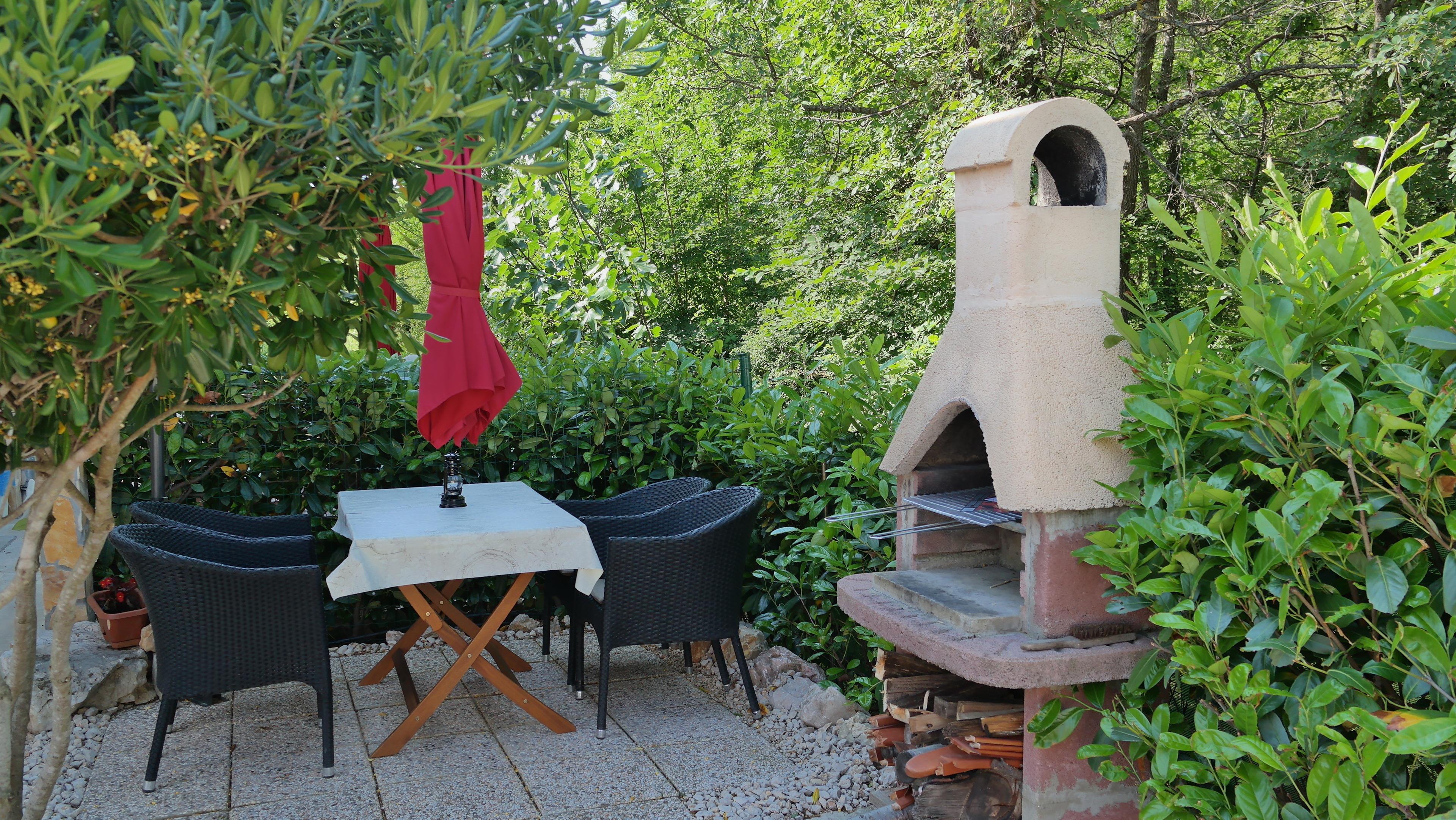 Es gibt auch einen kleinen Balkon vor der Wohnung. Im Erdgeschoss können Sie den Grill und den Garten nutzen.