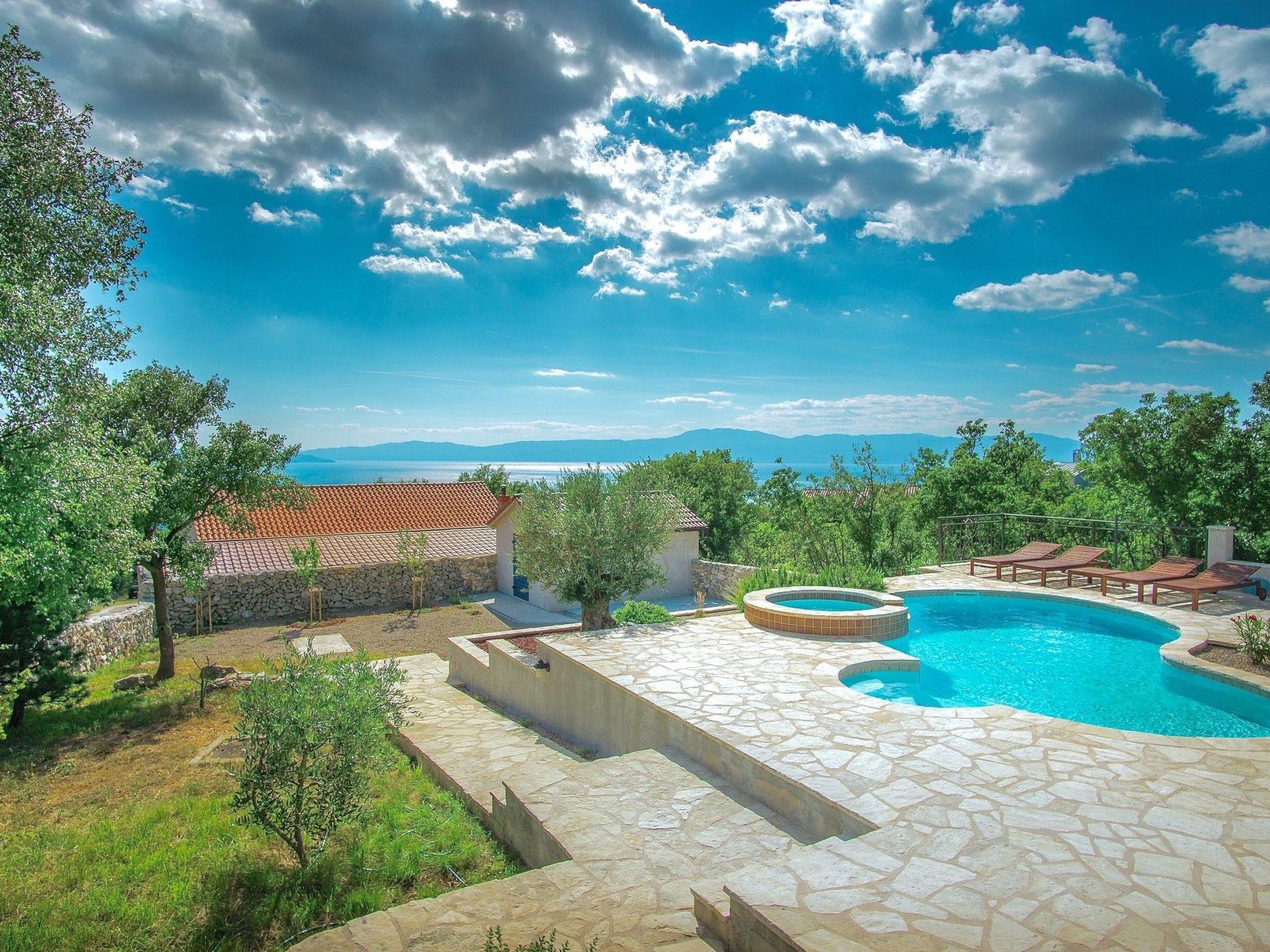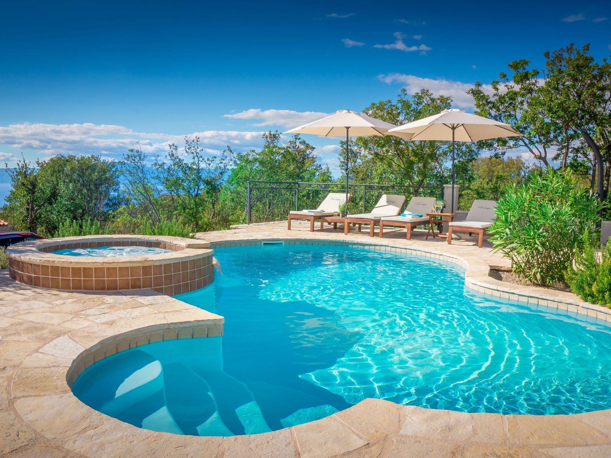 Fully detached luxury holiday villa with panoramic sea views across the Kvarner bay from the private illuminated swimming pool complete with children's pool