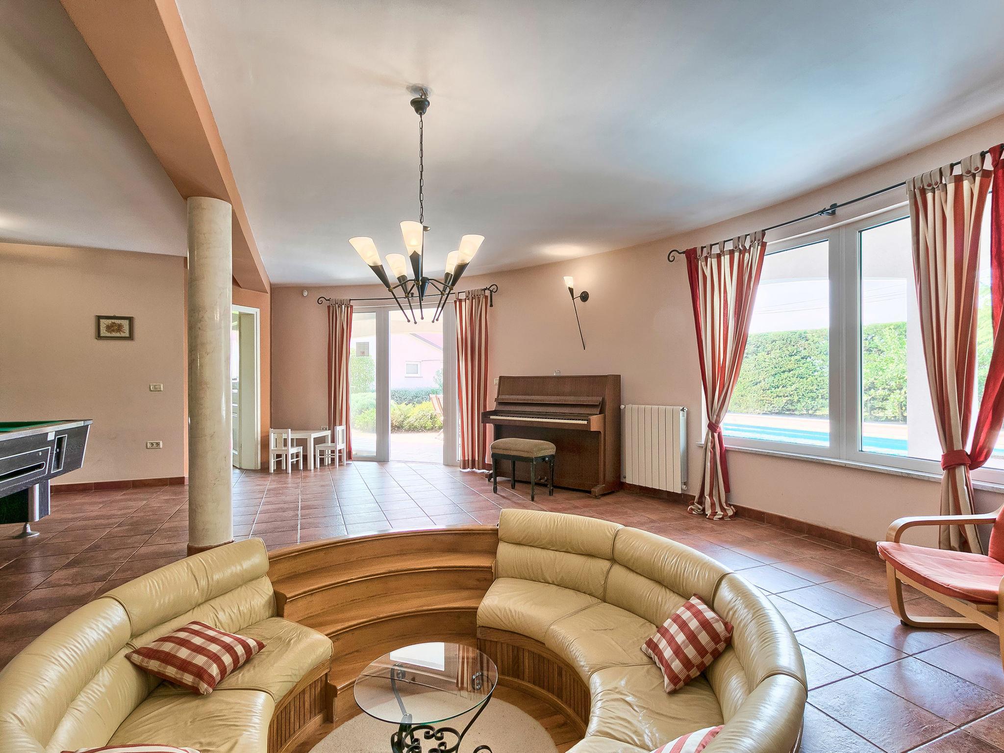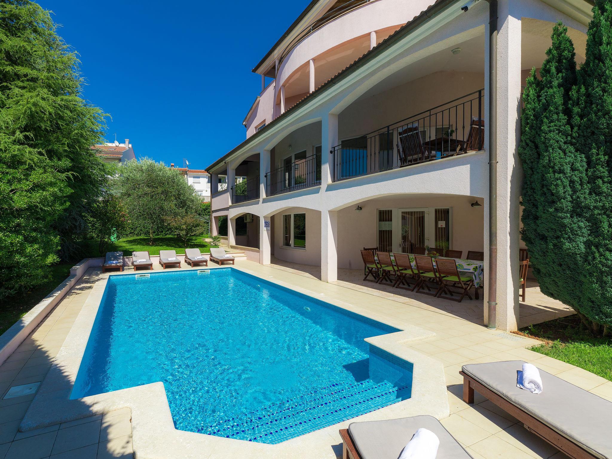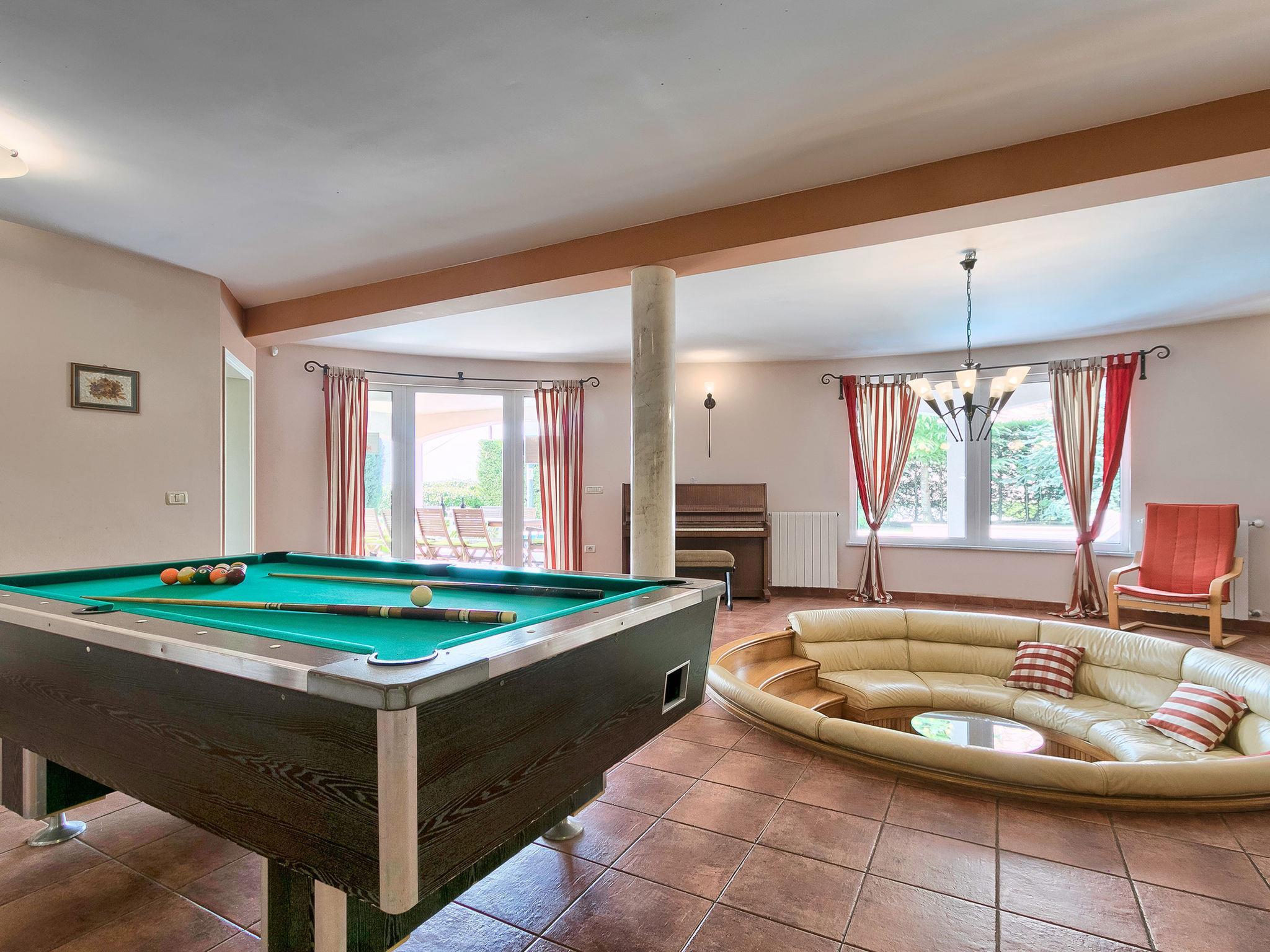 Štinjan 5 km from Pula: Beautiful villa "Carmen", 4 storeys. 3 km from the centre of Fažana, in a sunny position, 1 km from the sea, 1 km from the beach. Private: property 1'000 m2 (fenced), beautiful garden with lawn, swimming pool heated (40 m2, depth 140 cm, seasonal availability: 09.Mar. - 21.Nov.) with internal staircase and salt-electrolysis pool-cleaning system. Unconventional pool shape. Outdoor shower, barbecue, children's playground (slide, swing). In the house: internet access, fitness room, billiard table, washing machine. Parking (for 4 cars) at the house on the premises. Shop 350 m, shopping centre 4 km, restaurant, bus stop 350 m, pebble beach 1 km, rocky beach 1 km. Golf course (18 hole) 4.5 km, tennis 1 km, riding stable 1.5 km, walking paths from the house 100 m, cycle lane 150 m. Nearby attractions: NP Brijuni 4.5 km, Amphitheater 6 km. The owner does not accept any youth groups. Please note: airfield 15 km from the property. Swimming pool heated (extra). No pets allowed.