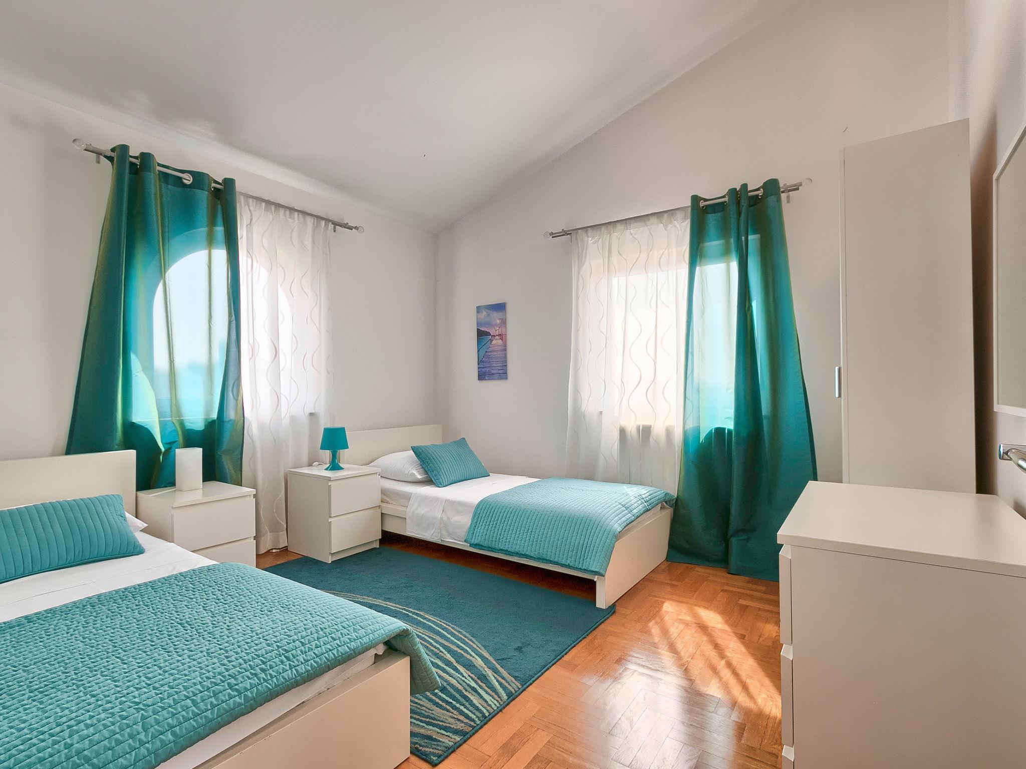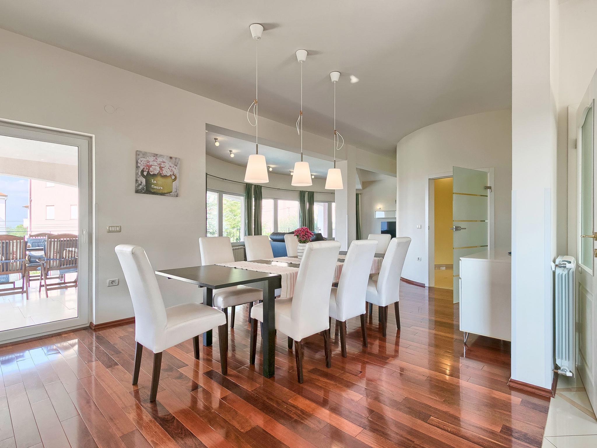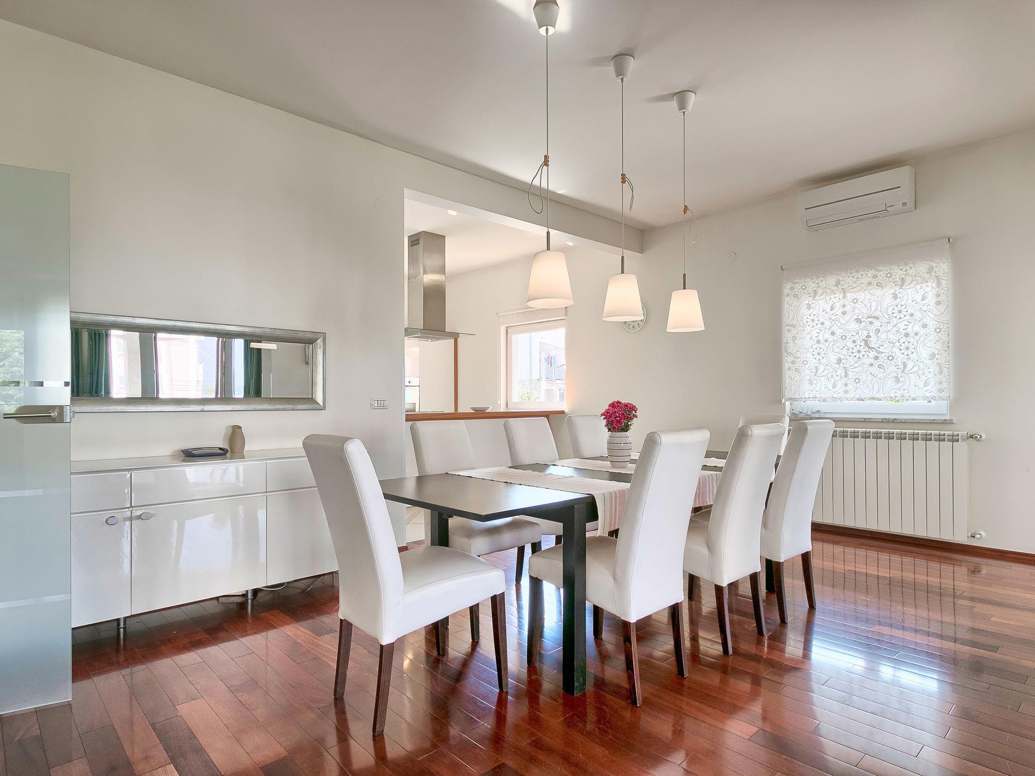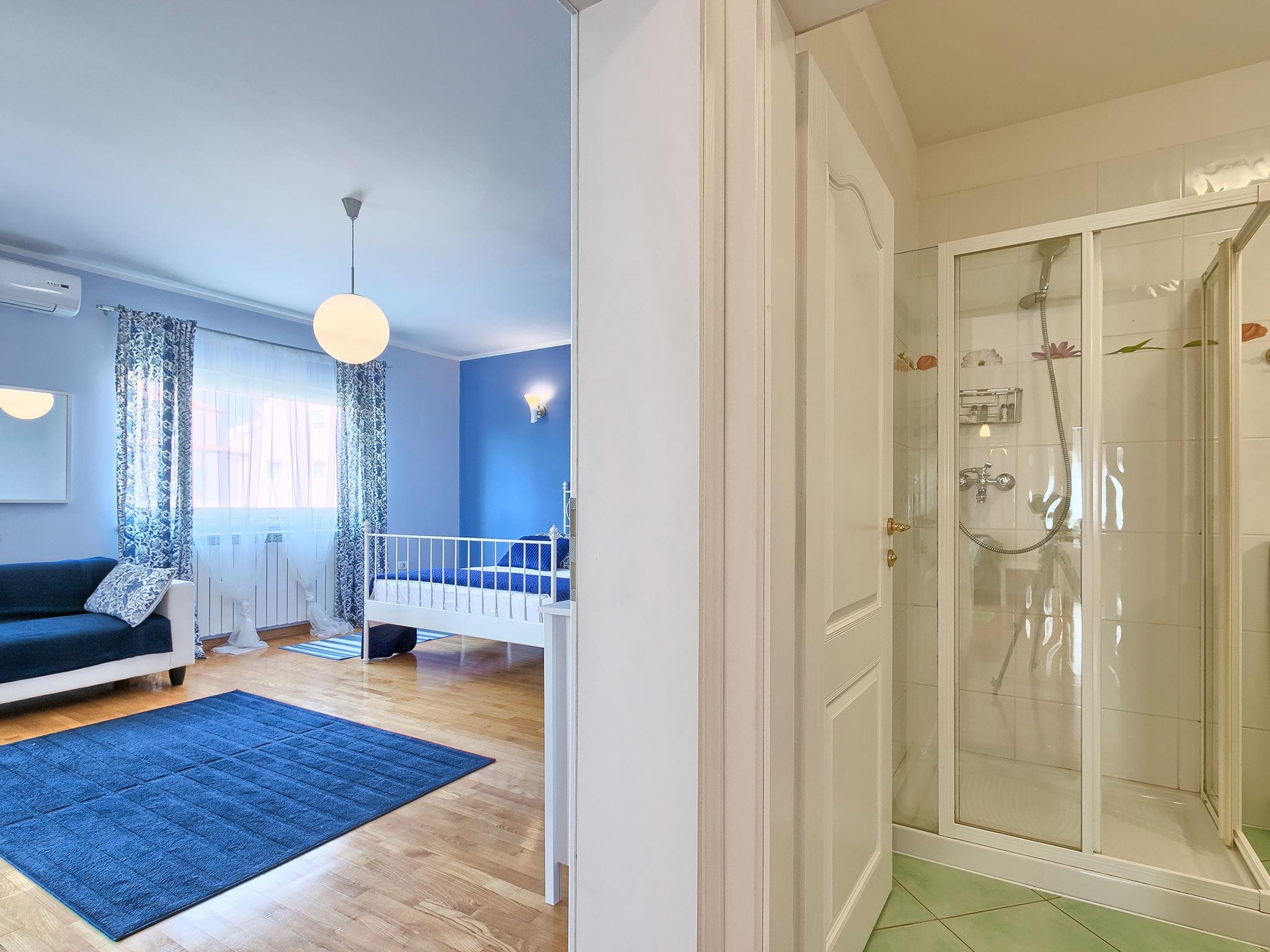 Štinjan 5 km from Pula: Beautiful villa "Carmen", 4 storeys. 3 km from the centre of Fažana, in a sunny position, 1 km from the sea, 1 km from the beach. Private: property 1'000 m2 (fenced), beautiful garden with lawn, swimming pool heated (40 m2, depth 140 cm, seasonal availability: 09.Mar. - 21.Nov.) with internal staircase and salt-electrolysis pool-cleaning system. Unconventional pool shape. Outdoor shower, barbecue, children's playground (slide, swing). In the house: internet access, fitness room, billiard table, washing machine. Parking (for 4 cars) at the house on the premises. Shop 350 m, shopping centre 4 km, restaurant, bus stop 350 m, pebble beach 1 km, rocky beach 1 km. Golf course (18 hole) 4.5 km, tennis 1 km, riding stable 1.5 km, walking paths from the house 100 m, cycle lane 150 m. Nearby attractions: NP Brijuni 4.5 km, Amphitheater 6 km. The owner does not accept any youth groups. Please note: airfield 15 km from the property. Swimming pool heated (extra). No pets allowed.