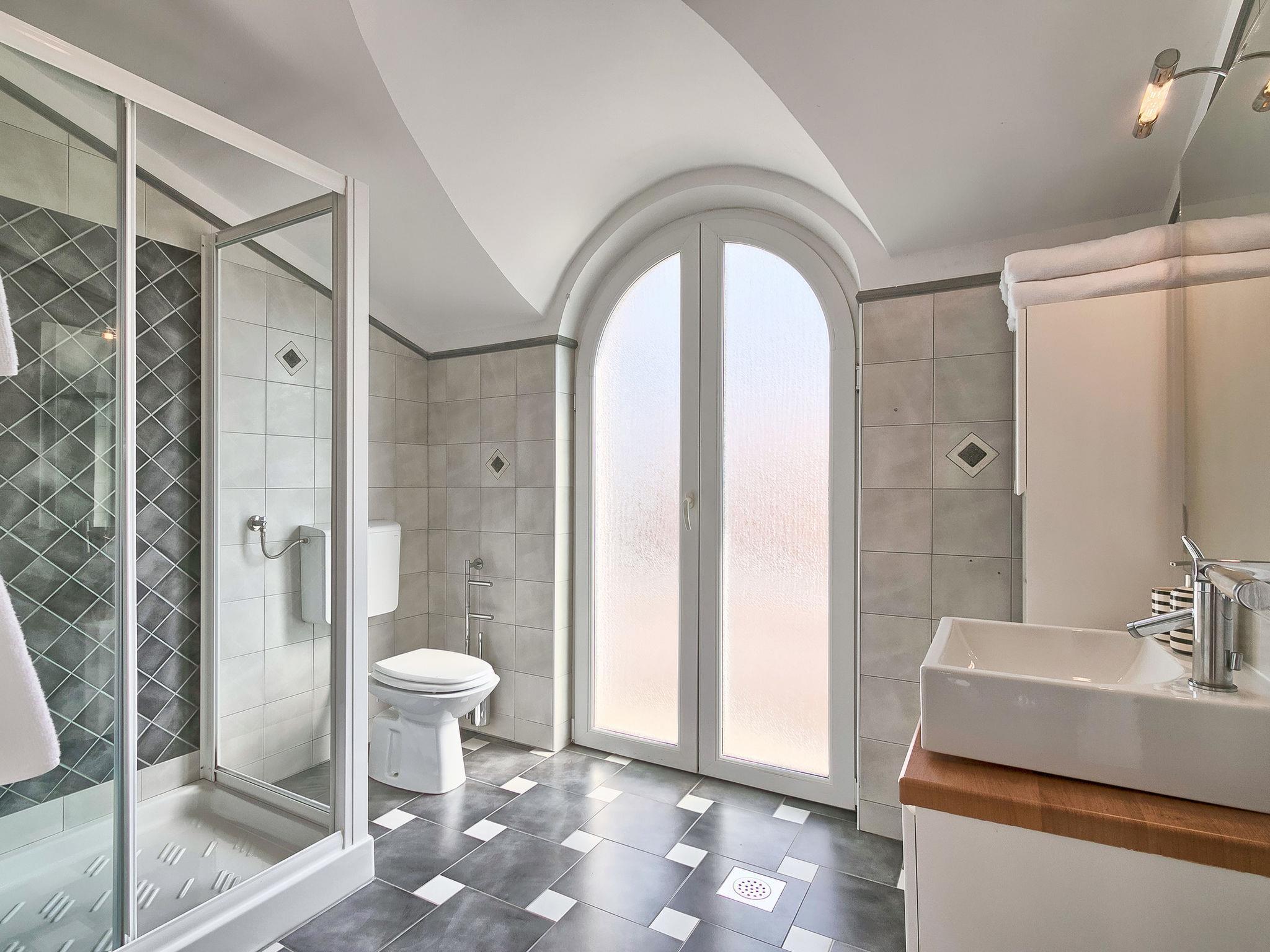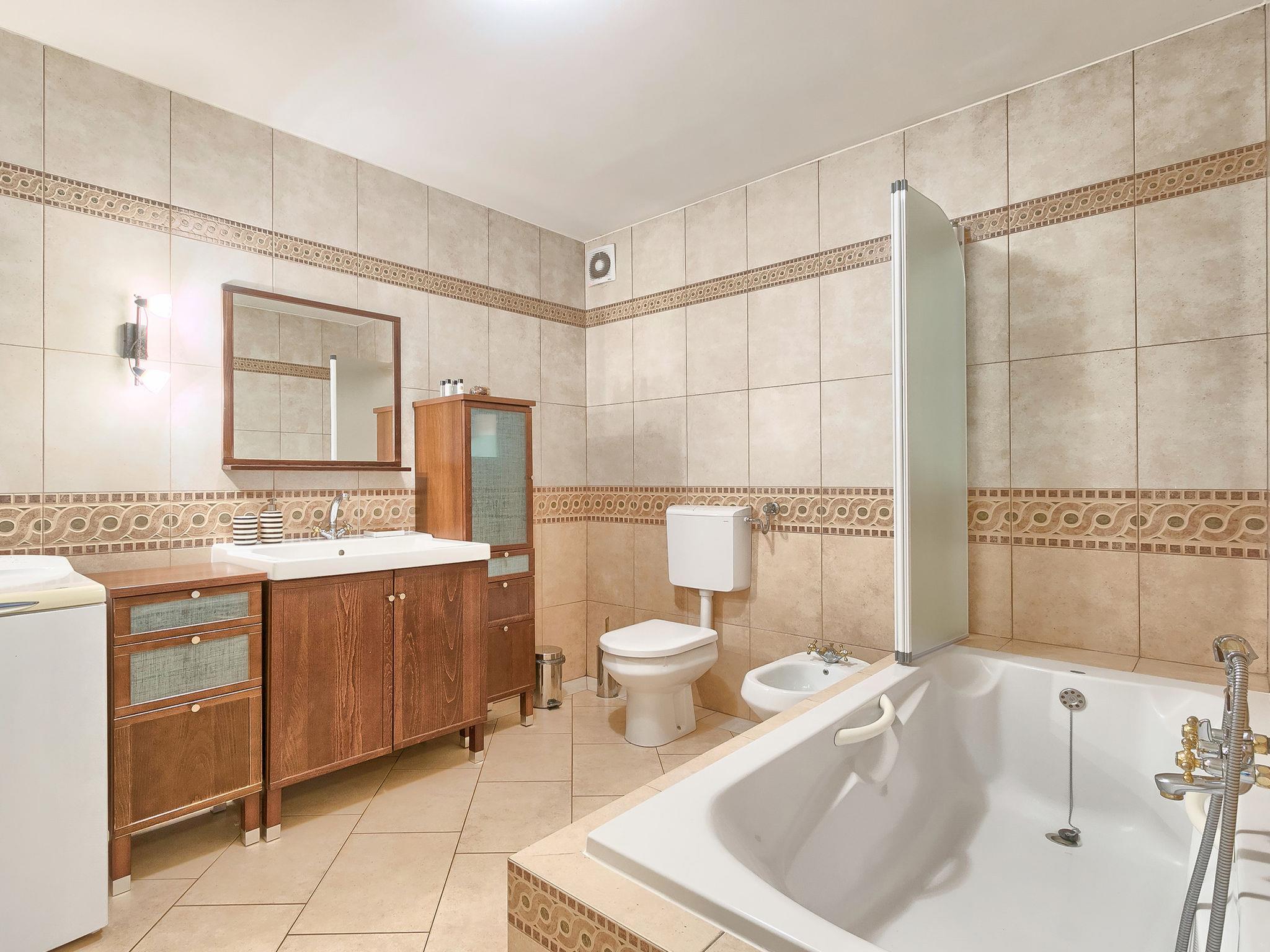 12-room villa 600 m2 on 4 levels. Comfortable furnishings: living/dining room with satellite TV (flat screen), air conditioning. Exit to the terrace. 1 room with 1 french bed (180 cm, length 200 cm). 1 room with 2 beds (90 cm, length 200 cm). Open kitchen (4 hot plates, oven, dishwasher, microwave, freezer, electric coffee machine). Bath/shower/WC. On the lower ground floor: living room with open-hearth fireplace (only for decoration), satellite TV and air conditioning. Exit to the terrace, to the swimming pool. 1 room with 1 french bed (180 cm, length 200 cm). Open kitchen (4 hot plates, oven, dishwasher, microwave, freezer, electric coffee machine). Bath/bidet/WC. Upper floor: 1 room with 1 french bed (160 cm, length 200 cm), shower/WC and air conditioning. Exit to the terrace. 1 room with 1 french bed (160 cm, length 200 cm), air conditioning. Exit to the terrace. 1 room with 1 french bed (160 cm, length 200 cm), shower/WC. Shower/WC. 2nd upper floor: living/dining room with satellite TV (flat screen). 1 room with 1 french bed (160 cm, length 200 cm). Exit to the terrace. 1 room with 2 beds (90 cm, length 200 cm). Open kitchen (oven, 4 ceramic glass hob hotplates, freezer) with air conditioning. Exit to the terrace. Shower/WC. Heating (extra). 3 terraces 40 m2, covered, terrace 30 m2, roofed. Terrace furniture, deck chairs. Marvellous panoramic view of the sea and the countryside. Facilities: safe, children's high chair, baby cot. Internet (WiFi, free).