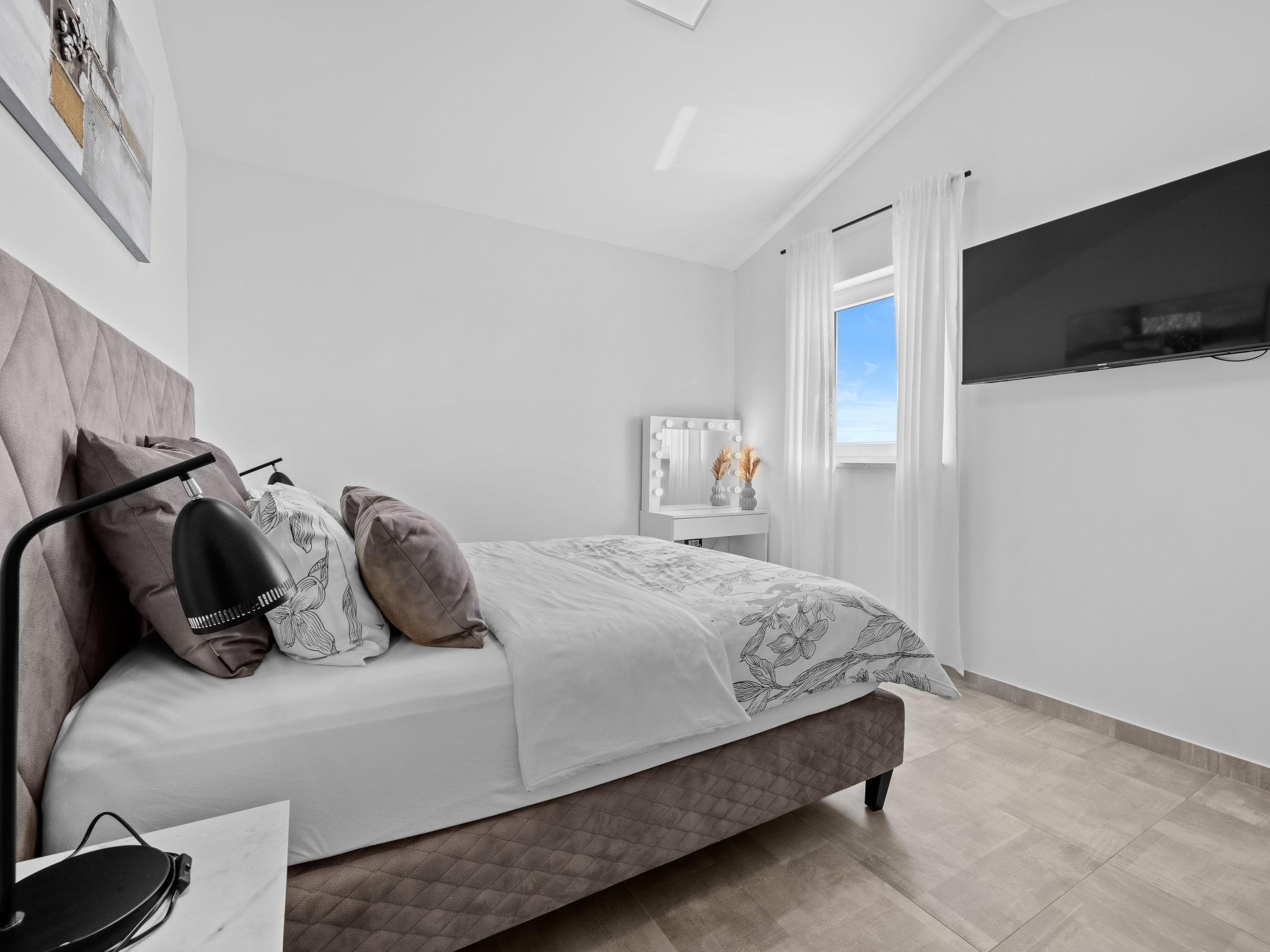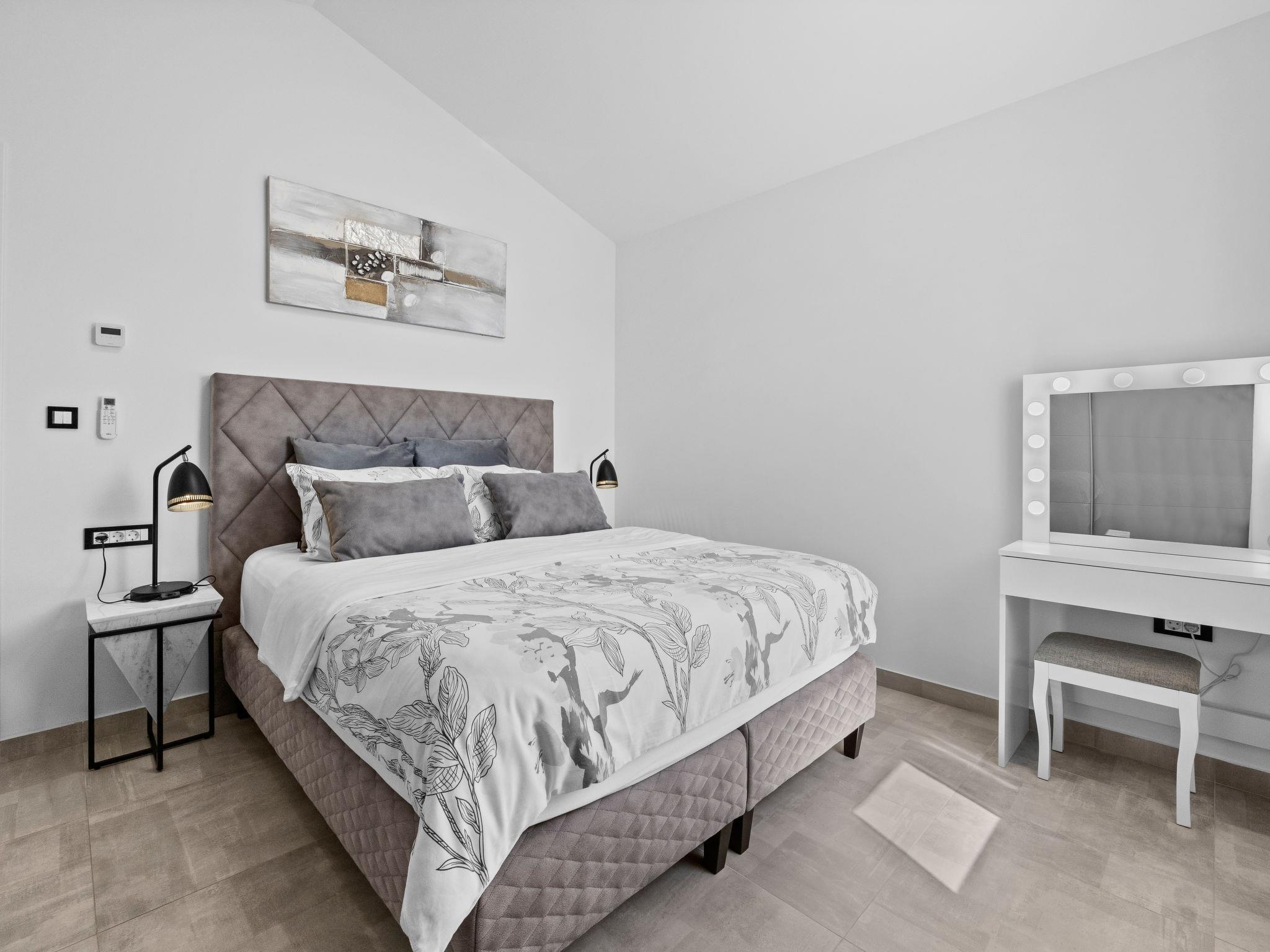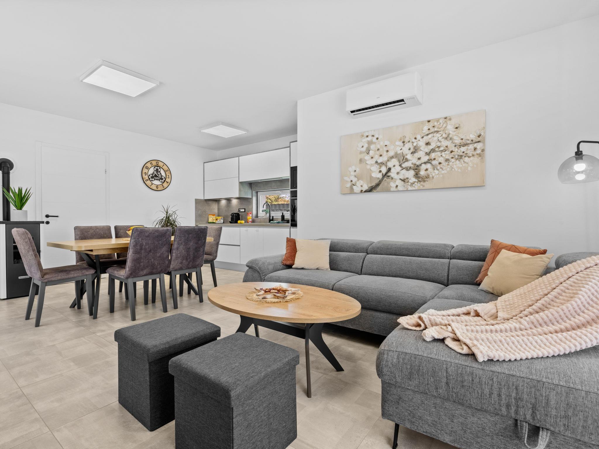 Štinjan 5 km from Pula: Modern, beautiful villa "S&V", 2 storeys, built in 2023. 3 km from the centre of Fažana, in a sunny position, 1.5 km from the sea, 1.5 km from the beach. Private: property 500 m2 (fenced), garden, swimming pool angular (32 m2, depth 140 cm, seasonal availability: 01.May. - 01.Oct.) with internal staircase and salt-electrolysis pool-cleaning system. Outdoor shower, table tennis. In the house: internet access, table football, washing machine, tumble dryer. Parking (for 3 cars) at the house on the premises. Shop 300 m, supermarket 2 km, restaurant, bus stop 700 m, pebble beach 1.5 km, rocky beach 1.5 km. Golf course (18 hole) 5 km, sailing school 5 km, tennis 500 m, riding stable 4 km, walking paths from the house 700 m, cycle lane 500 m. The owner does not accept any youth groups.