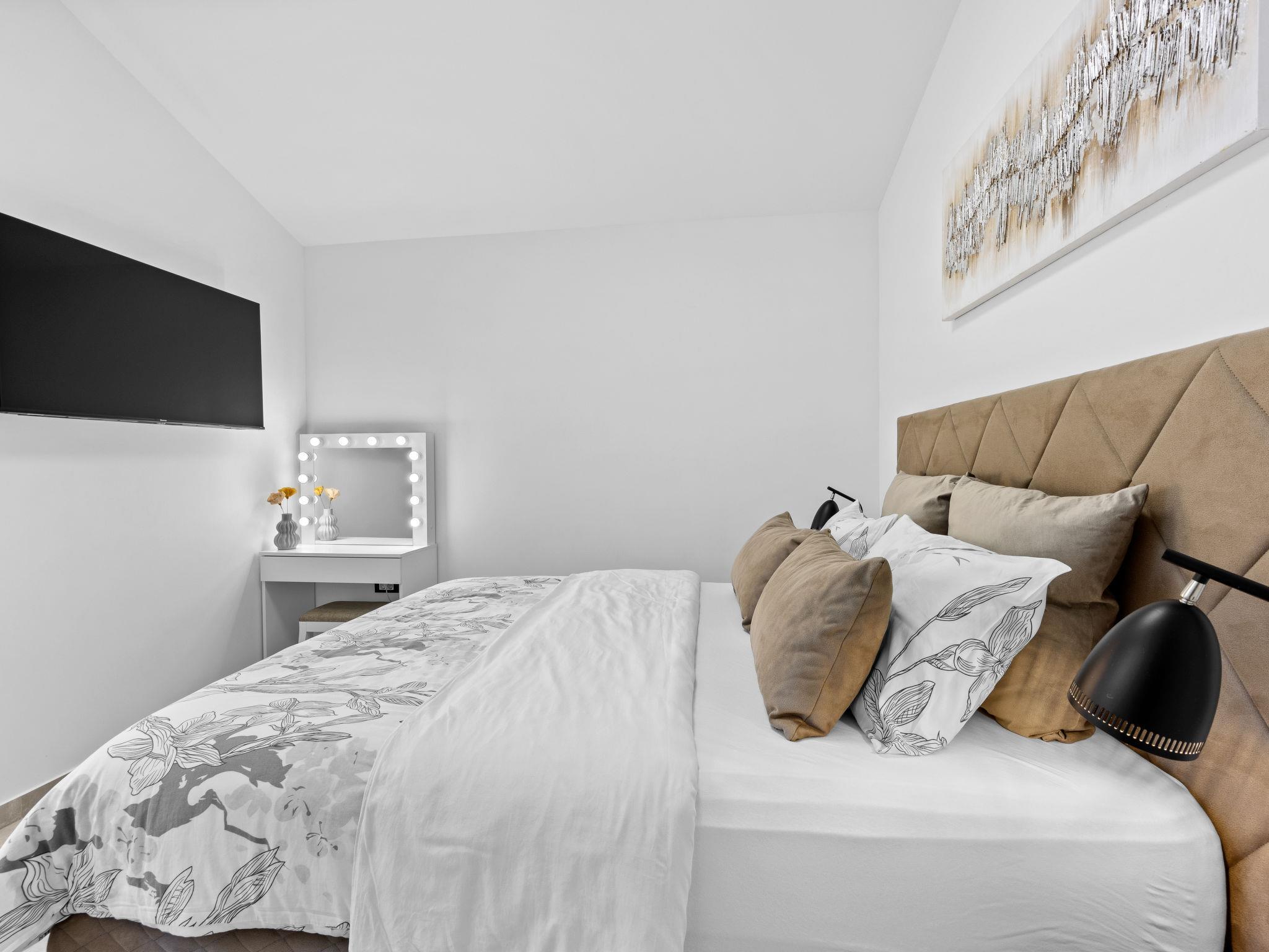 4-room villa 140 m2 on 2 levels. Beautiful and stylish furnishings: living/dining room with satellite TV (flat screen), air conditioning. Exit to the terrace, to the swimming pool. 1 room with 1 french bed (160 cm, length 200 cm), satellite TV (flat screen), air conditioning. Open kitchen (oven, dishwasher, 4 ceramic glass hob hotplates, toaster, kettle, microwave, freezer, electric coffee machine). Shower/WC. Upper floor: 2 rooms, each room with 1 french bed (160 cm, length 200 cm), satellite TV (flat screen), air conditioning. Shower/WC. Forced-air heating. Terrace 20 m2, roofed. Terrace furniture, barbecue (portable), deck chairs. View of the swimming pool. Facilities: children's high chair, baby cot. Internet (WiFi, free).