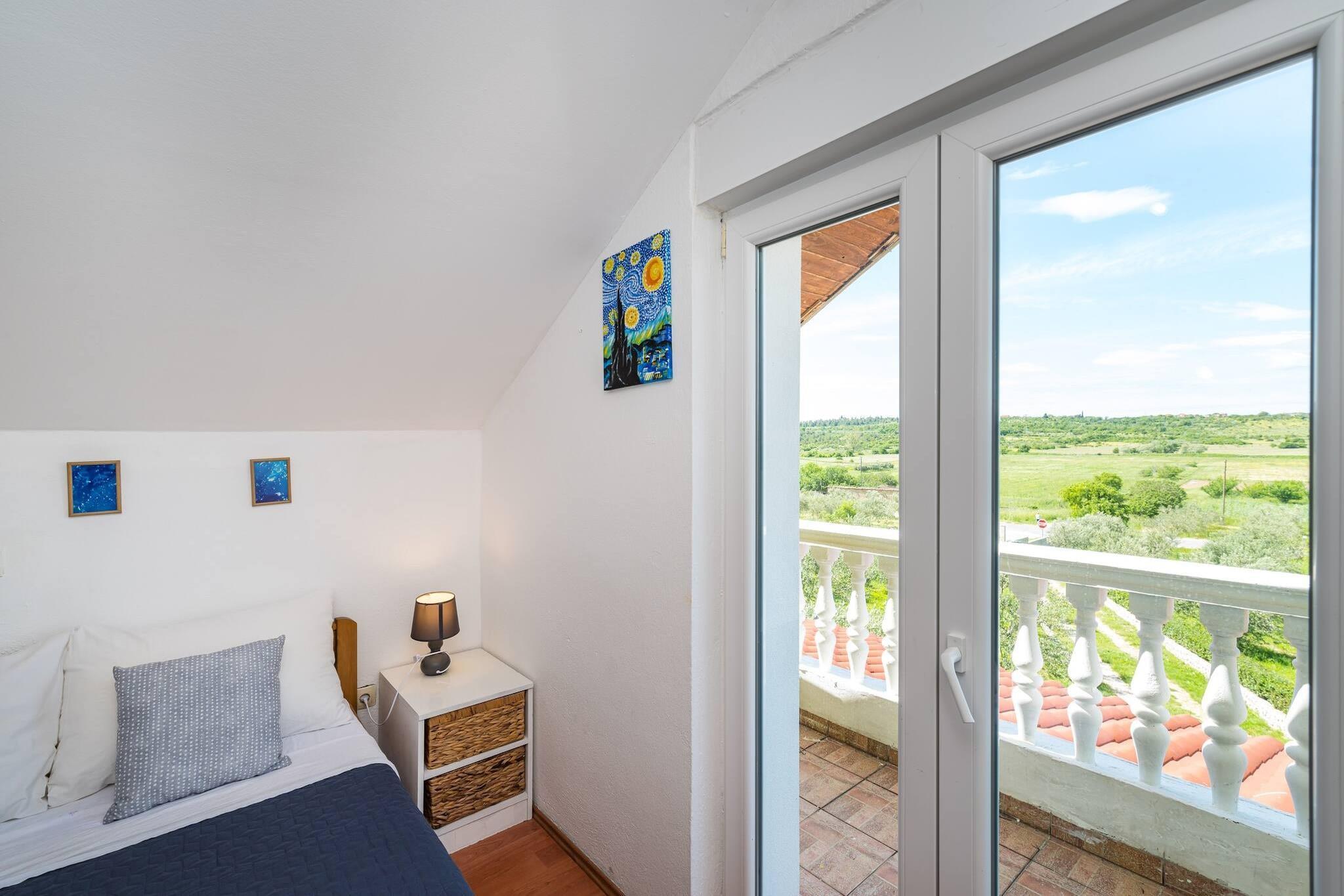 Dette smukke landlige feriehus ligger i et roligt område inde i landet nær Šibenik, kun 20 km fra den nærmeste strand og tæt på Krka Nationalpark. Omgivet af uberørt natur tilbyder det fuldstændig privatliv og afslappende ferie for familier eller grupper på op til 8 personer. På ejendommen er der en privat pool med hydromassage, en basketballbane og en legeplads for børn, hvilket skaber de perfekte betingelser for en fredelig ferie i naturen. Det nyrenoverede to-etagers hus har tre soveværelser, to badeværelser, en lys stue med spiseplads og et fuldt udstyret åbent køkken. På første sal er der en rummelig altan med udsigt over det grønne landskab og de nærliggende bakker. Den store overdækkede terrasse er udstyret med en stengrill, en udendørs spiseplads og et opholdsområde med tv – perfekt til afslappende eftermiddage og familiemåltider. Gæsterne kan nyde friske, økologiske produkter fra haven, leveret af de venlige værter, der ejer en nærliggende gård. Beliggenheden er ideel til at udforske Dalmatien. Krka Nationalpark, Vrana-søen og kystbyerne Vodice og Pirovac ligger inden for kort køreafstand. Byerne Zadar og Split ligger mindre end en times kørsel væk, og Šibenik kan nås på kun 30 minutter. Med sin kombination af komfort, natur og bekvemmelighed er dette feriehus det perfekte valg til en afslappende og autentisk ferie ved Middelhavet.